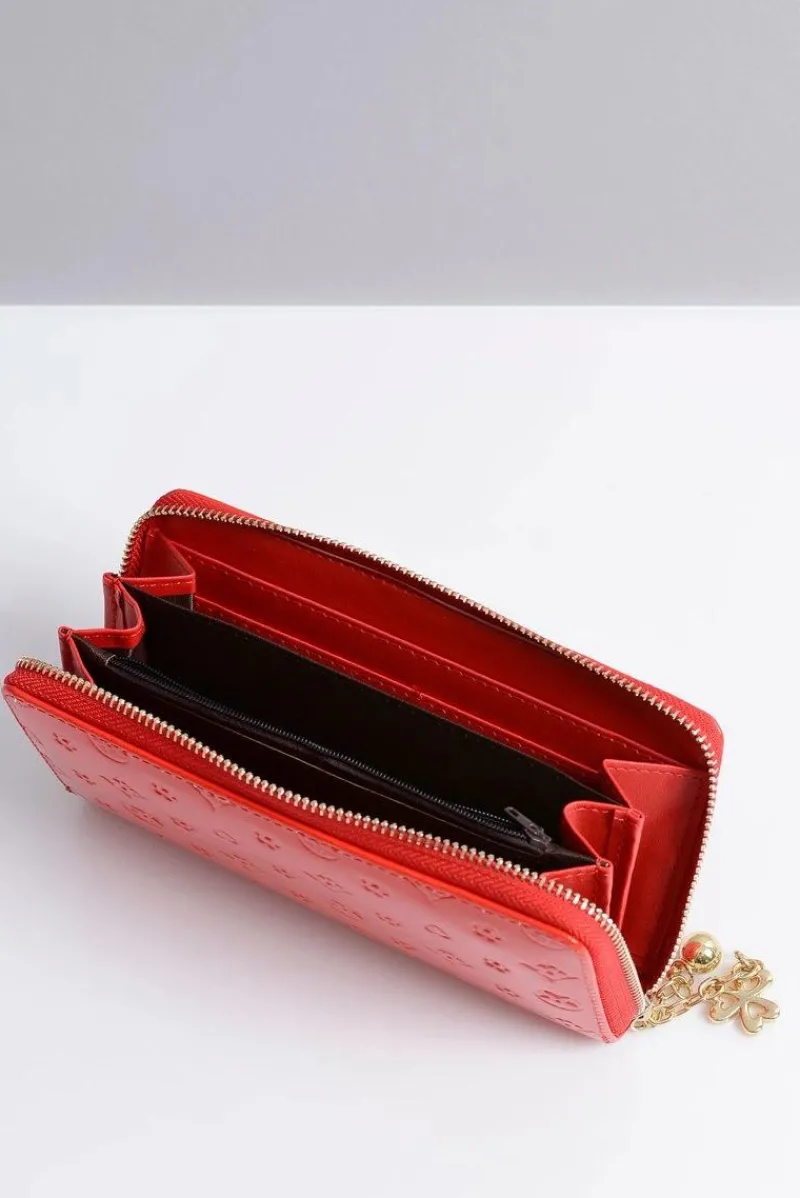 Przedstawiamy piękne portfele dla eleganckich Pań. Produkty te charakteryzuje wyjątkowy szyk wzorowany z włoskich salonów mody. Wykonywane są przy użyciu tylko najwyższej klasy materiałów, które podkreślają światowy i wielkomiejski styl. Staranne i piękne wykończenie każdego portfela oddaje niesamowitą dbałość o detale oraz modowy gust. Portfel posiada zapinanie na zamek, trzy duże kieszonki, jedną małą zapinaną na zamek oraz 8 przegródek na karty. Pięknym dodatkiem jest złoty brelok na zamku oraz tłoczenia na lakierowanym materiale.