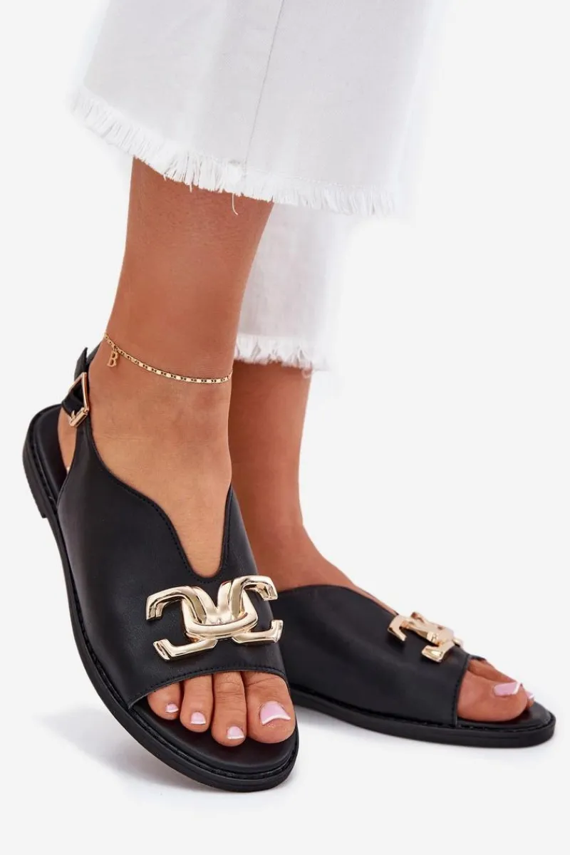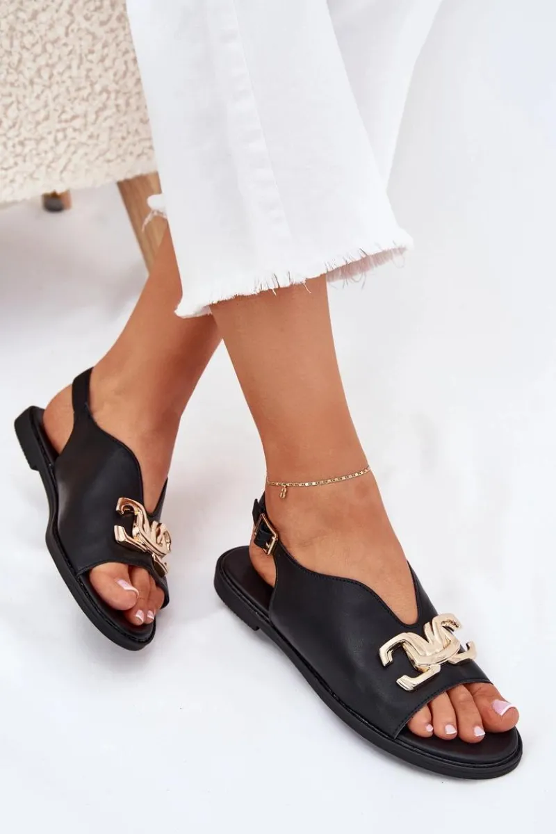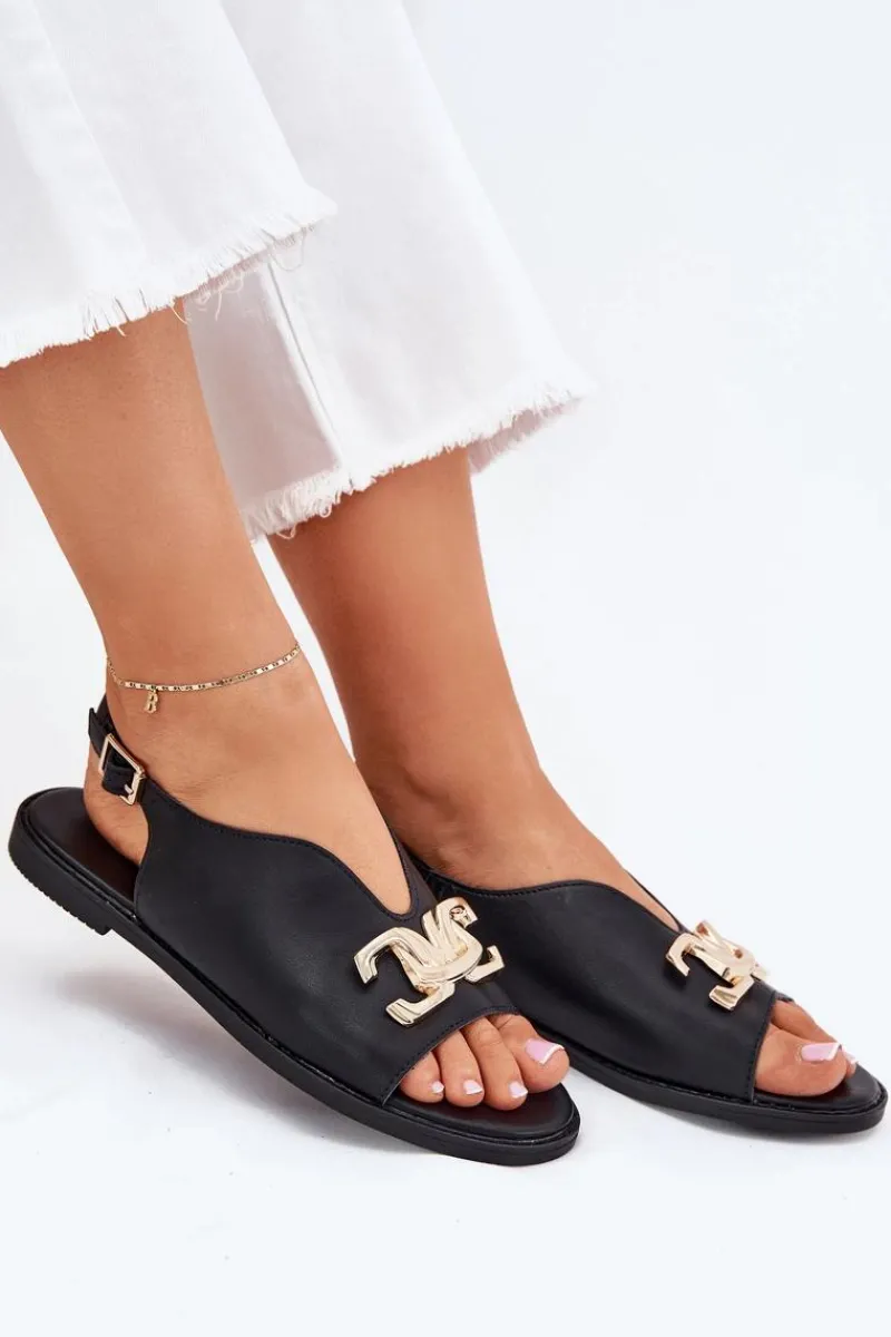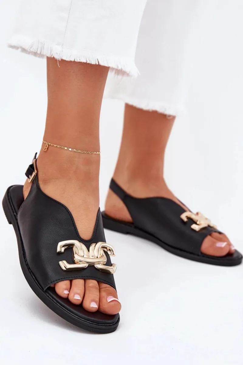 Sandały damskie z eko skóry na płaskim obcasie to doskonała propozycja na ciepłe dni. Model wyróżnia się złotą ozdobą, która dodaje im wyjątkowego uroku. Zapinane na klamrę z regulowanym paskiem, zapewniają idealne dopasowanie do stopy. Doskonałe do letnich sukienek, spódnic i spodni. Przy wyborze rozmiaru prosimy kierować się tabelą rozmiarów.