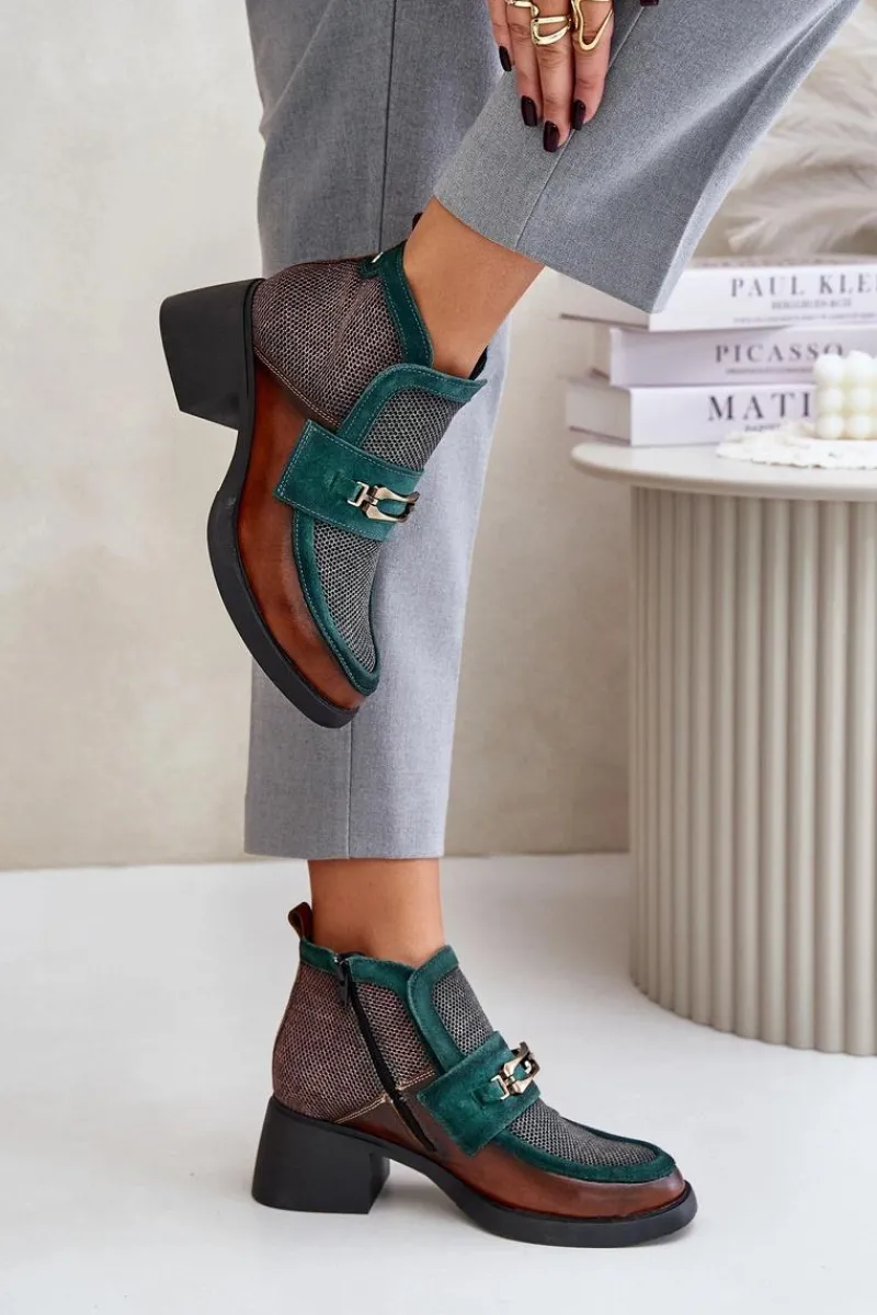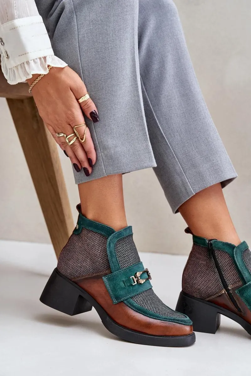 Eleganckie botki od marki Maciejka to stylowa propozycja dla kobiet ceniących modny wygląd i wygodę. Osadzone na masywnym obcasie typu klocek, zapewniają stabilność i komfort noszenia. Model zapinany na zamek, lekko ocieplany, doskonale sprawdzi się w chłodniejsze dni. Z przodu znajduje się ozdobny pasek, który dodaje butom wyrafinowanego akcentu. Idealne do eleganckich i codziennych stylizacji. Przy wyborze rozmiaru prosimy sugerować się tabelą rozmiarów.