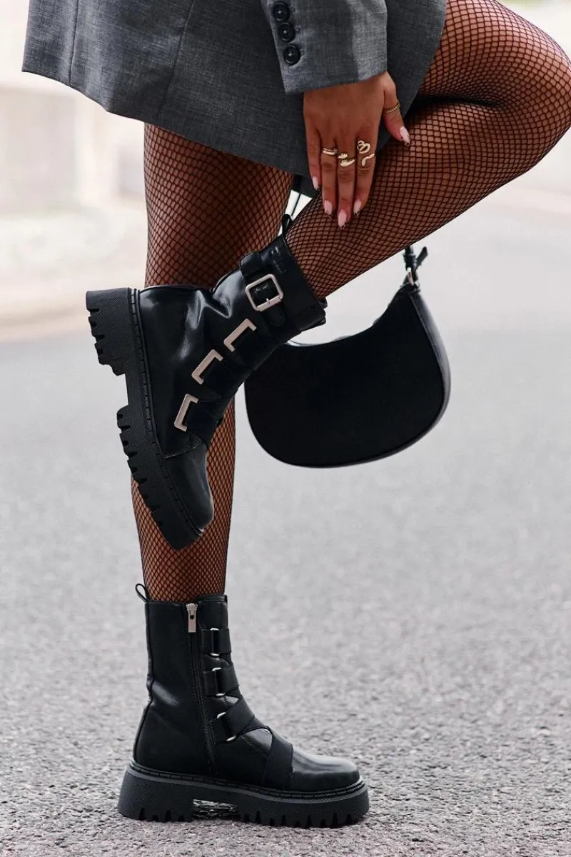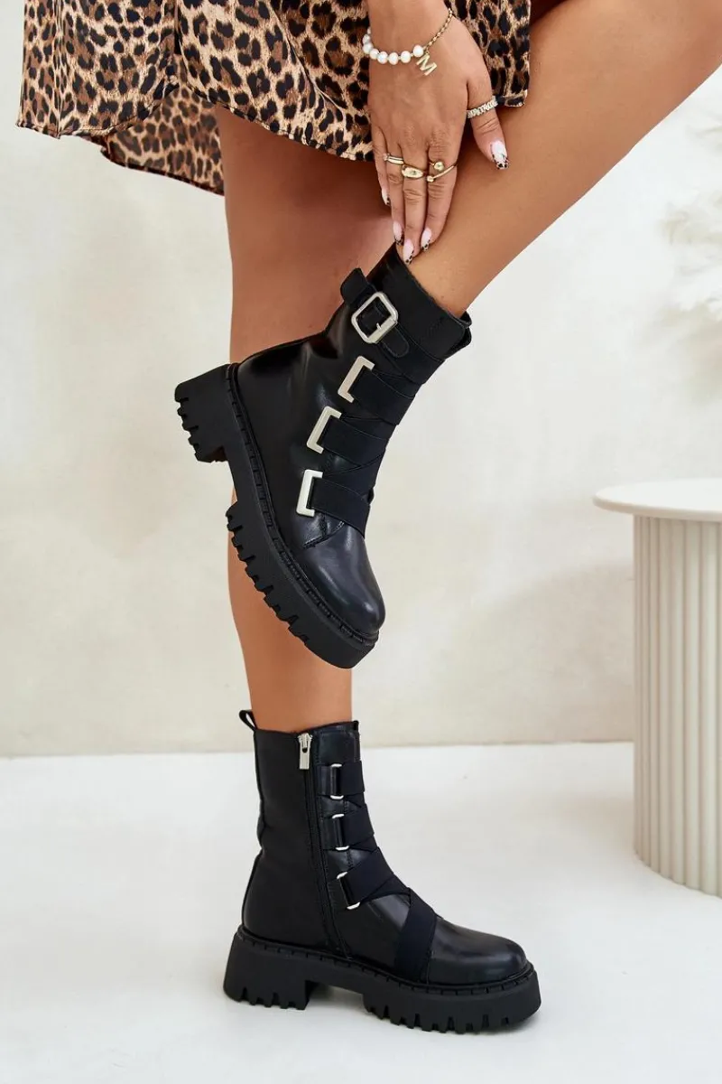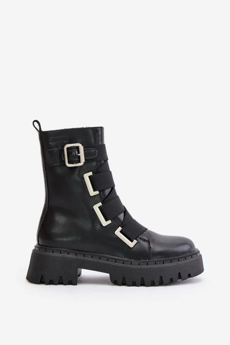 Botki od marki Big Star. Wykonane ze skóry naturalnej. Osadzone na grubej podeszwie i płaskim obcasie. Noski zaokrąglone. Środek ocieplany kocem obuwniczym, co zapewni ciepło w mroźne dni. Noski zaokrąglone. Cholewka ozdobiona paskami. Zapinane na zamek. Model ten idealnie dopełni wiele jesienno-zimowych stylizacji! Przy wyborze rozmiaru prosimy sugerować się tabelą rozmiarów.