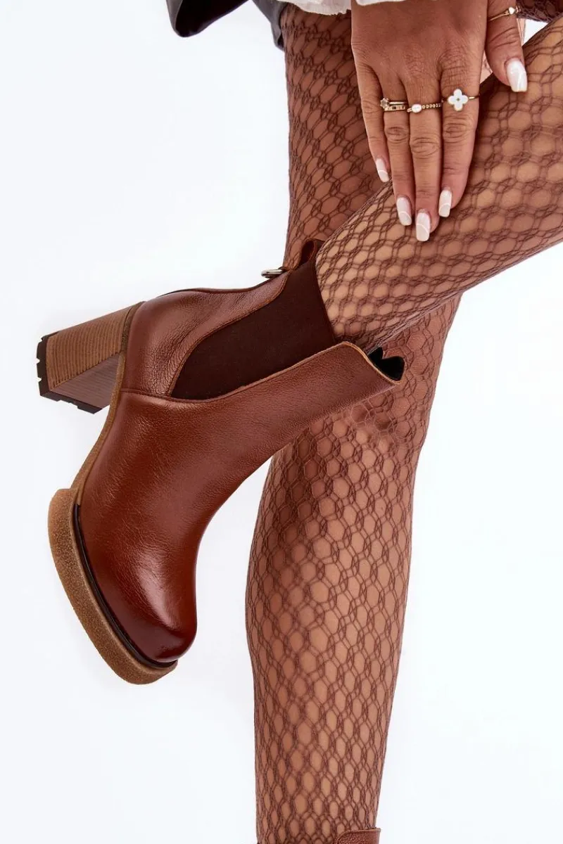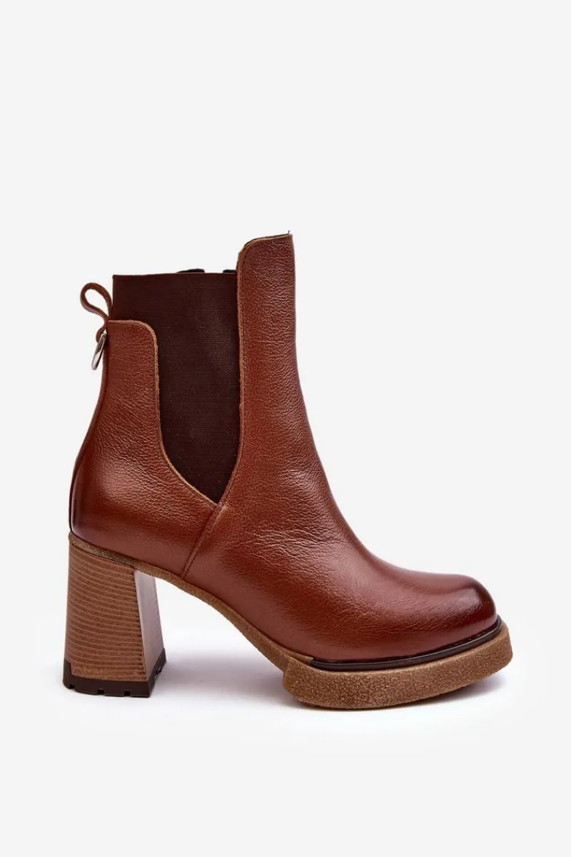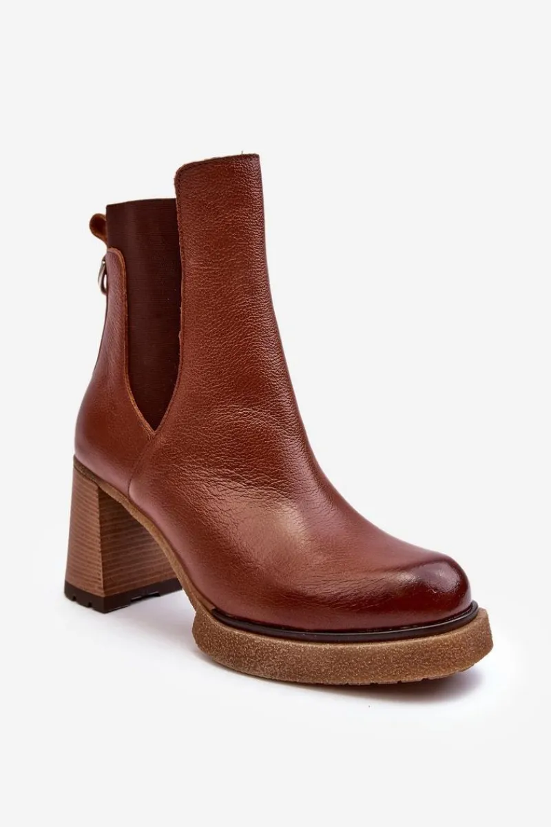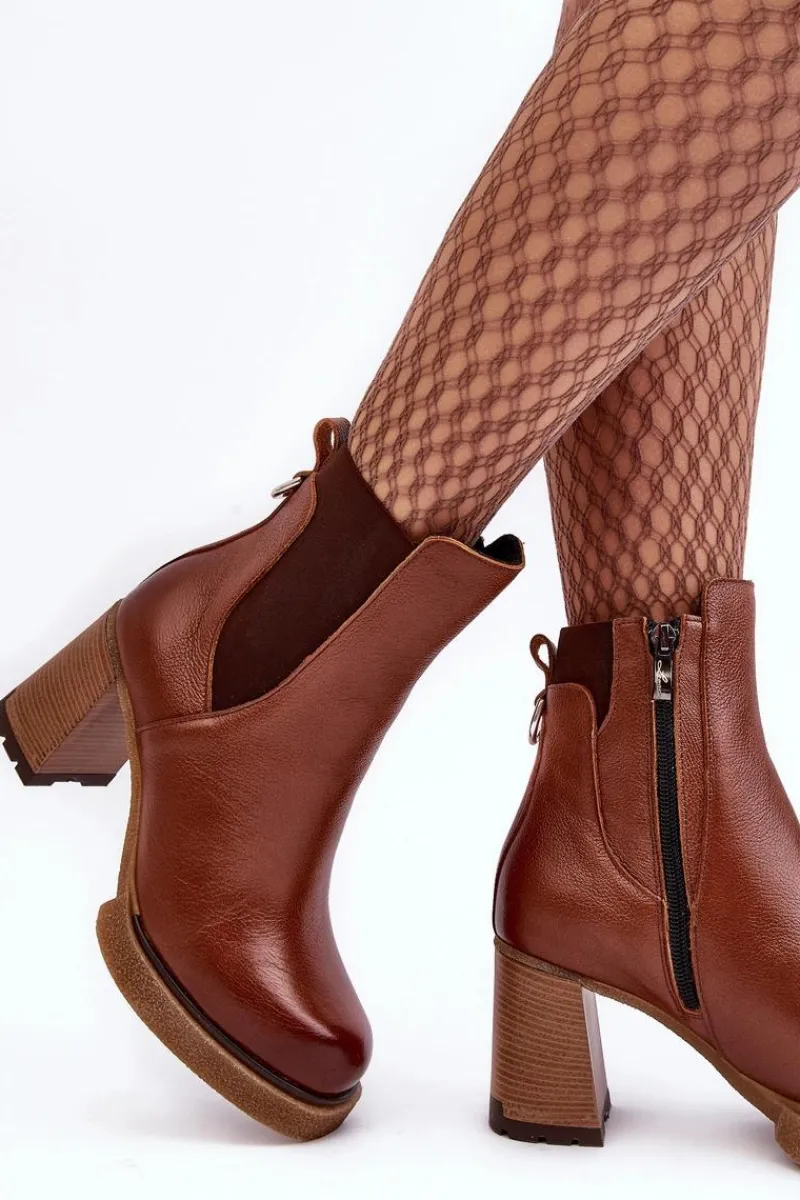 Botki na platformie i obcasie w postaci słupka. Cholewka za kostkę. Wykonane ze skóry naturalnej. Na cholewce elastyczna wstawka. Zapinane suwakiem po wewnętrznej stronie. Buty zostały ocieplone kocem obuwniczym. Podeszwa jest antypoślizgowa. Botki doskonale sprawdzą się w jesiennych stylizacjach. Przy wyborze rozmiaru prosimy kierować się tabelą rozmiarów