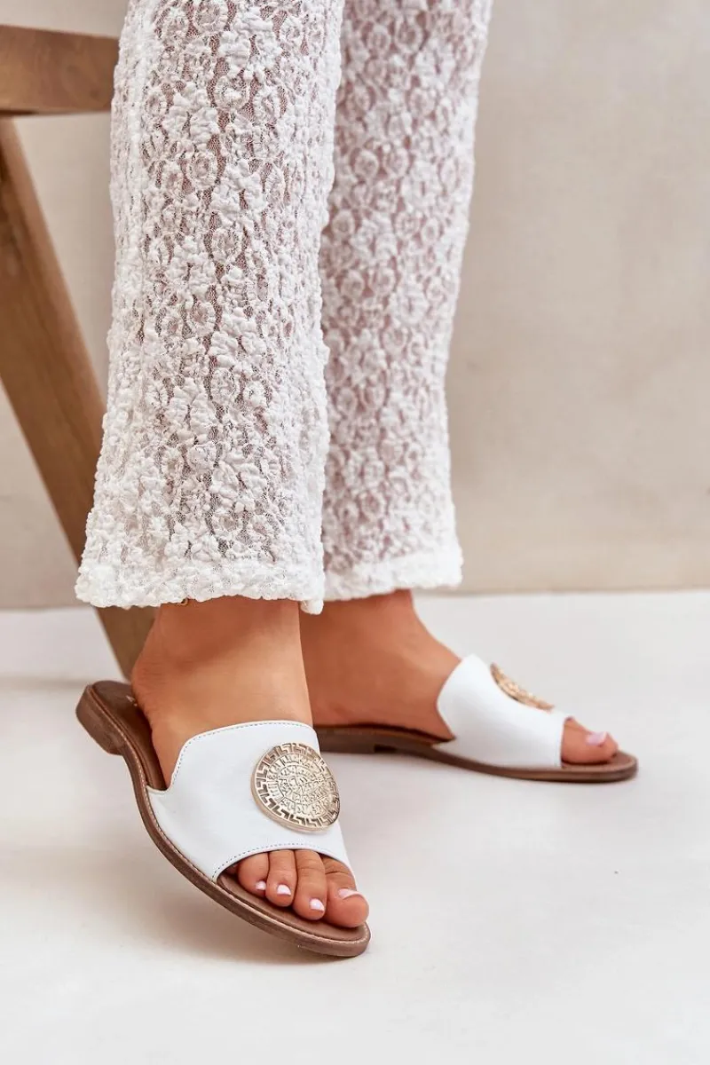 Damskie klapki wykonane z wysokiej jakości skóry naturalnej to połączenie elegancji i wygody. Osadzone na płaskim obcasie, zapewniają komfort noszenia przez cały dzień. Subtelna ozdoba na cholewce nadaje im wyjątkowego uroku i klasy, dzięki czemu świetnie sprawdzą się zarówno w casualowych, jak i bardziej eleganckich stylizacjach. Idealne na ciepłe dni, stanowią niezastąpiony dodatek do letnich sukienek, spodni czy spódnic. Przy wyborze rozmiaru prosimy sugerować się tabelą rozmiarów.