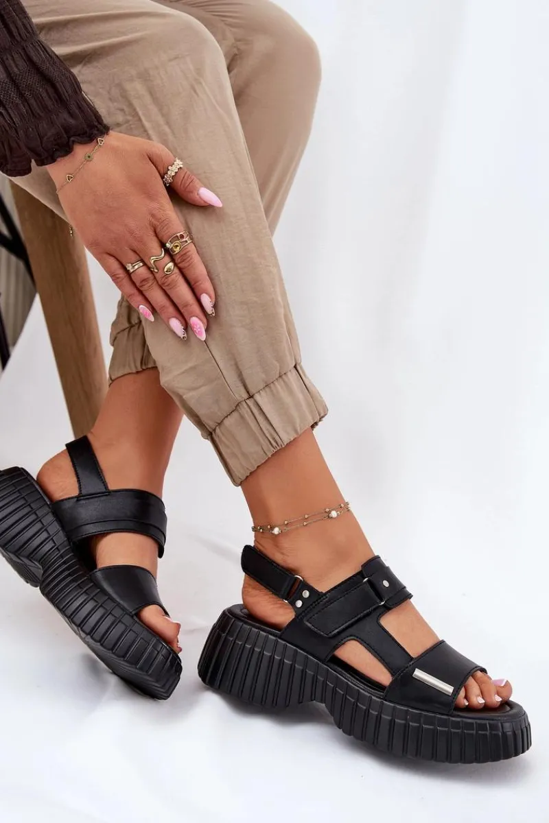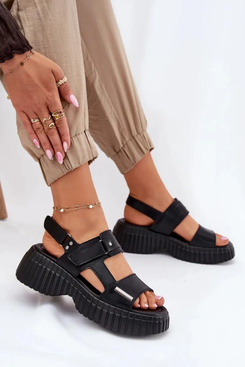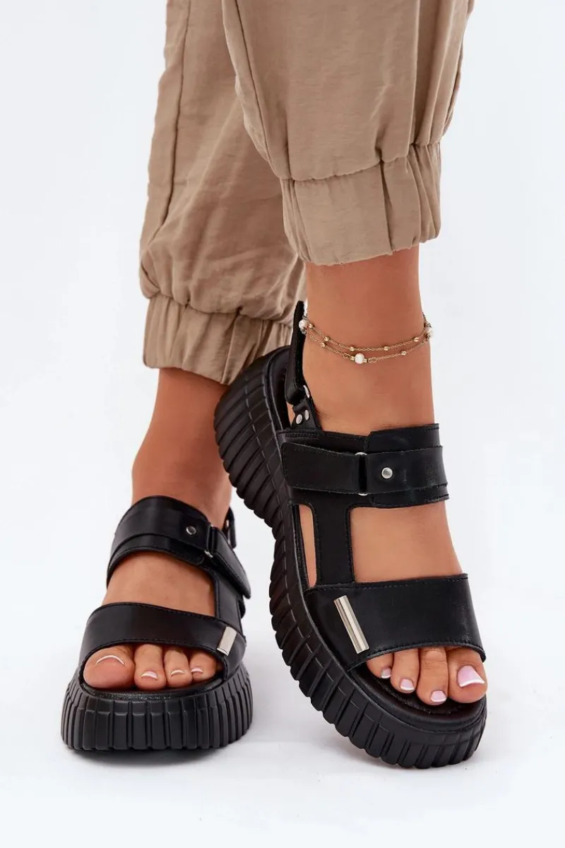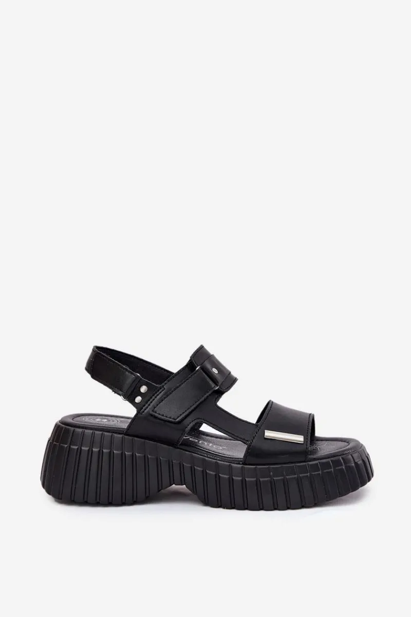 Damskie sandały wykonane z naturalnej skóry to świetna opcja na ciepłe dni, łącząca wygodę z modnym wyglądem. Osadzone na platformie, zapewniają komfort i lekkość przez cały dzień. Model zapinany na podwójny rzep umożliwia łatwe dopasowanie do stopy, zapewniając stabilność i wygodę. Stylowy fason idealnie komponuje się z casualowymi stylizacjami. Te sandały to must-have w letniej garderobie! Przy wyborze rozmiaru prosimy sugerować się tabelą rozmiarów.