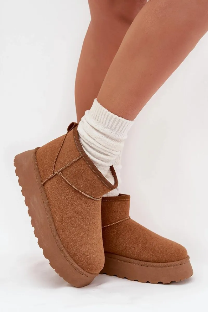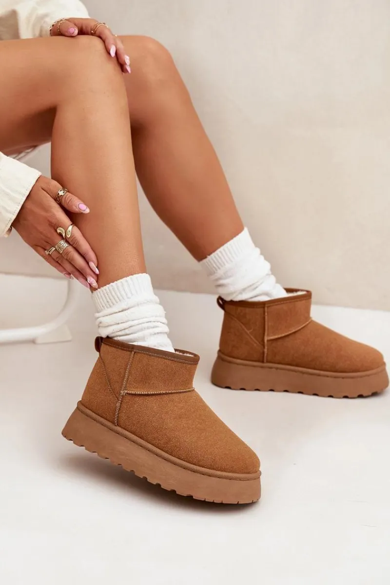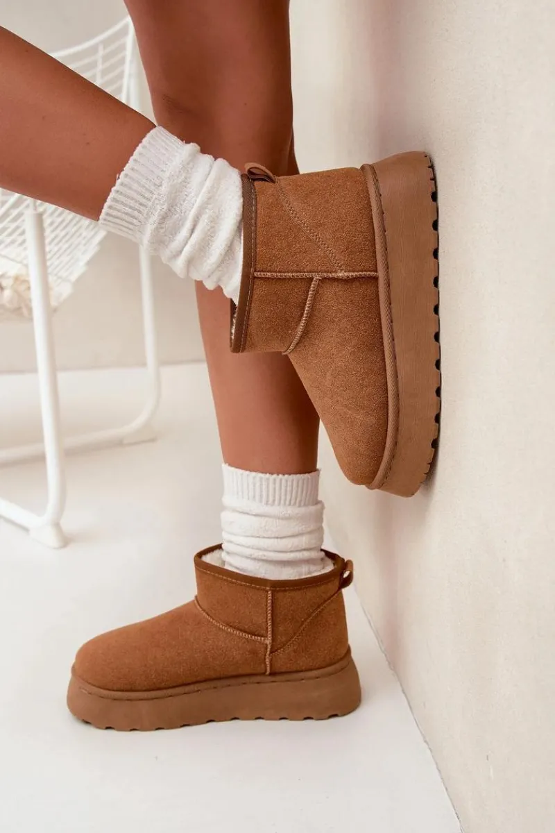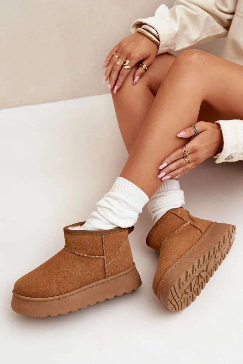 Poznaj swoje nowe ulubione buty na zimę – śniegowce damskie Vesirae w kolorze camel to idealne połączenie stylu, wygody i ciepła. Wykonane z miękkiego eko-zamszu i wyściełane puszystym futerkiem, zapewniają przytulność nawet w największy mróz. Dzięki wysokiej cholewce i solidnej platformie (ok. 3 cm), Twoje stopy pozostaną suche i ciepłe podczas spacerów po zaśnieżonych ulicach.