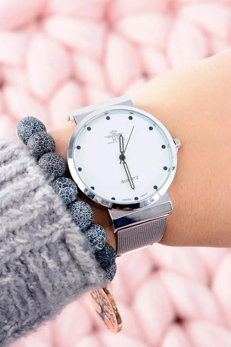 New Srebrny Elegancki Damski Zegarek Zegarki