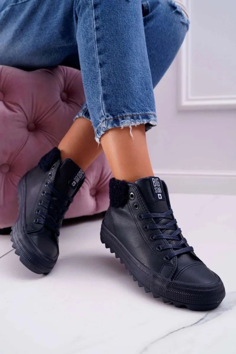 New Trampki Damskie Big Star Wysokie Ocieplane Granatowe EE274147 Damskie Trampki Ocieplane|Trampki Damskie Big Star