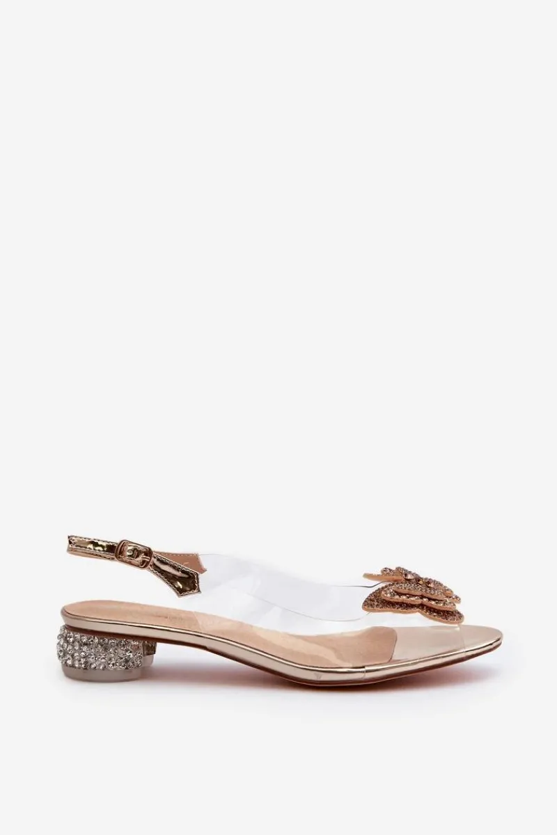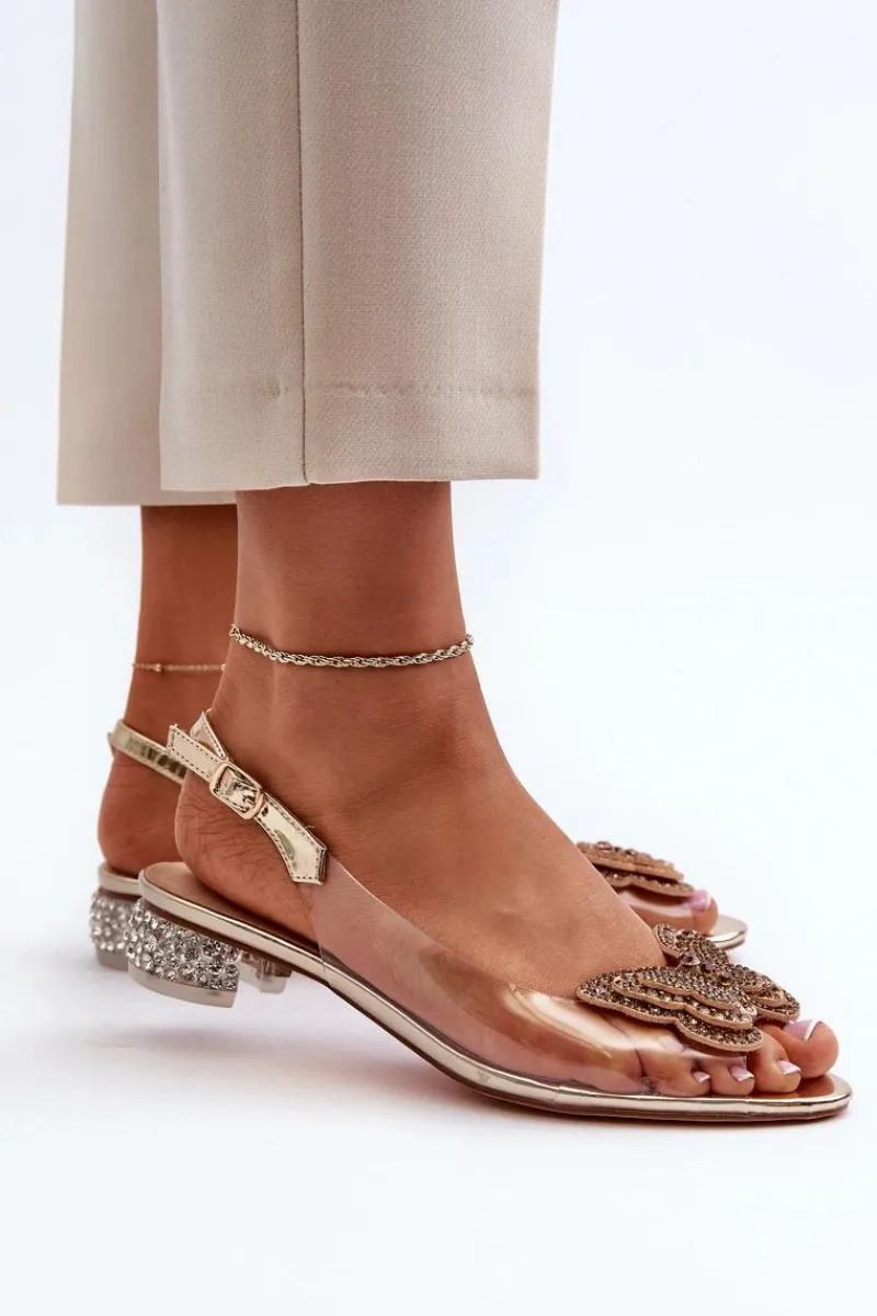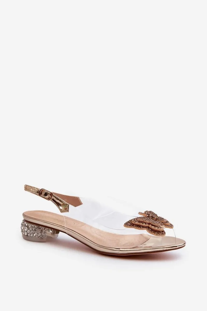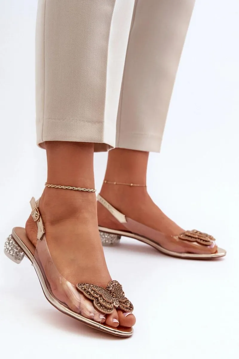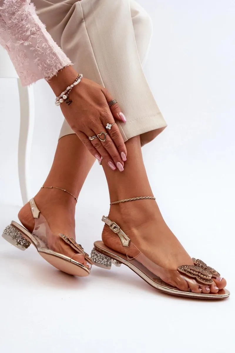 New Transparentne Sandały Na Niskim Obcasie Z Motylem Różowe Złoto D&A MR38-388 Damskie Sandały Na Obcasie