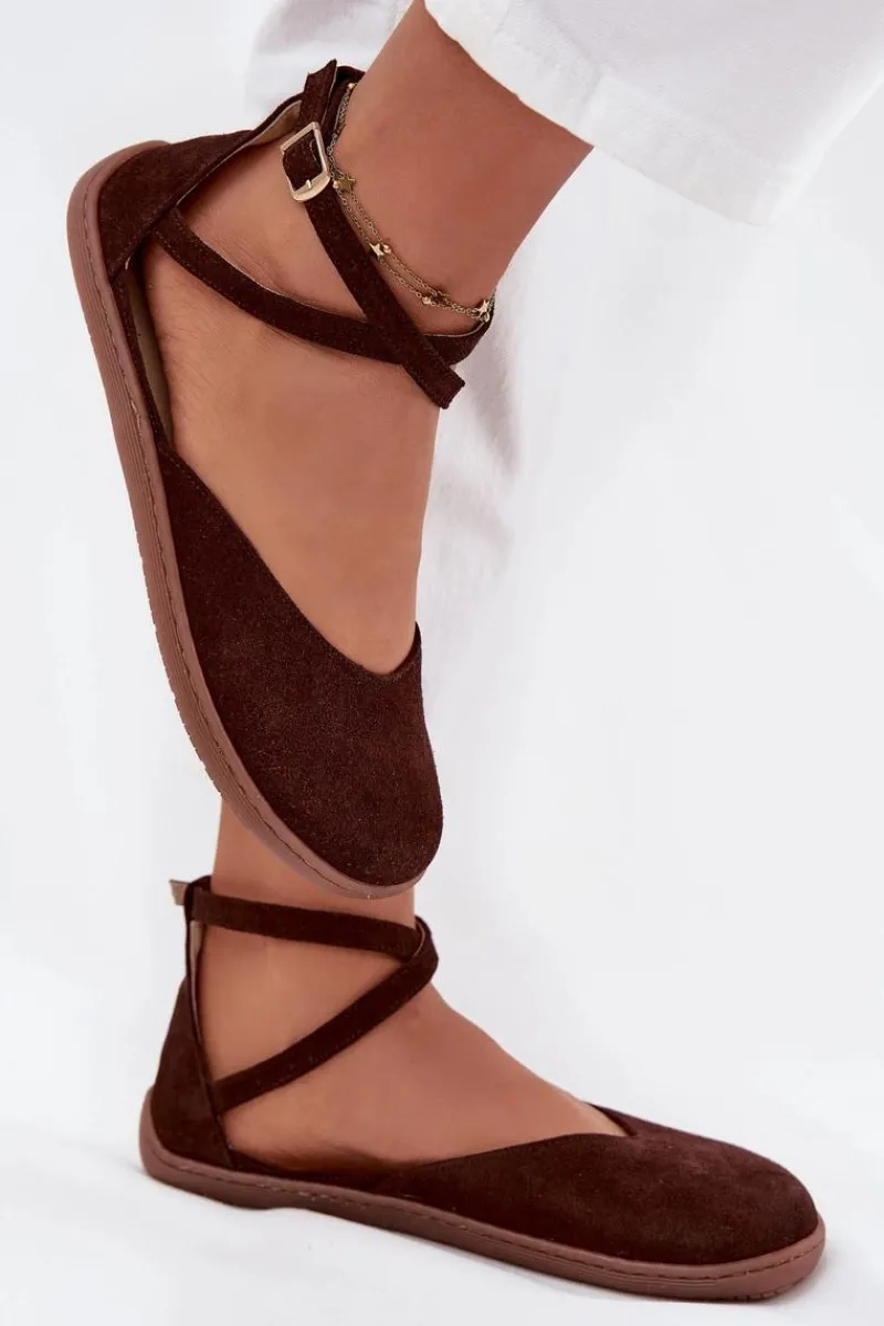 Baleriny damskie z naturalnego zamszu to elegancka i komfortowa propozycja na co dzień. Model Barefoot to obuwie zaprojektowane w taki sposób, by zapewniało jak najbardziej naturalne ułożenie stopy, wspomagając jej swobodny ruch. Baleriny Barefoot pozwalają na lepszy kontakt z podłożem, co wpływa na poprawę równowagi i naturalne ułożenie stopy. Zapinane na regulowany pasek z klamrą, doskonale dopasowują się do stopy, gwarantując komfort przez cały dzień. Idealne na wiosenne i letnie dni, łączą funkcjonalność z subtelnym, klasycznym stylem. Przy wyborze rozmiaru prosimy sugerować się tabelą rozmiarów.