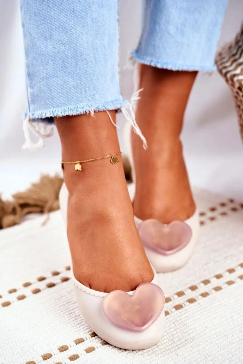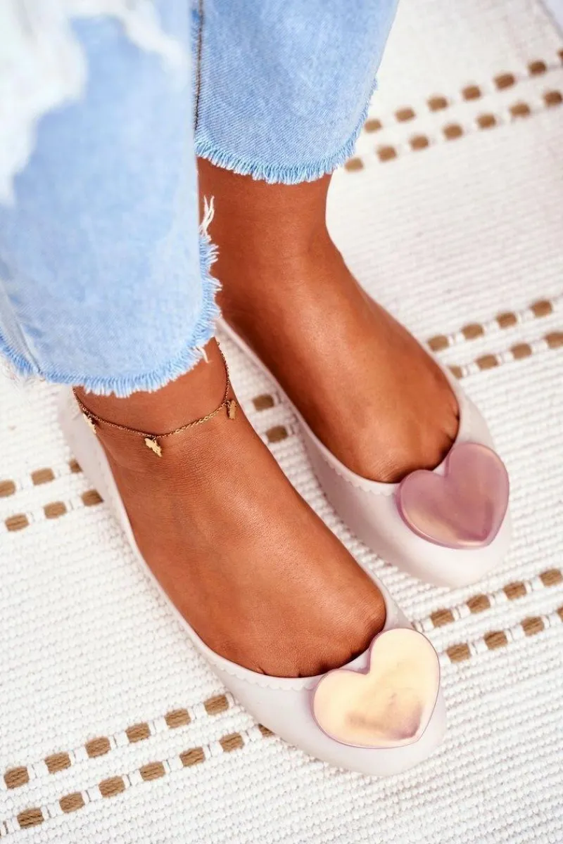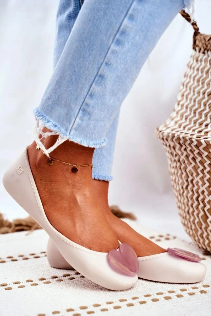 Wspaniała kolekcja gumowych, pachnących balerinek marki ZAXY. Wodoodporne, antypoślizgowe i przyjazne dla stóp. Uniwersalne najwyższej jakości baleriny, wykonane z miękkiego gumowego tworzywa. Zdobione serduszkiem, które nadaje im niesamowitego uroku. Wkładka wykonana z miękkiej pianki pokrytej przyjemnym w dotyku materiałem, która zadba o nasz komfort. Przy wyborze rozmiaru prosimy kierować się tabelą rozmiarów.