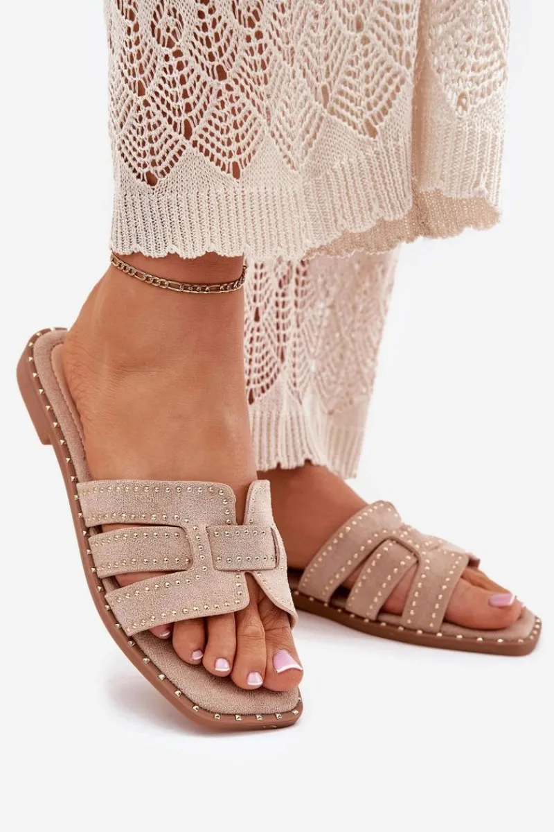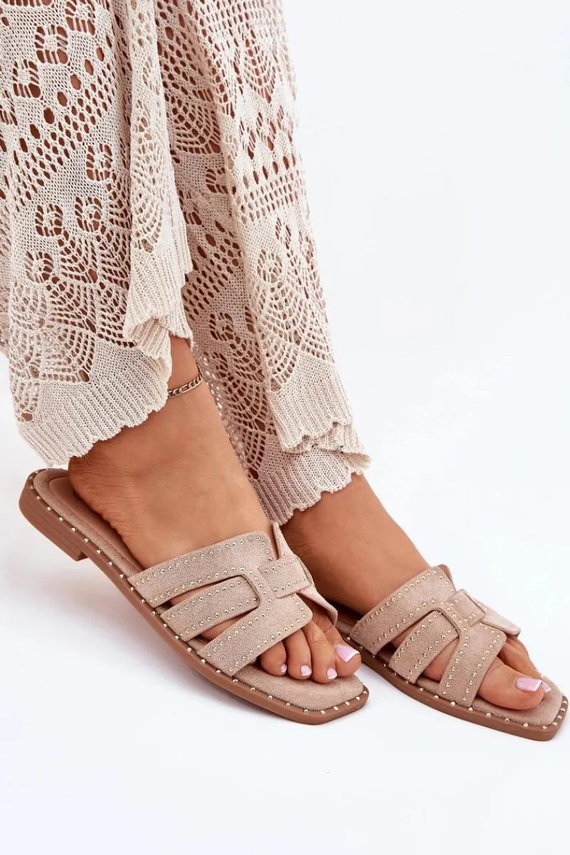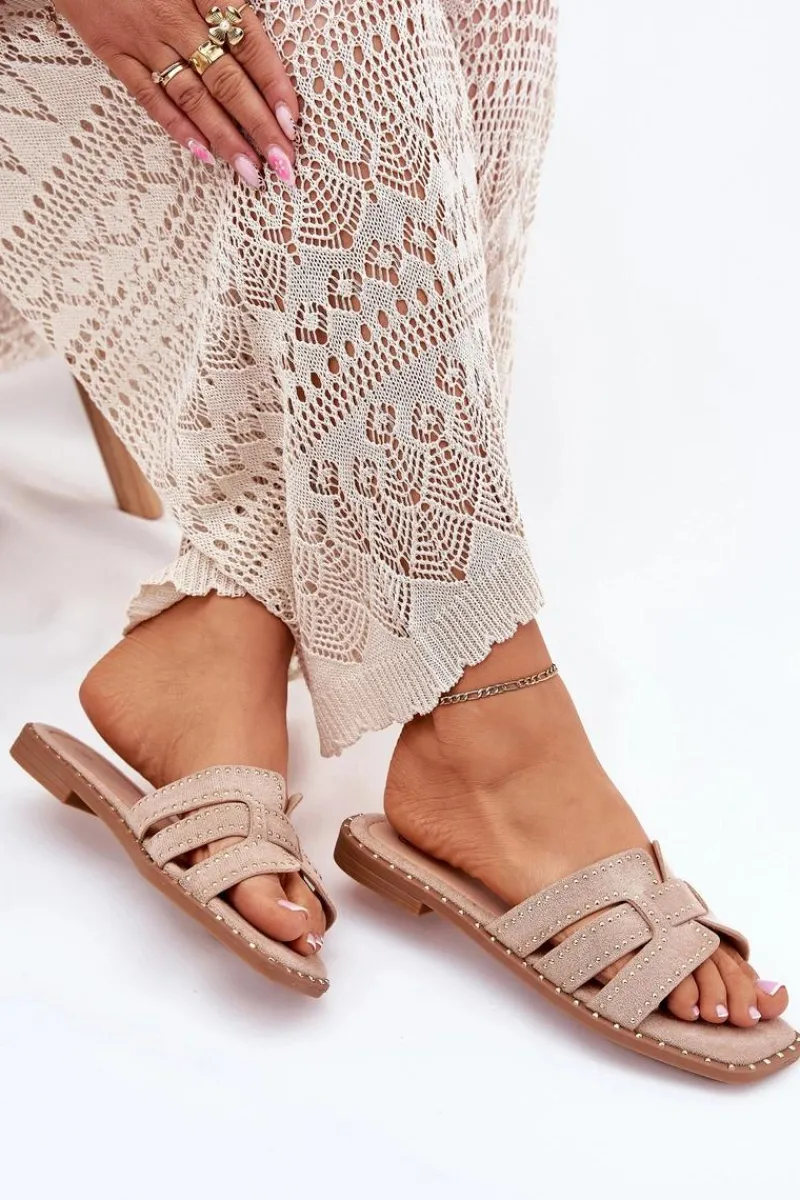 Zdobione klapki damskie wykonane z eko zamszu to elegancka i wygodna propozycja na ciepłe dni. Osadzone na płaskim obcasie, zapewniają komfort przez cały dzień. Subtelne zdobienia przyciągają wzrok, dodając butom wyjątkowego charakteru. Idealne do codziennych stylizacji, łączą funkcjonalność z modnym wyglądem. Przy wyborze rozmiaru prosimy sugerować się tabelą rozmiarów.