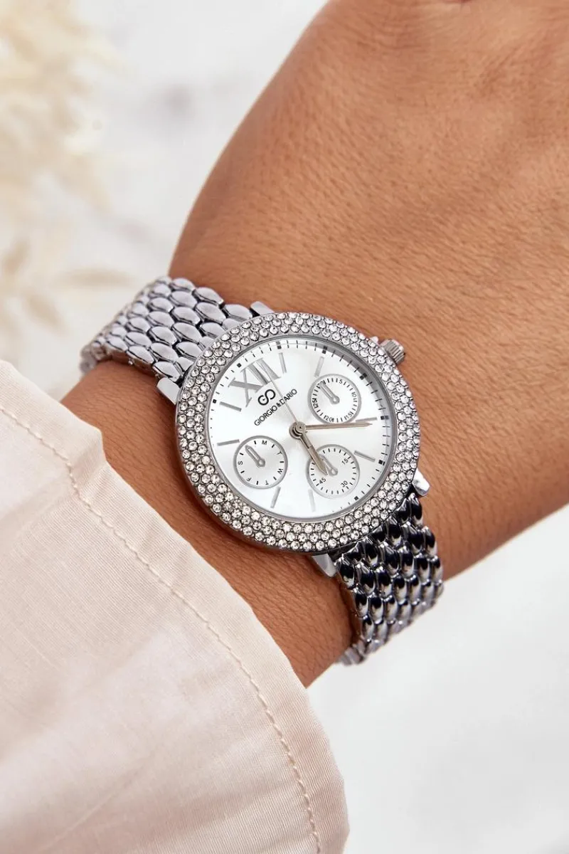 New Zegarek Damski Zdobiony Cyrkoniami Giorgio & Dario GDM3028 Srebrny Zegarki