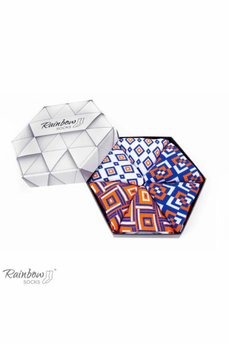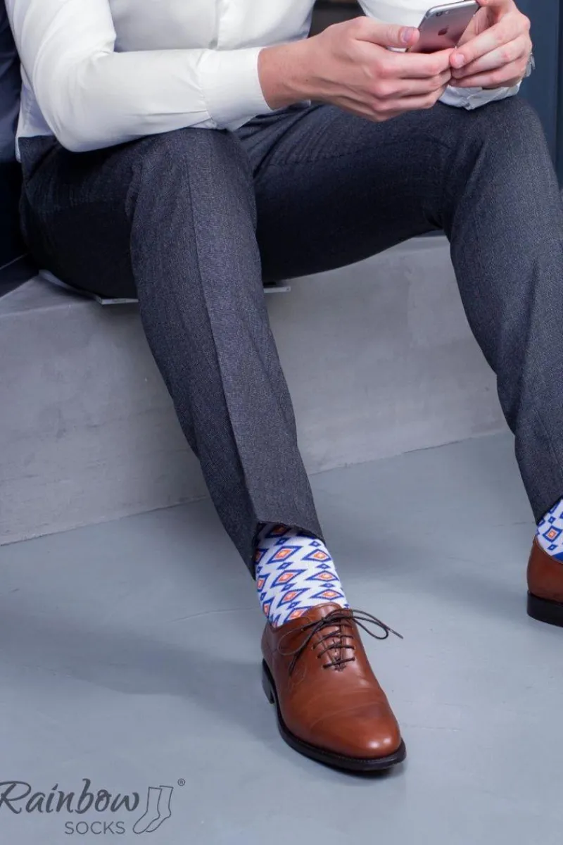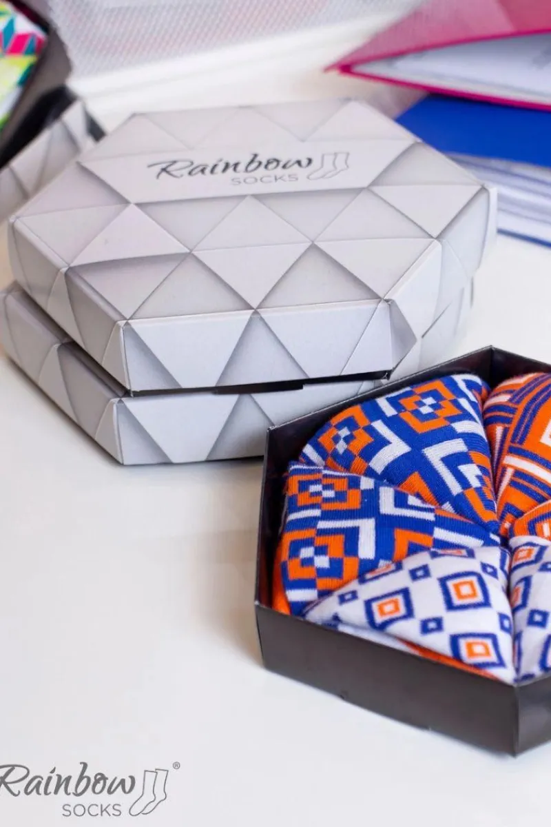 Skarpetki w paski i geometryczne wzory. Czy nie brzmi to, jak doskonały kolorowy dodatek do garnituru dla Twojego biznesmena? Może znasz jakiegoś matematyka, który ma bzika na punkcie geometrii. Albo architekta, który uwielbia proporcje? Każdy z nich, pokocha te skarpetki w geometryczne wzory!