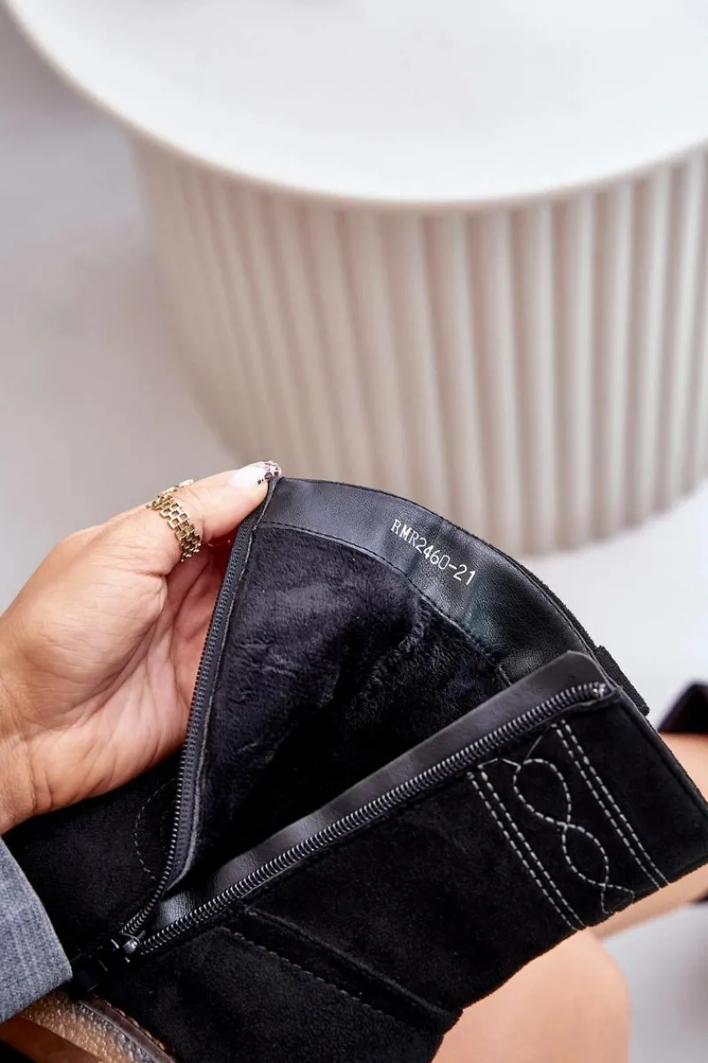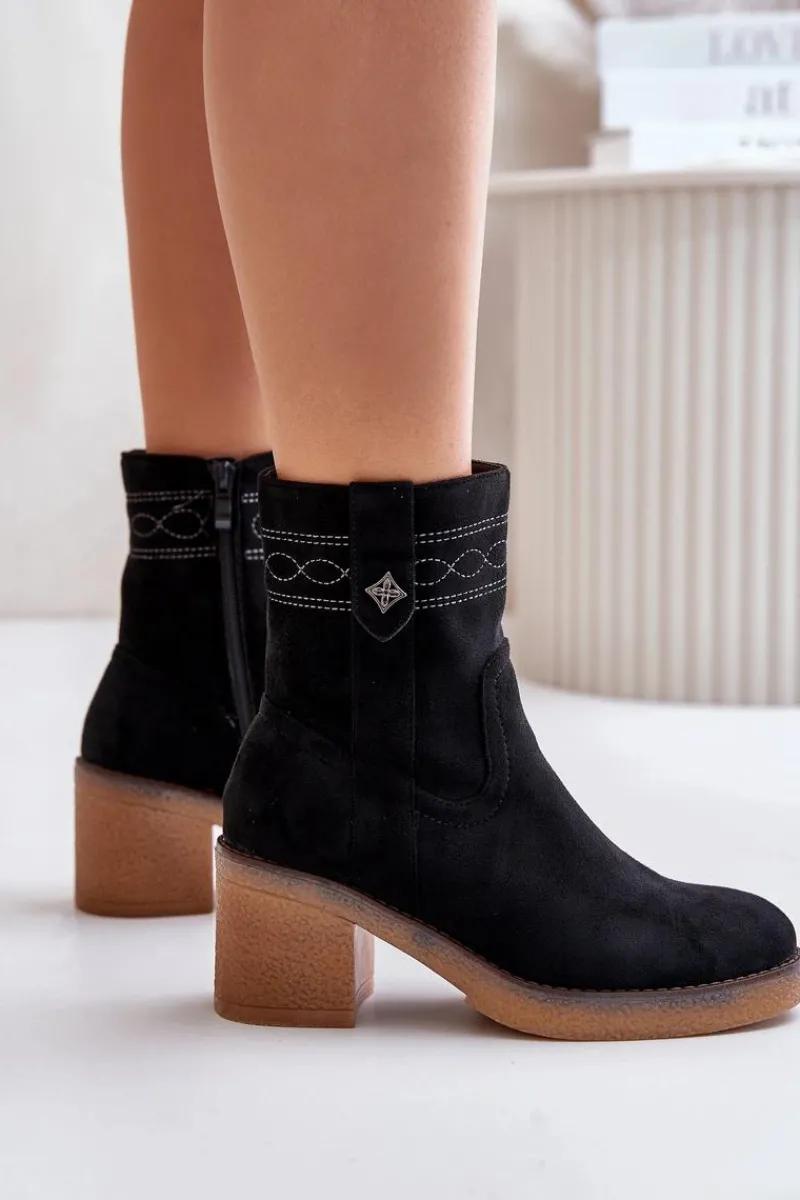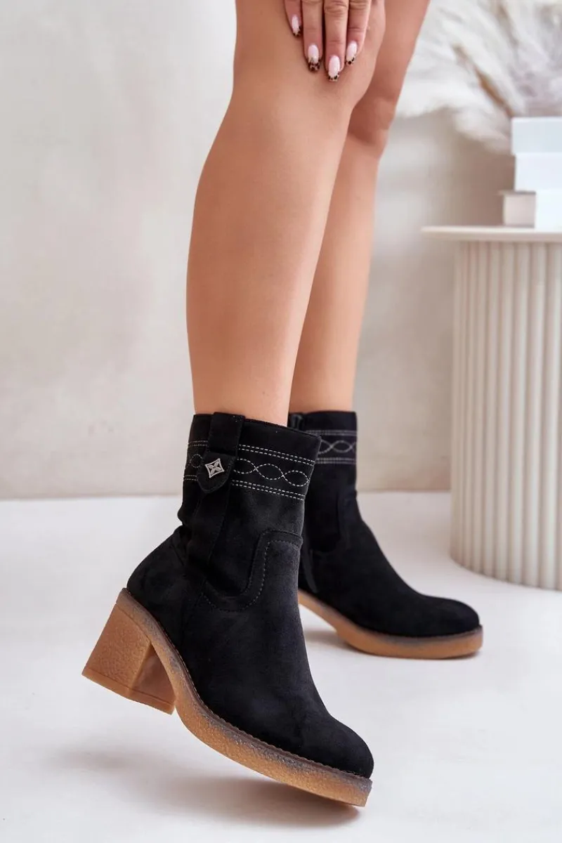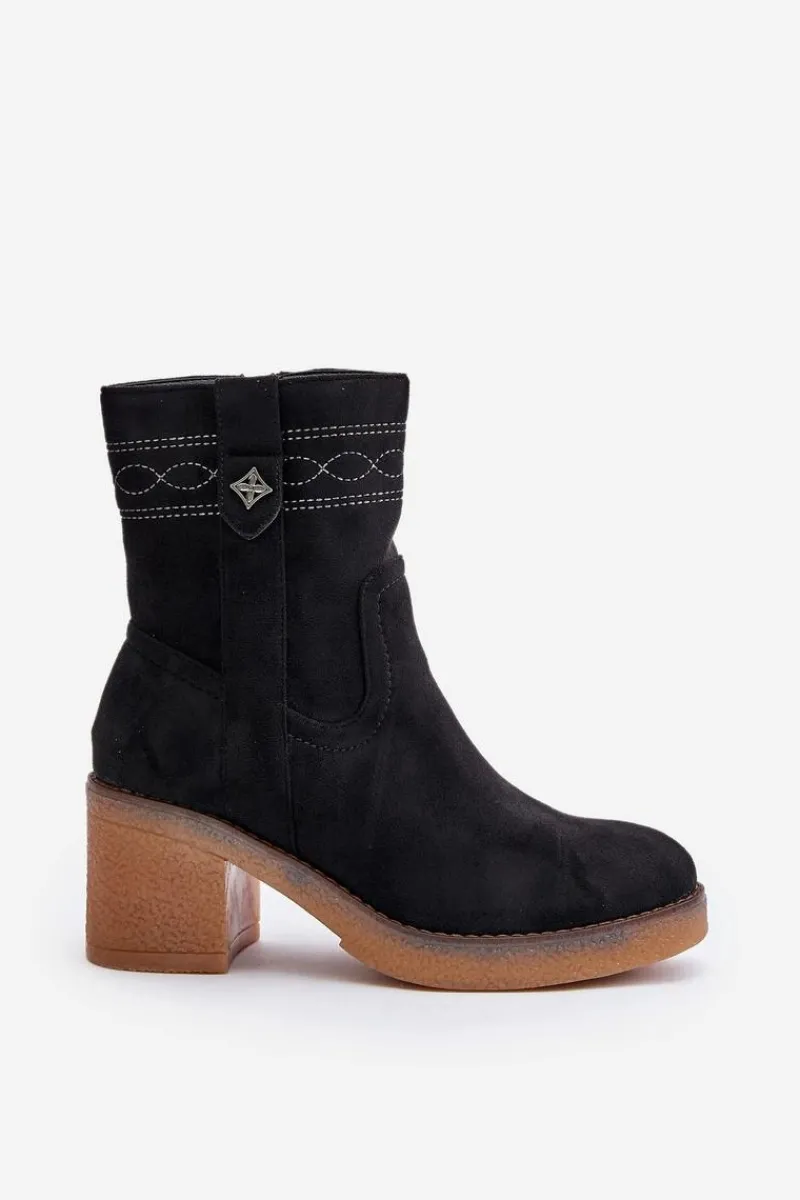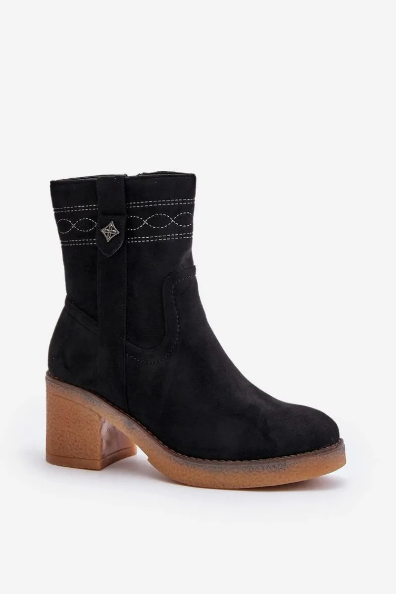 Ocieplane Botki Damskie Na Obcasie Słupku Czarne Vailia Damskie Botki Ocieplane|Botki Na Obcasie