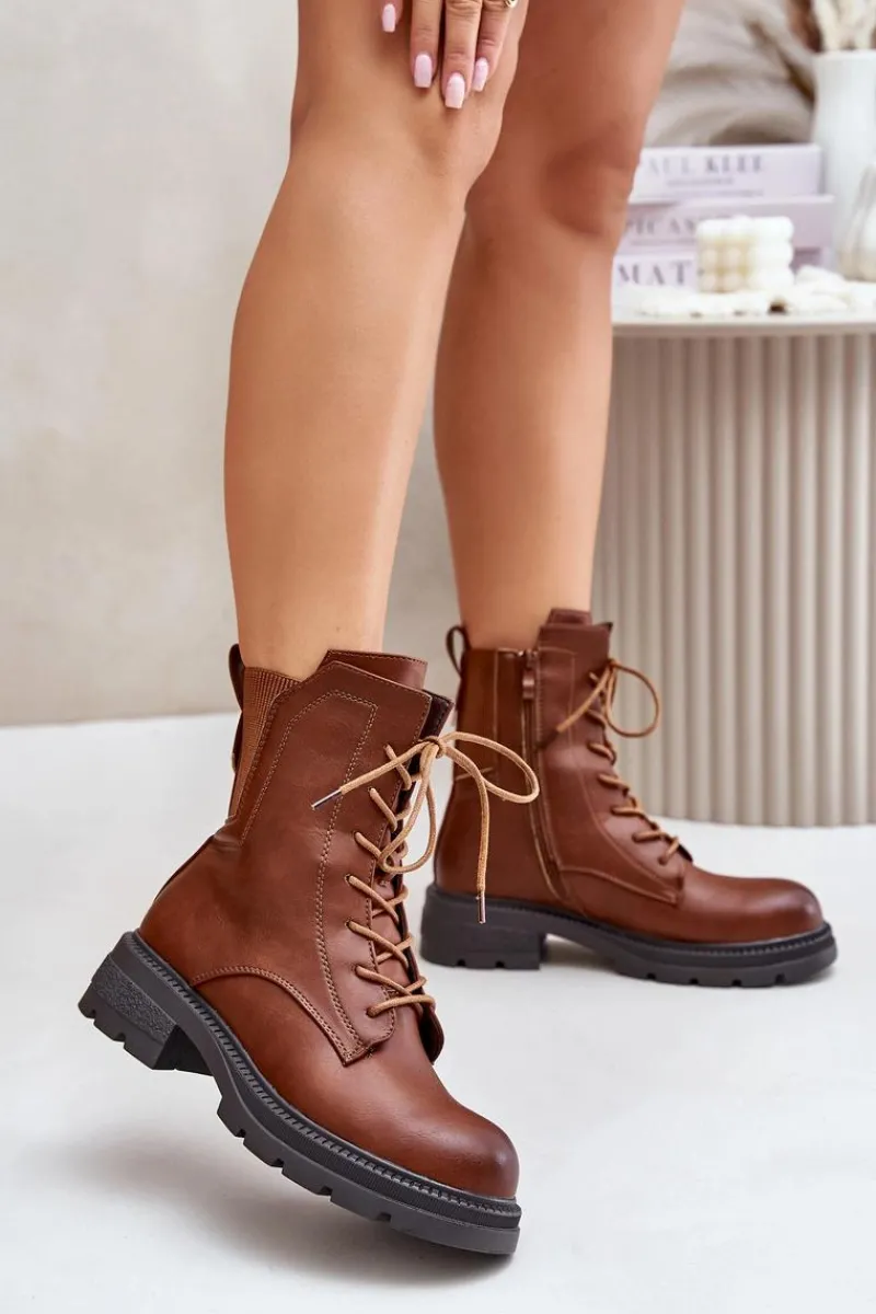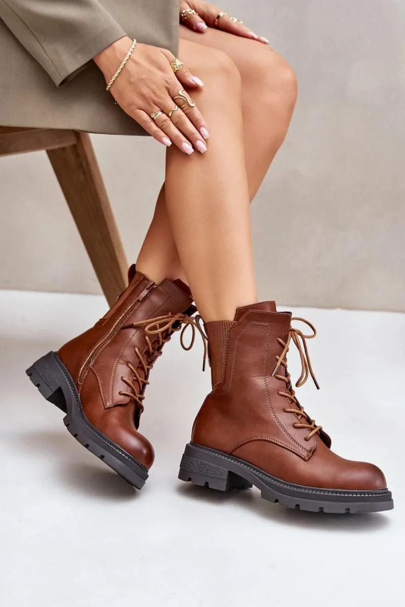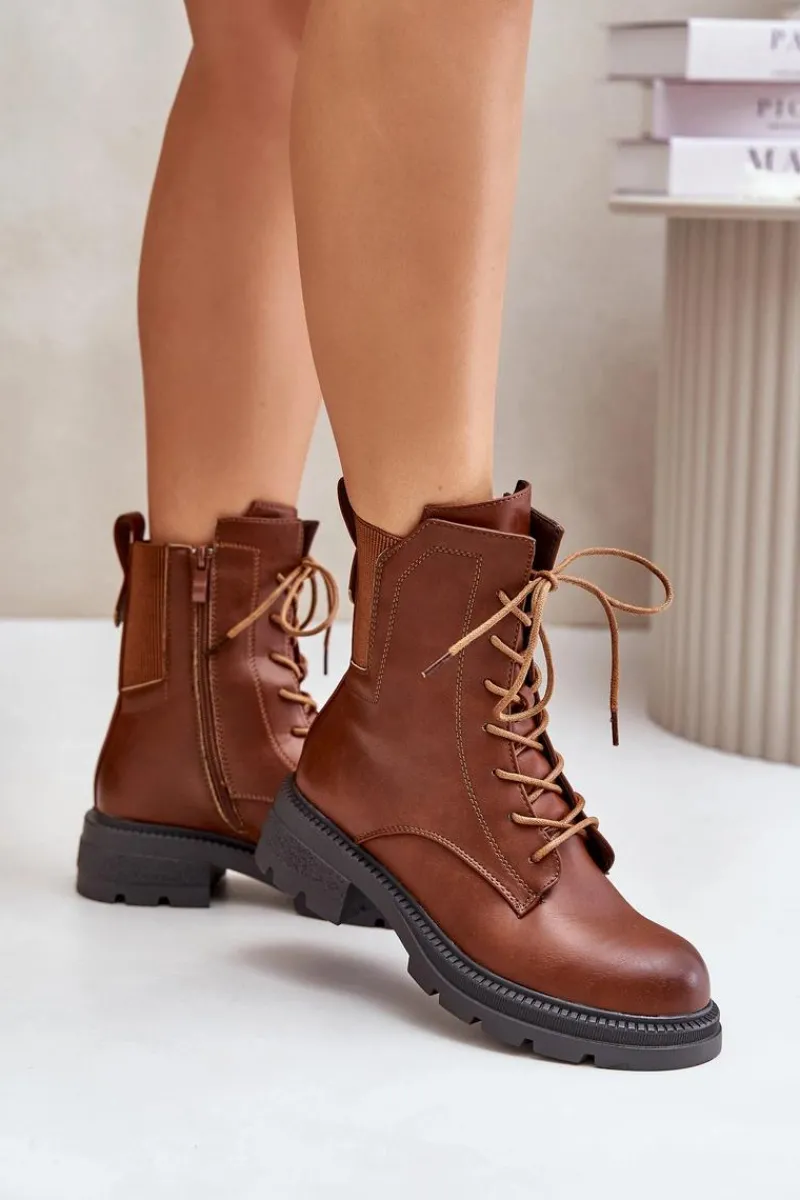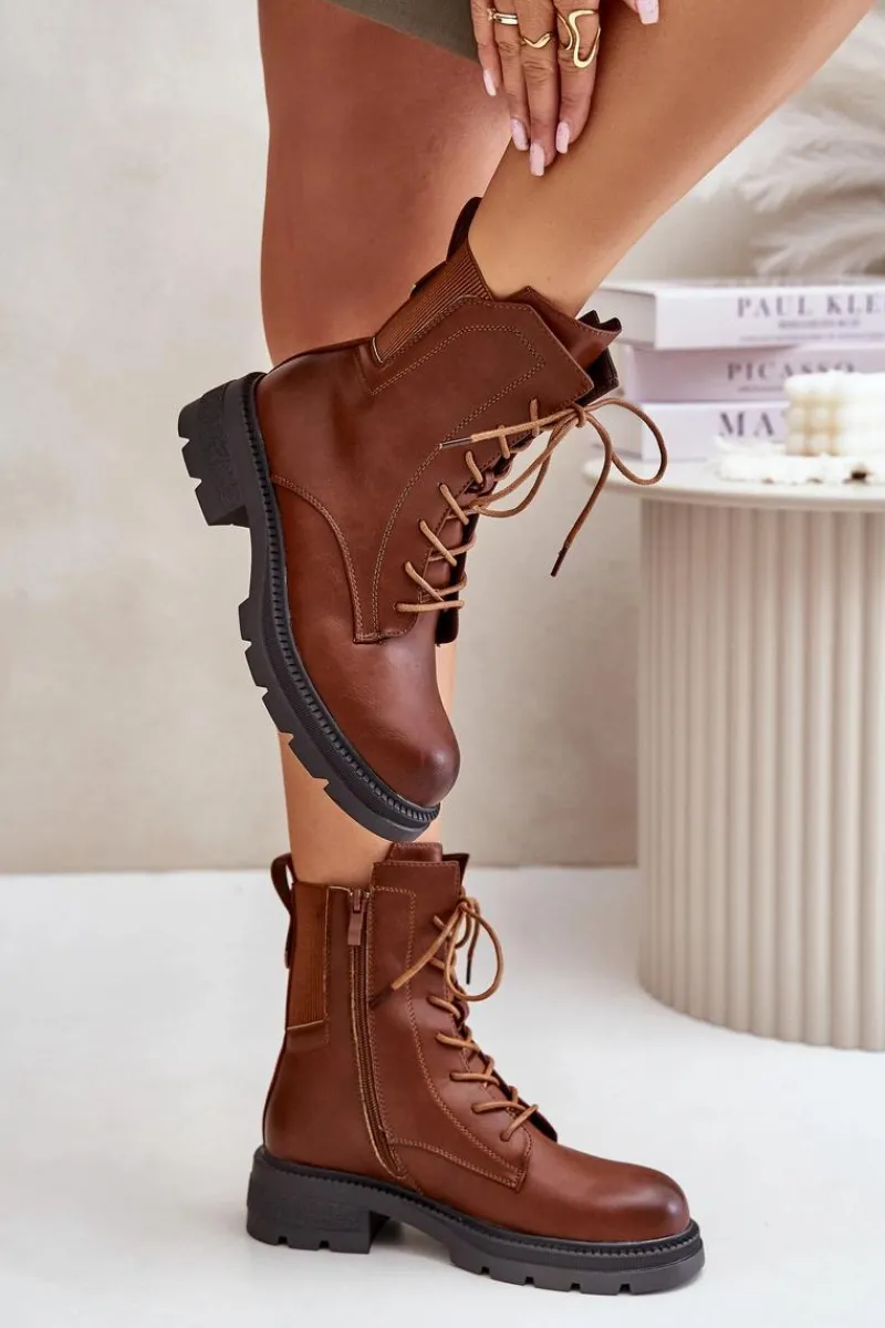 Botki workery od marki Jezzi to stylowe i funkcjonalne obuwie idealne na chłodniejsze dni. Model ocieplany, zapewnia ciepło i wygodę. Posiada zarówno zamek, jak i sznurowanie, co ułatwia zakładanie i dopasowanie do stopy. Zaokrąglone noski dodają im klasycznego, uniwersalnego wyglądu. To doskonały wybór dla kobiet ceniących komfort i modny, casualowy styl w codziennych stylizacjach. Przy wyborze rozmiaru prosimy sugerować się tabelą rozmiarów.