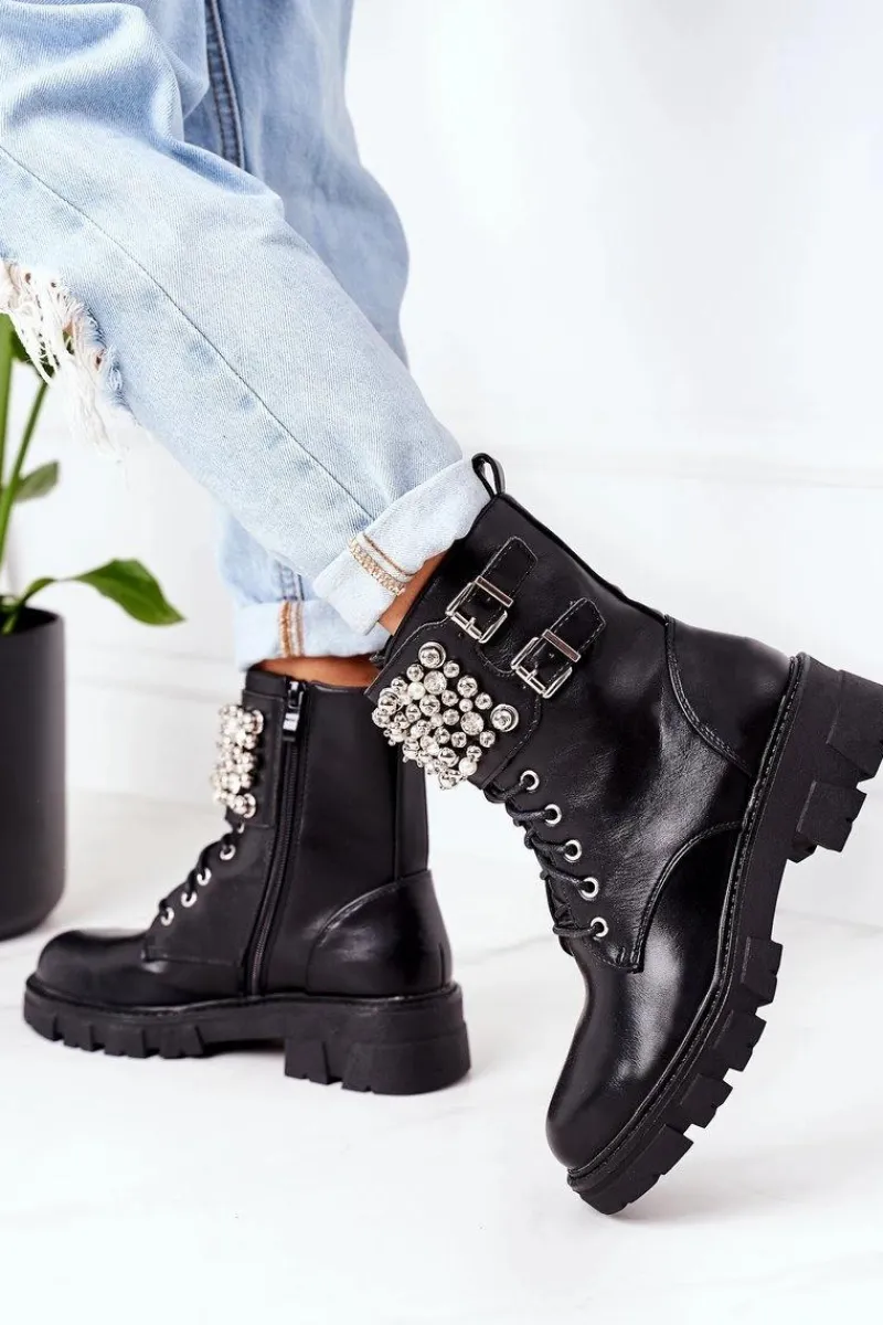 Wyjątkowe botki damskie wykonane z eko skóry. Workery są ocieplone miłym w dotyku kocem obuwniczym. Przy wyborze rozmiaru prosimy sugerować się tabelą rozmiarów.