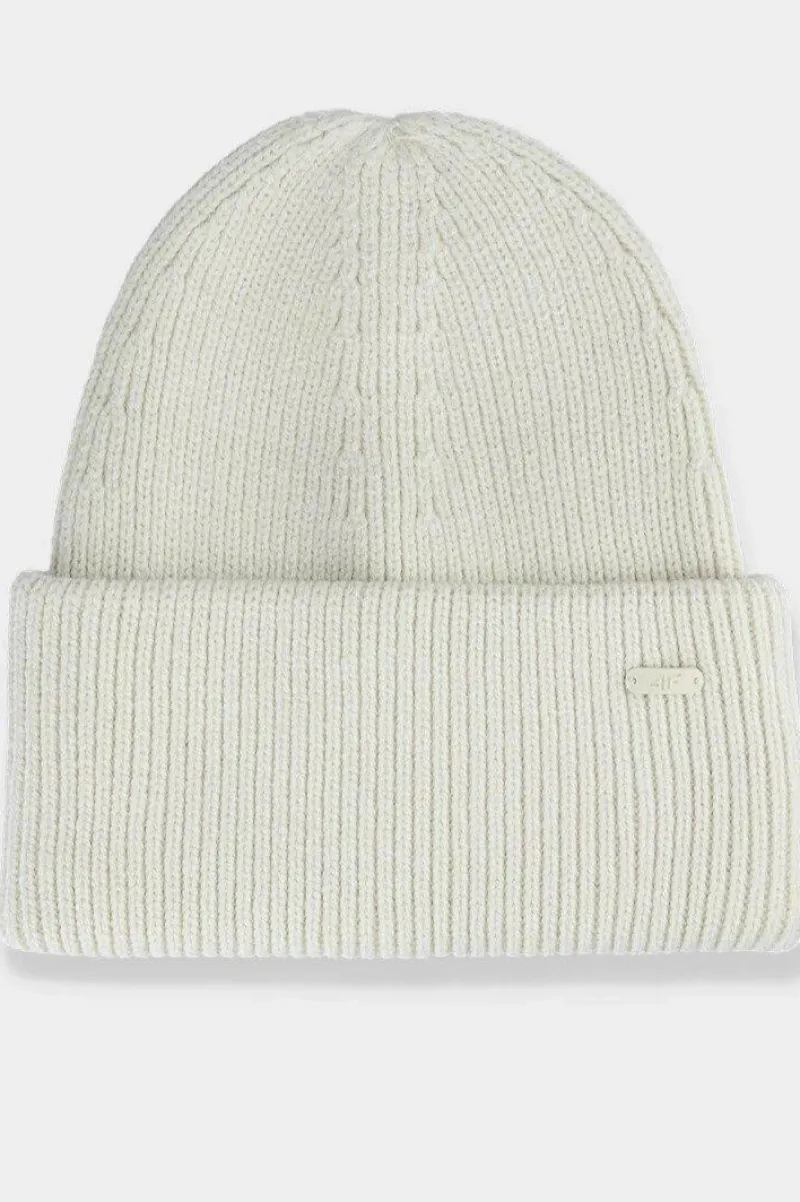 Damska czapka od marki 4F została wykonana z dodatkiem materiałów z recyklingu (zawiera co najmniej 30% poliestru z recyklingu). Jednowarstwowa, z podwiniętym, szerokim mankietem.