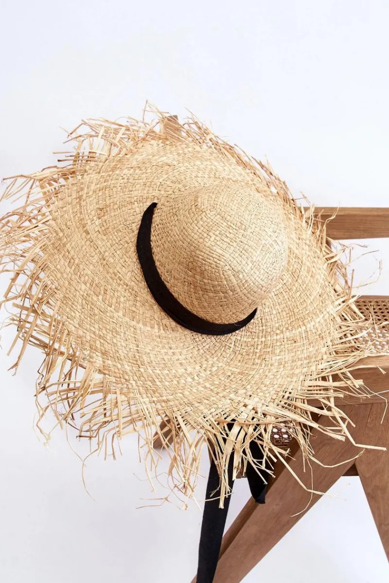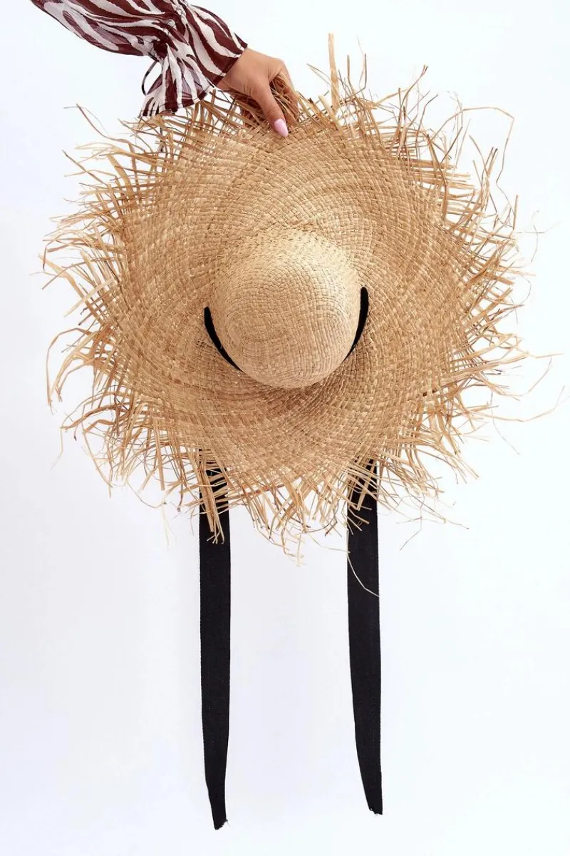 Okrycia Głowy>Boto Damski Kapelusz Słomkowy Z Czarną Wstążką Beżowy Talia