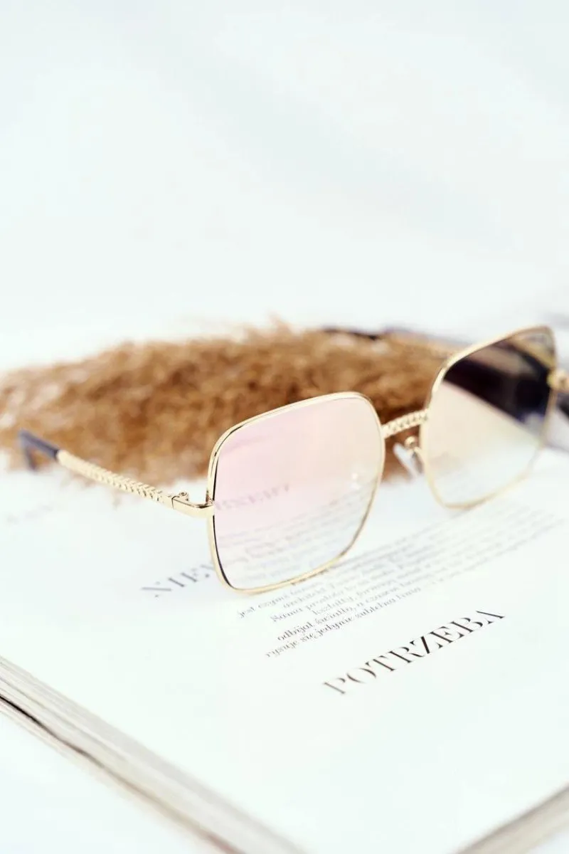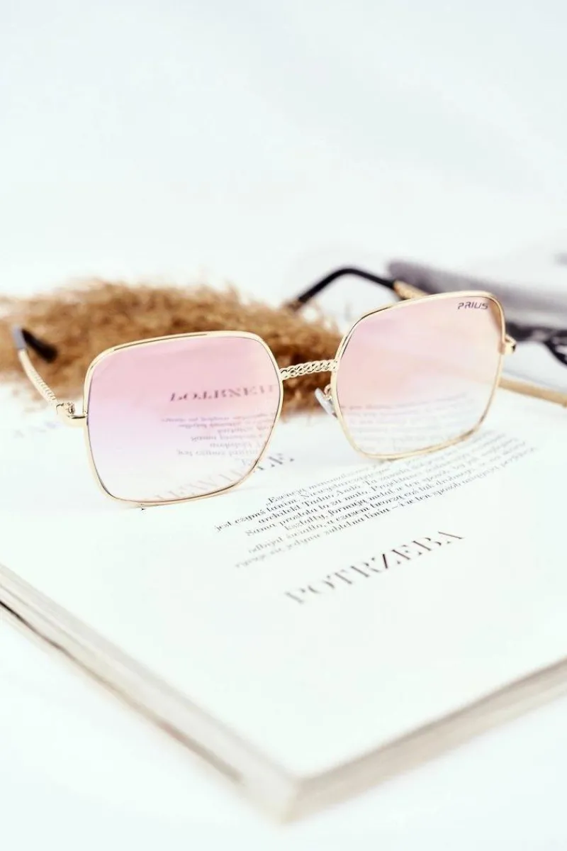 Okulary>PRIUS Okulary Przeciwsłoneczne PRE-14 Złote Różowe Szkła Lustrzane