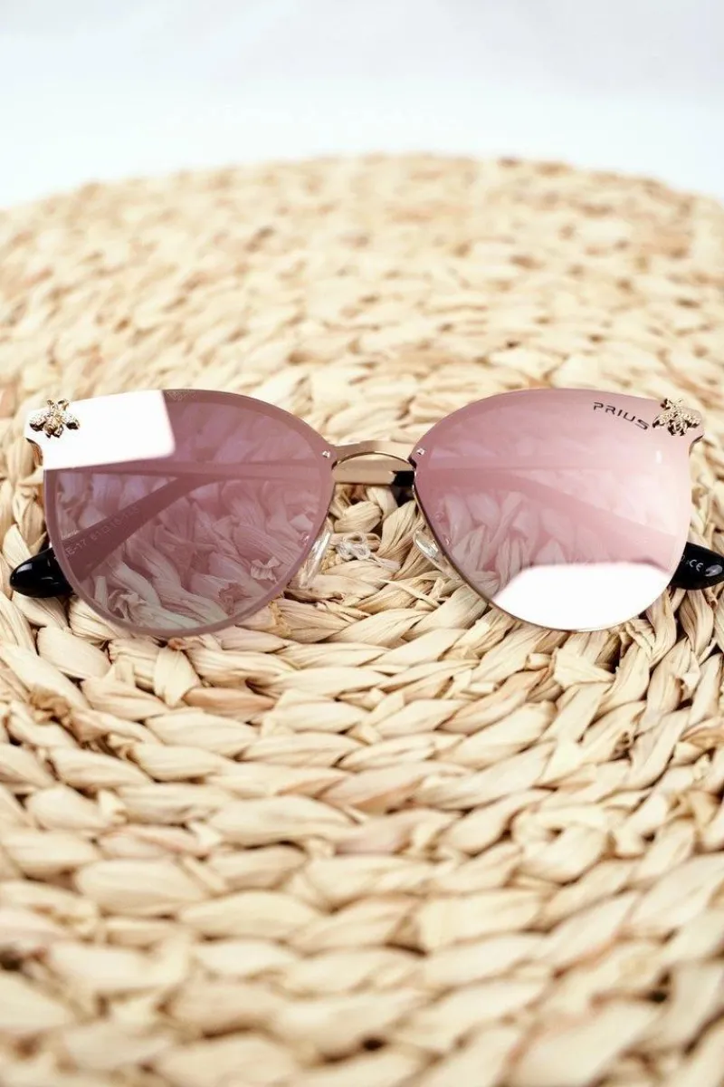 Okulary>PRIUS Okulary Przeciwsłoneczne PRE-17 Złote Różowe Szkła Lustrzane Owad