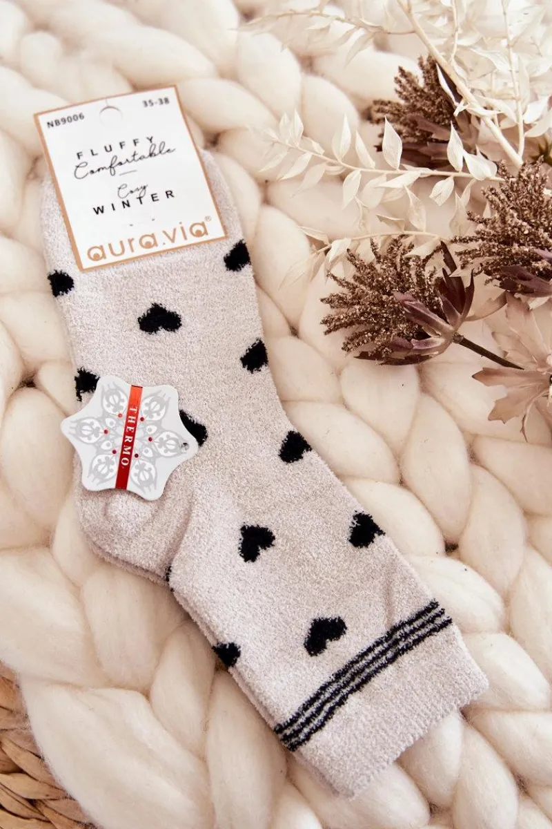 Online Aura.via Damskie Ciepłe Skarpetki W Serca Jasnoszare