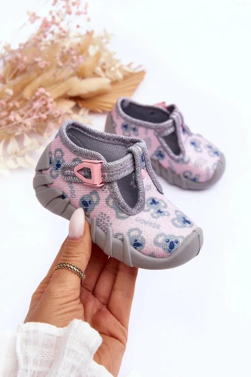 Ten model zachwyci niejedną młodą osóbkę! Śliczne buciki z zapinką przy kostce doskonale podtrzymują nóżkę dziecka, zapewniając mu stabilny i pewny krok. Posiadają szersze czubki, które dają dużo przestrzeni ruchliwym paluszkom oraz oddychającą podeszwę. Buty są polecane przez ortopedów. Sprawdź także inne nasze oferty z papciami dla dorosłych i dzieci! ! Przy wyborze rozmiaru prosimy kierować tabelą rozmiarów.