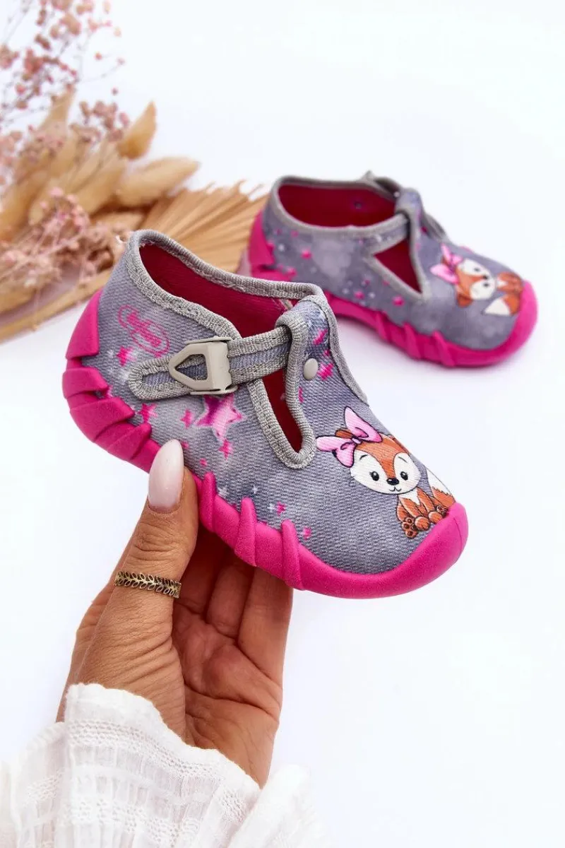 Online BEFADO Buty Papcie Wiewiórki 110P467 Szaro-Różowe