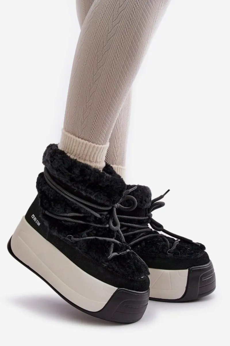 Śniegowce damskie od marki Big Star. Ocieplone futerkiem zapewni ciepło dla stóp w zimne dni. Osadzone na antypoślizgowej podeszwie, która zapewnia doskonałą przyczepność na oblodzonych powierzchniach. Śniegowce idealnie komponują się z różnorodnymi stylizacjami, od swobodnych po sportowe. Przy wyborze rozmiaru prosimy sugerować się tabelą rozmiarów.