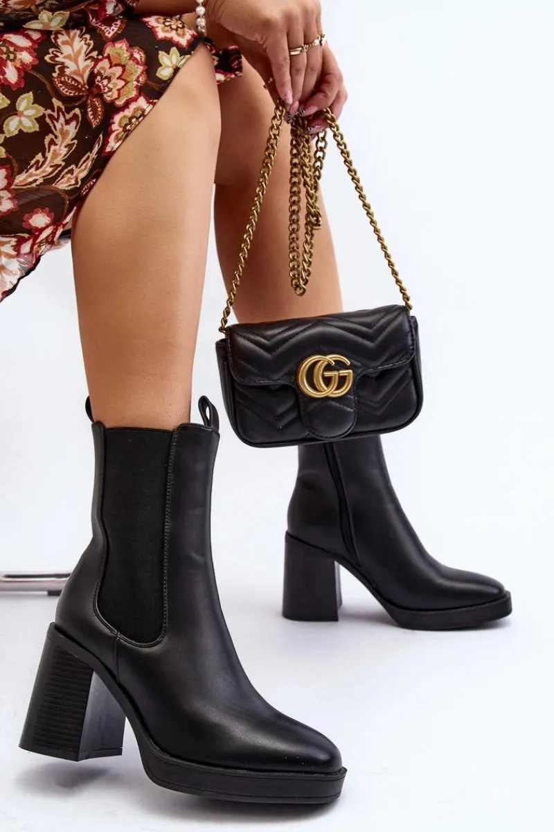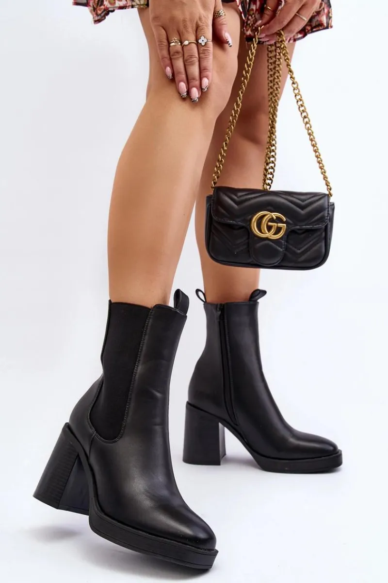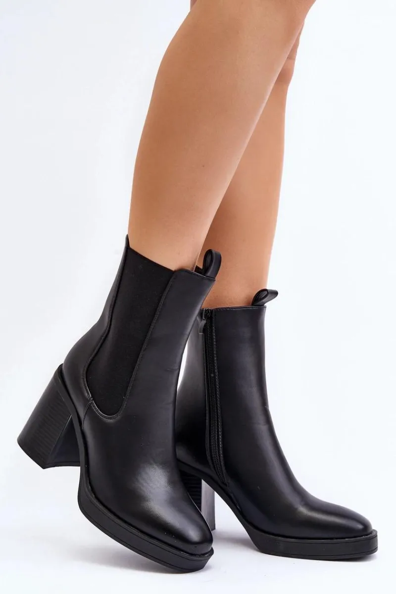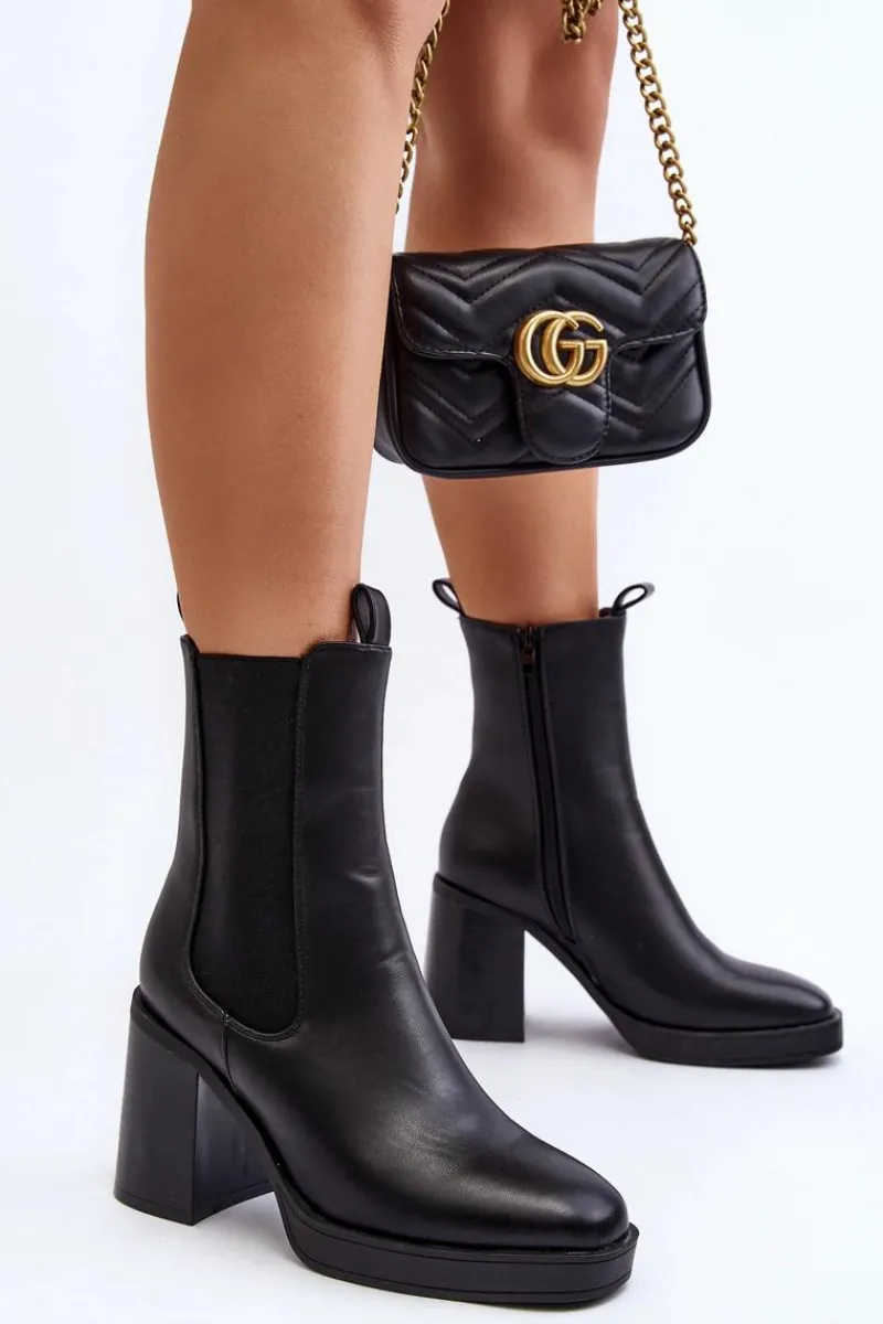 Online Botki Damskie Na Masywnym Obcasie Czarne Piovere Damskie Czarne Botki|Botki Na Obcasie