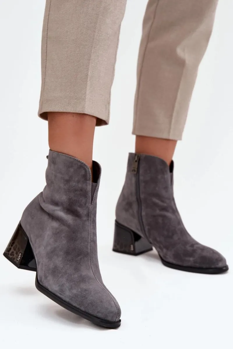 Botki damskie z naturalnego zamszu od marki Vinceza to elegancka propozycja, która doskonale łączy klasykę z wygodą. Model został osadzony na stabilnym obcasie w formie klocka, który delikatnie podkreśla sylwetkę, a jednocześnie zapewnia pewność i wygodę przy każdym kroku. Wnętrze ocieplane miękkim kocem obuwniczym dba o ciepło i przyjemne otulenie stóp, dzięki czemu buty świetnie sprawdzą się w sezonie jesienno-zimowym. Charakterystycznym elementem tego modelu jest przeszycie biegnące wzdłuż cholewki z przodu, które nadaje całości subtelnej elegancji i nowoczesnego wykończenia. To botki, które z powodzeniem dopełnią zarówno codzienne, casualowe zestawy, jak i bardziej eleganckie stylizacje. Przy wyborze rozmiaru prosimy sugerować się tabelą rozmiarów.