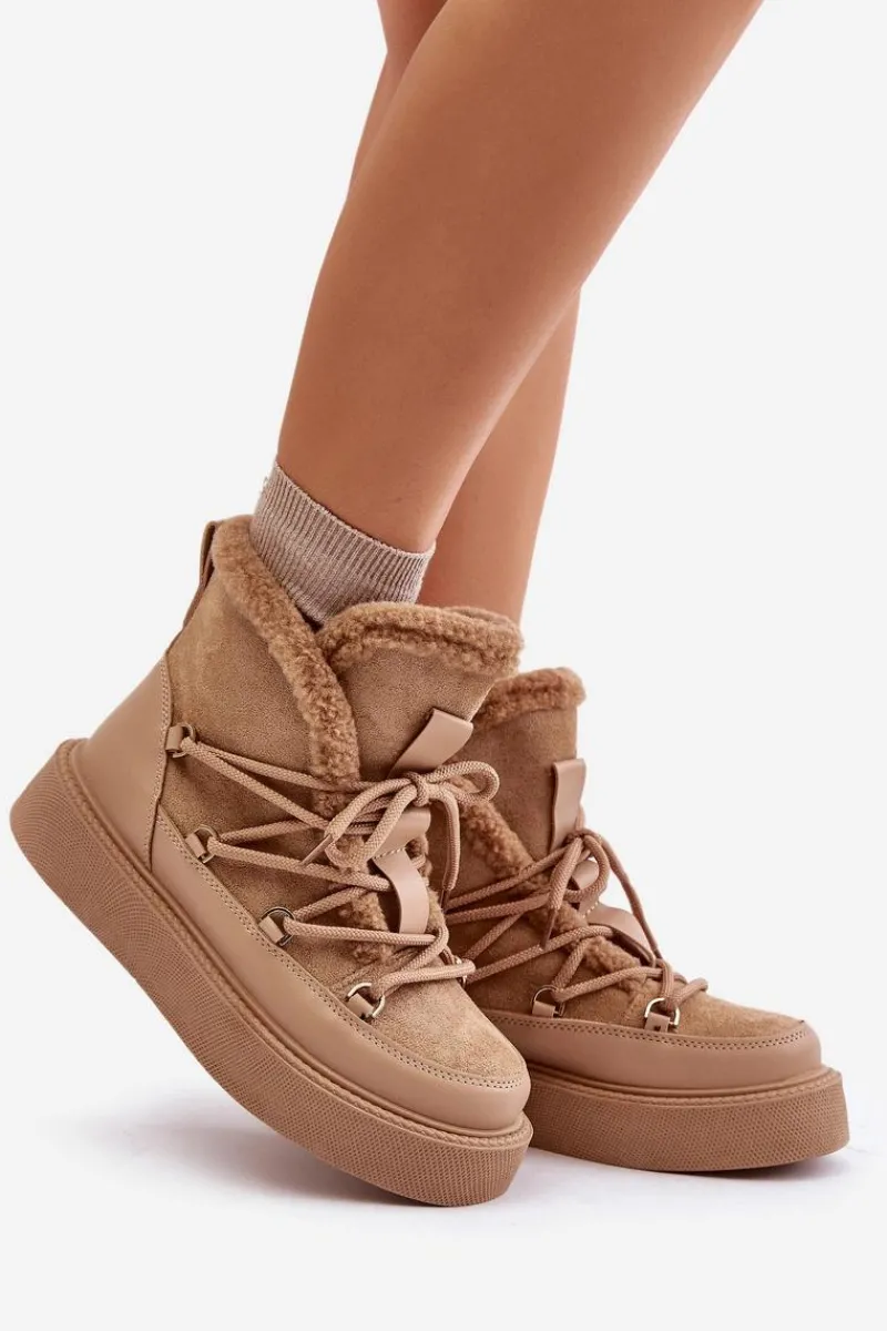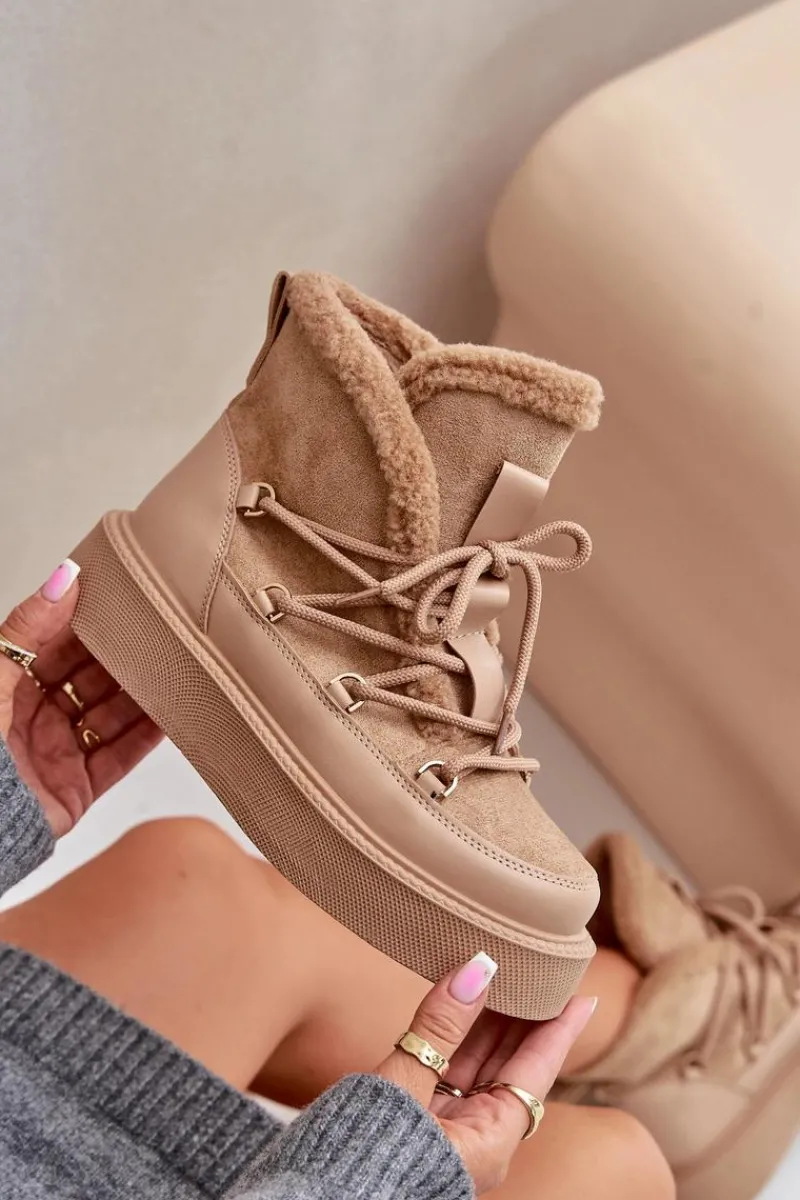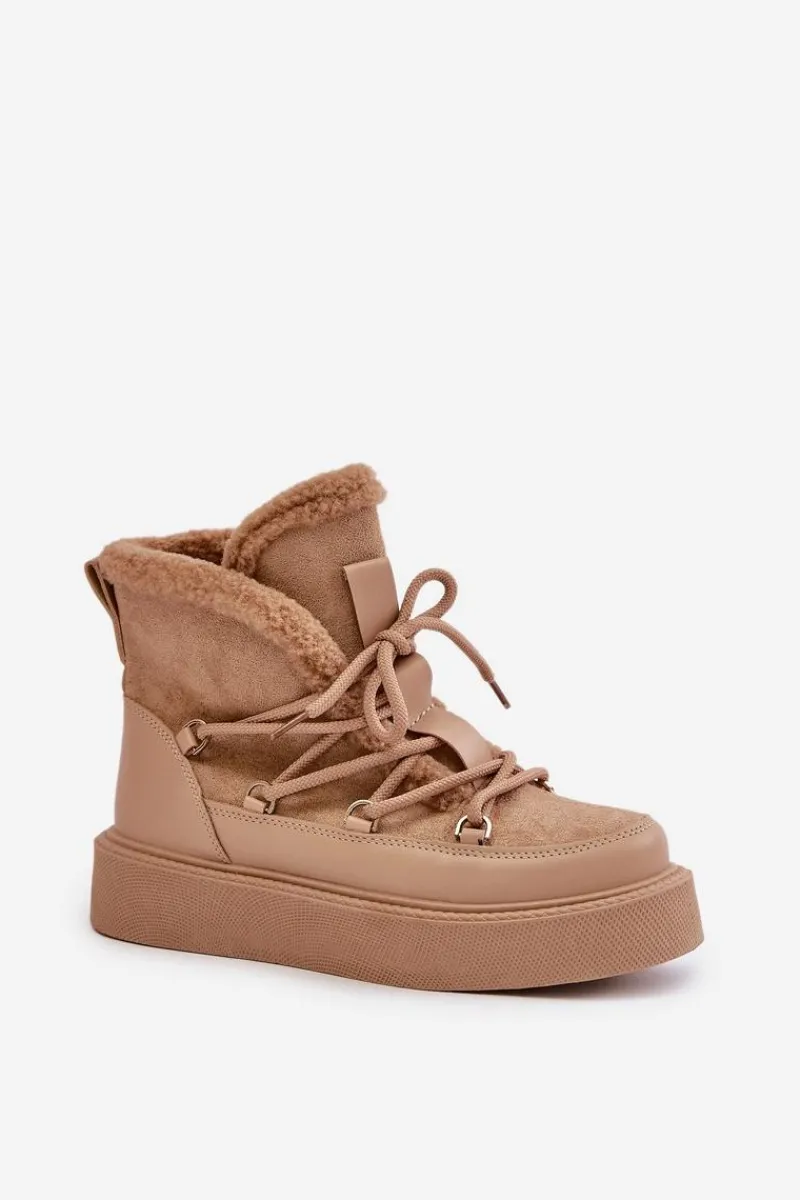 Damskie śniegowce z eko zamszu to połączenie stylu i funkcjonalności. Osadzone na platformie, zapewniają wygodę oraz dodatkową izolację od zimna. Wnętrze ocieplane miękkim futerkiem, które gwarantuje ciepło w chłodne dni. Modne wiązanie z przodu dodaje im wyjątkowego charakteru, czyniąc je idealnym wyborem na zimowe spacery i codzienne stylizacje. Przy wyborze rozmiaru prosimy sugerować się tabelą rozmiarów.