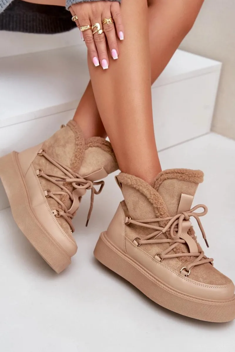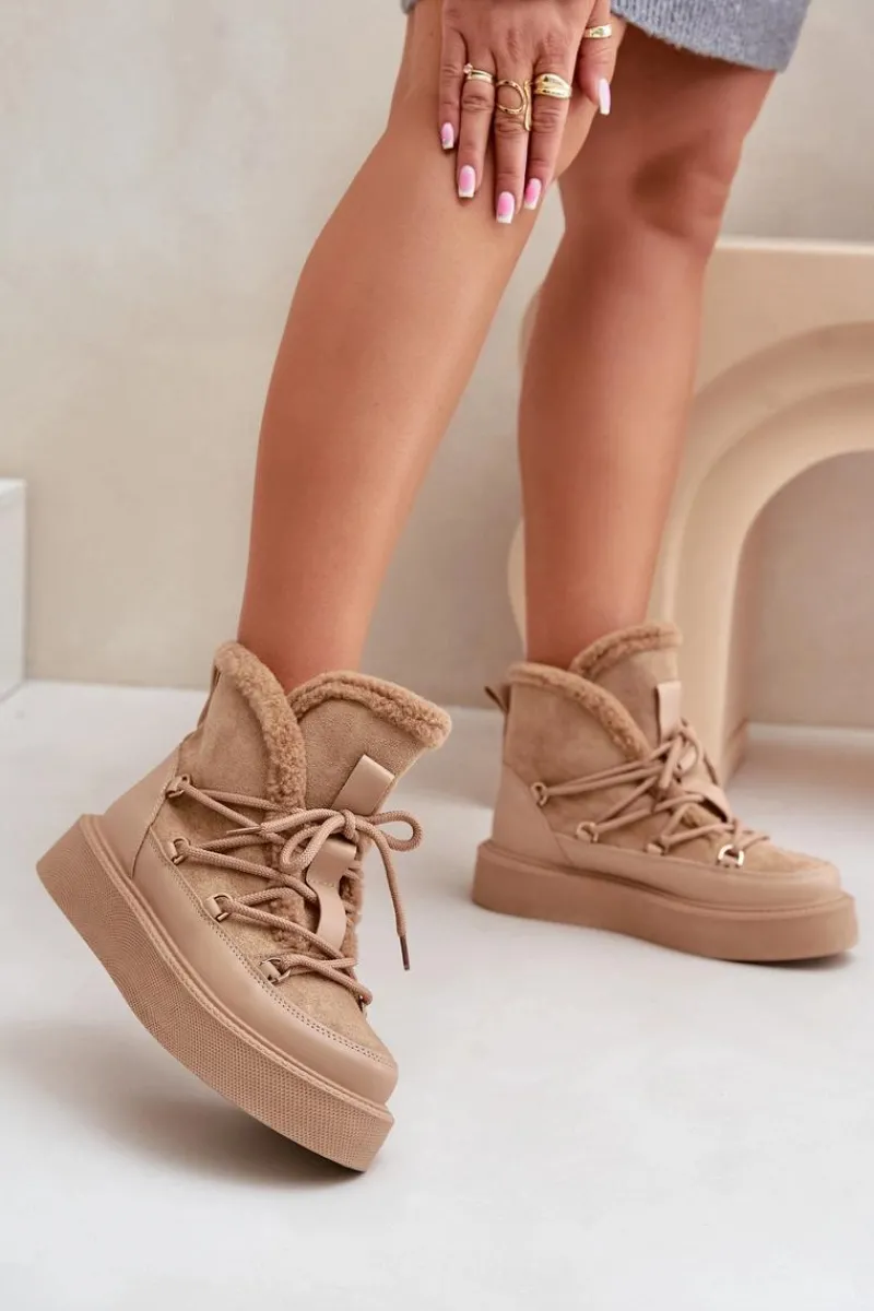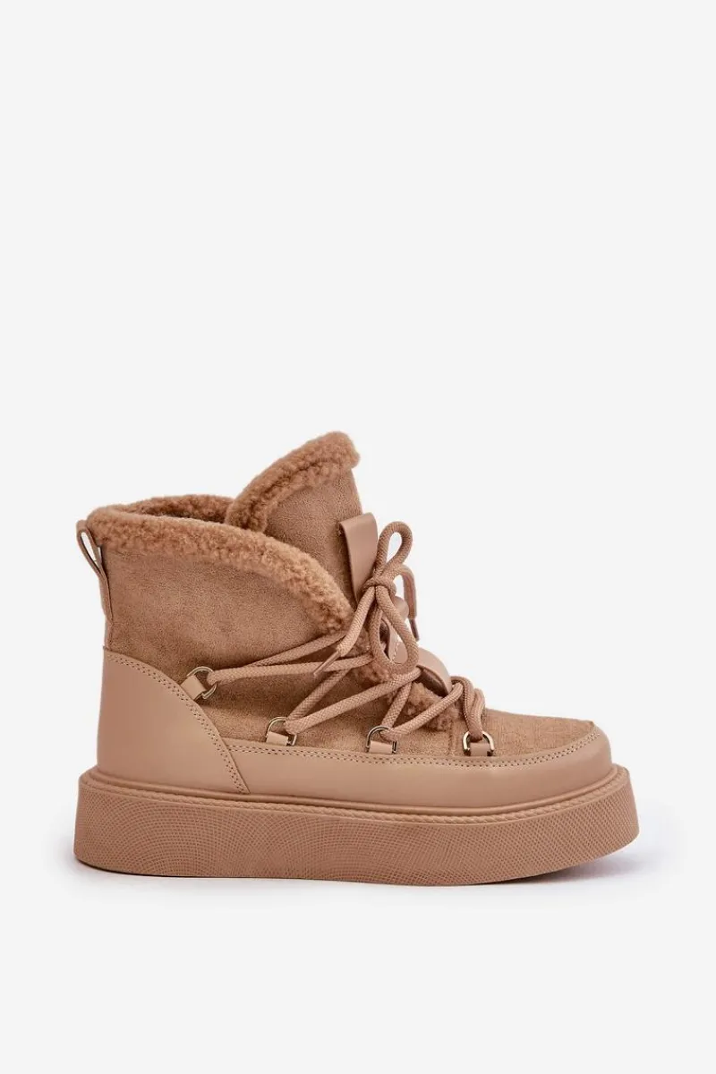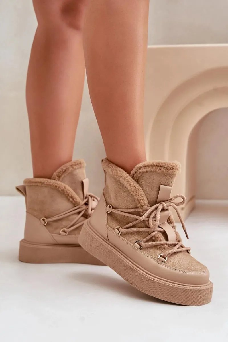 Damskie śniegowce z eko zamszu to połączenie stylu i funkcjonalności. Osadzone na platformie, zapewniają wygodę oraz dodatkową izolację od zimna. Wnętrze ocieplane miękkim futerkiem, które gwarantuje ciepło w chłodne dni. Modne wiązanie z przodu dodaje im wyjątkowego charakteru, czyniąc je idealnym wyborem na zimowe spacery i codzienne stylizacje. Przy wyborze rozmiaru prosimy sugerować się tabelą rozmiarów.