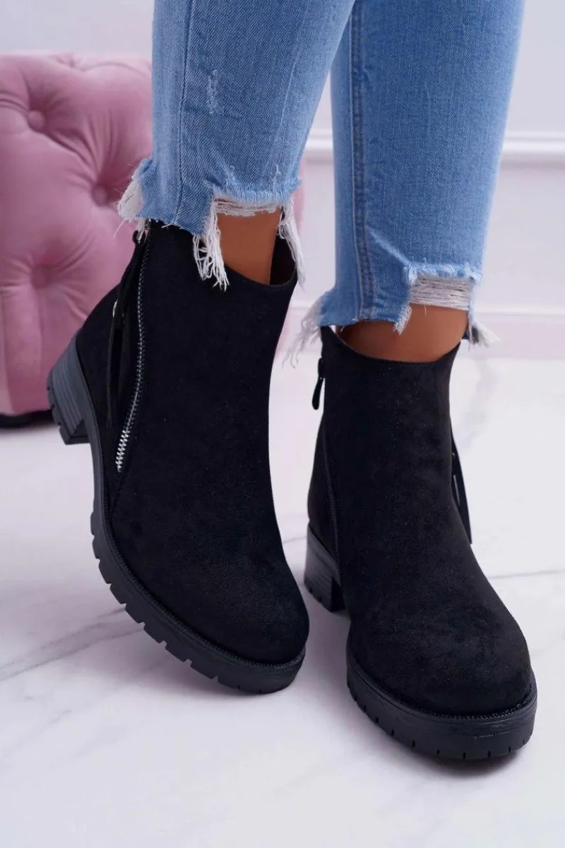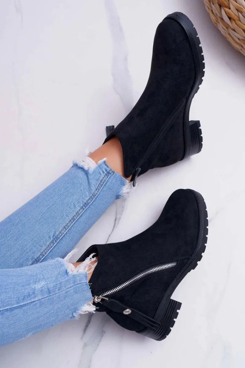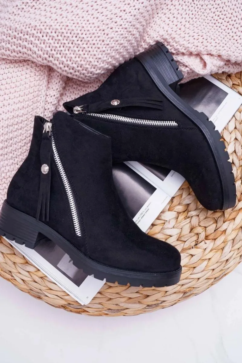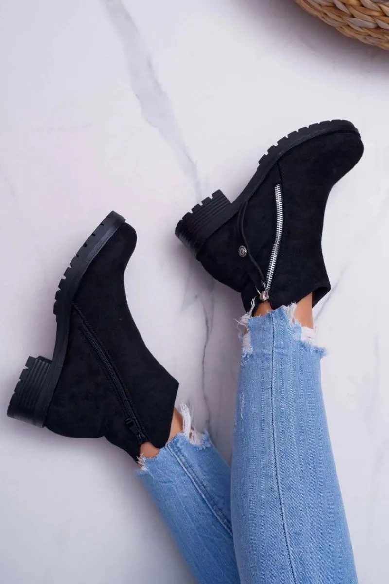 Online Boto Botki Damskie Ciepłe Zamszowe Dwa Suwaki Czarne Ohoo