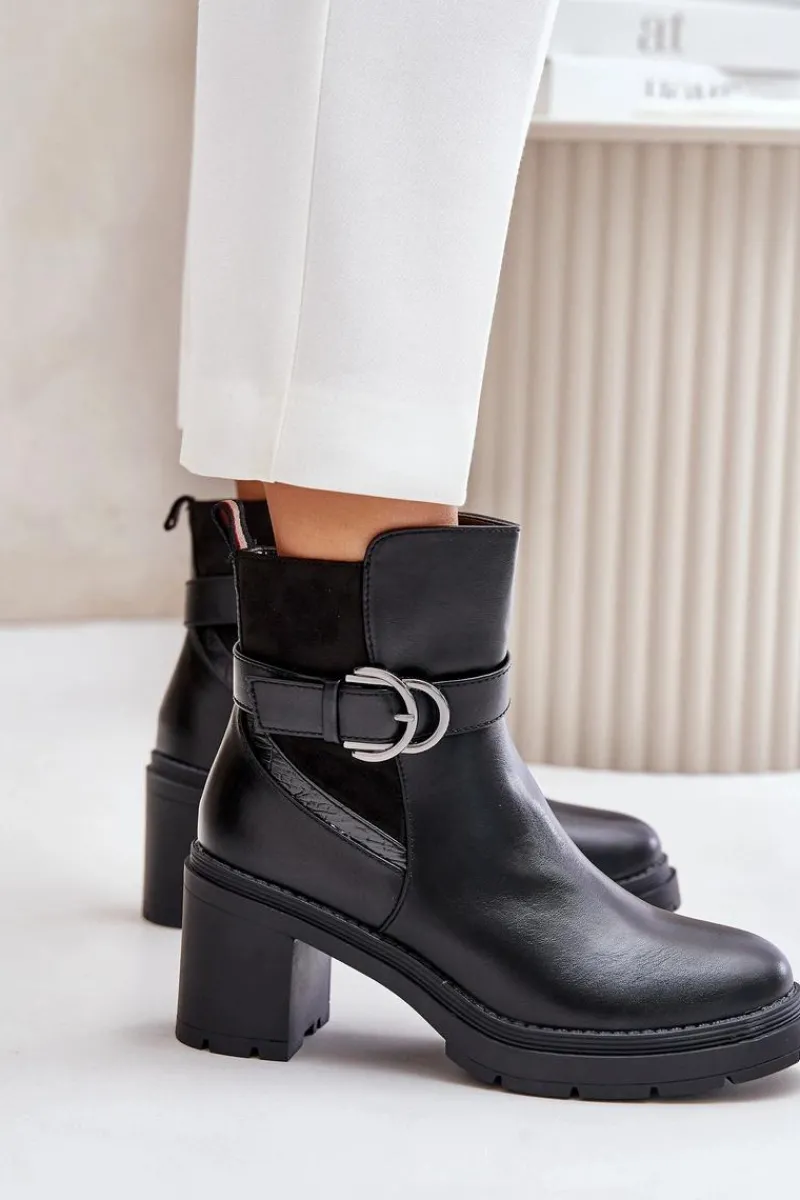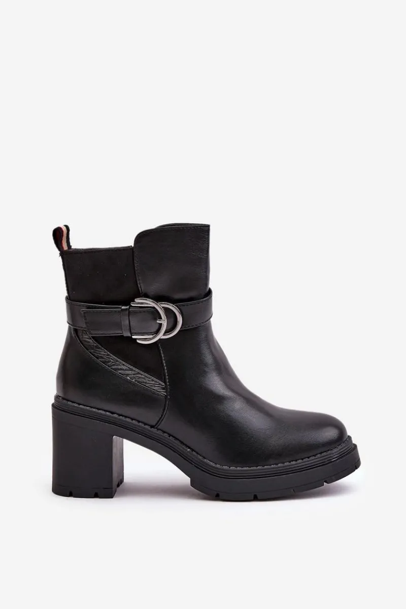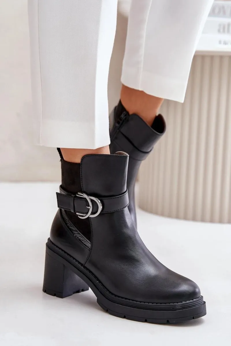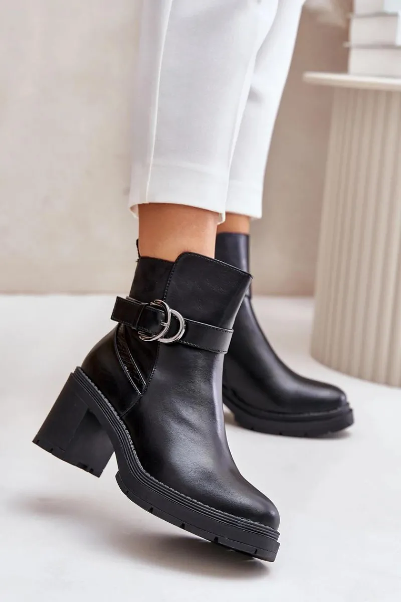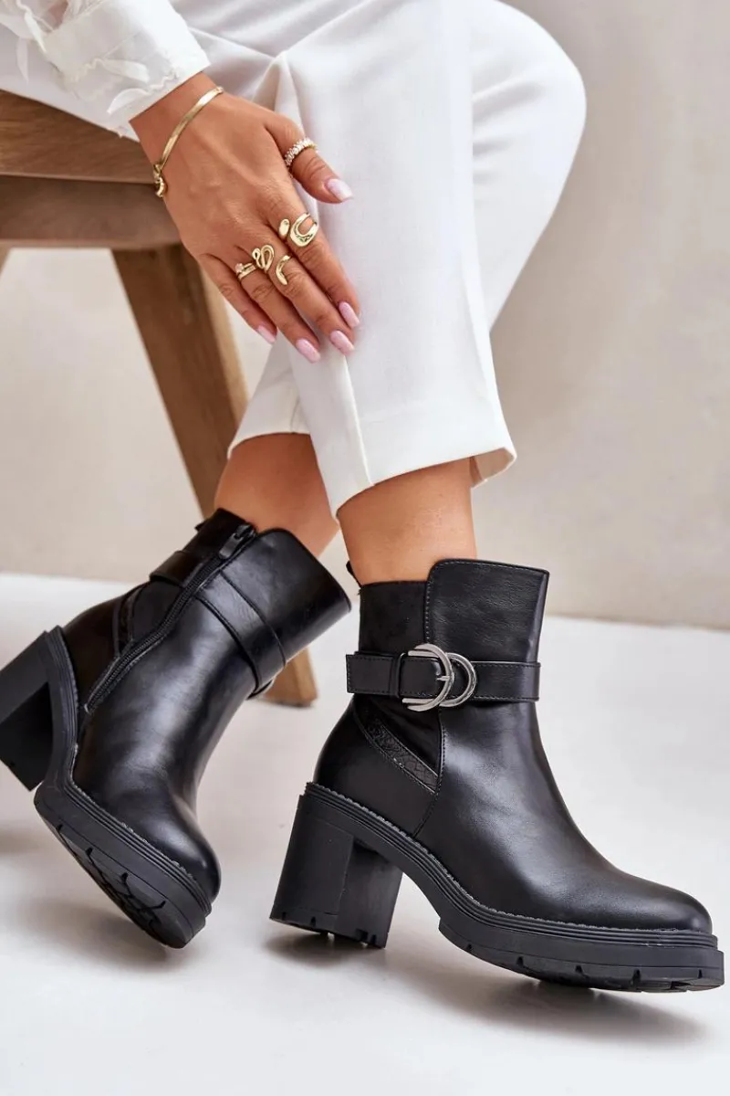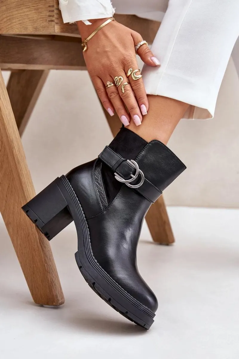 Ocieplane botki to idealny wybór na chłodniejsze dni. Wykonane ze skóry ekologicznej. Osadzone na obcasie w formie słupka. Noski zaokrąglone. Zapinane na zamek, co ułatwi zakładanie i zdejmowanie obuwia. Środek ocieplany kocem obuwniczym. Model ten wyróżnia się paskiem ze złotą klamrą. Koniecznie powinnaś je mieć! Przy wyborze rozmiaru prosimy sugerować się tabelą rozmiarów.