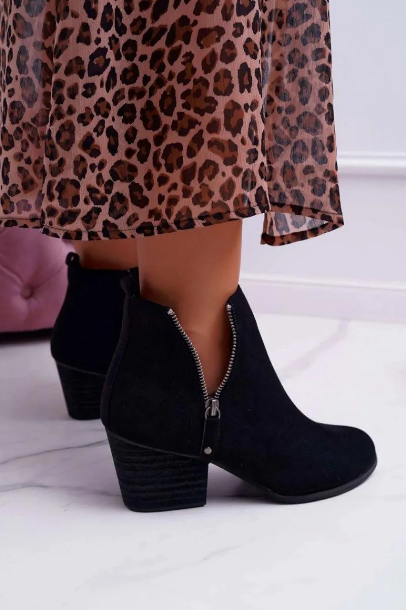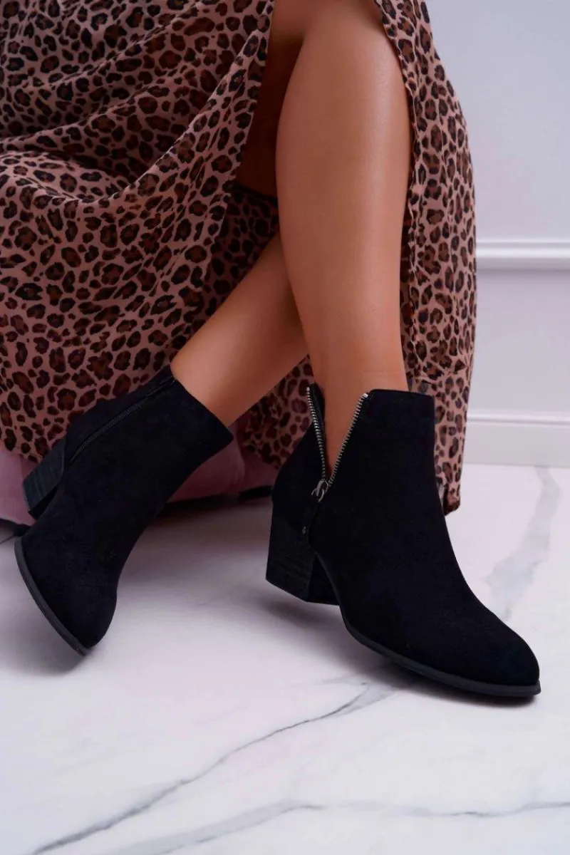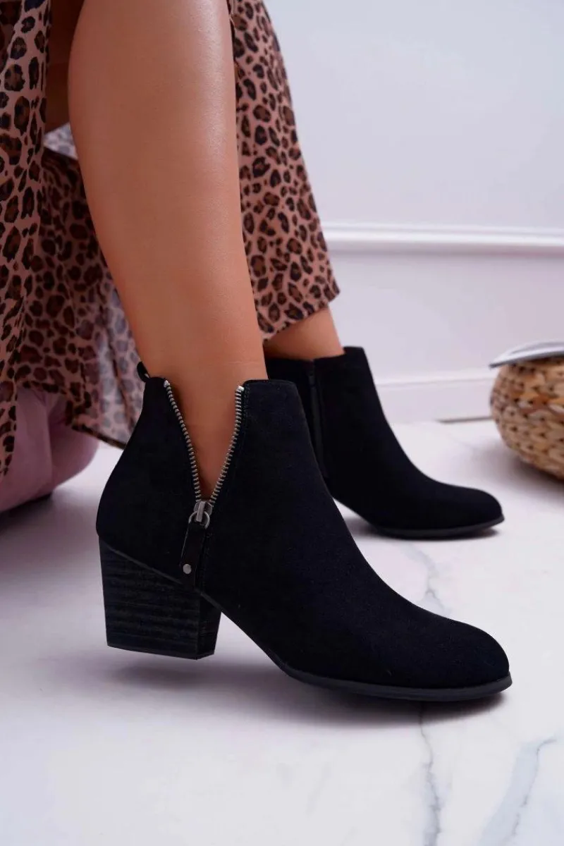 Online Boto Botki Damskie Na Obcasie Suwak Zamszowe Czarne Farre