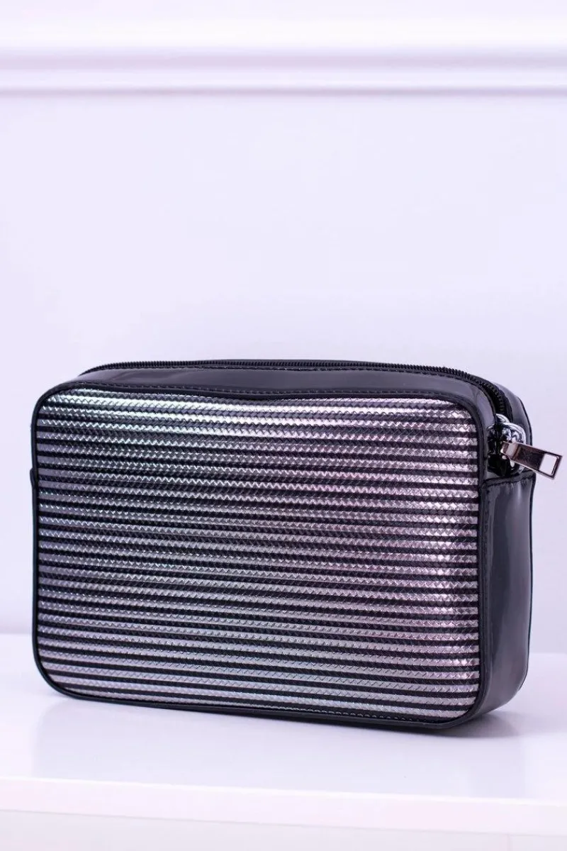 Torebka damska typu kuferek w stylowym wydaniu. Efektowne lakierowane elementy oraz wzorzysty materiał, podkreślają jej charakter. Torebka zapinana jest na zamek błyskawiczny. Jedna komora z jasną podszewką, wewnątrz znajduje się kieszonka na telefon oraz druga zapinana na zamek. Materiał zewnętrzny skóra ekologiczna.
