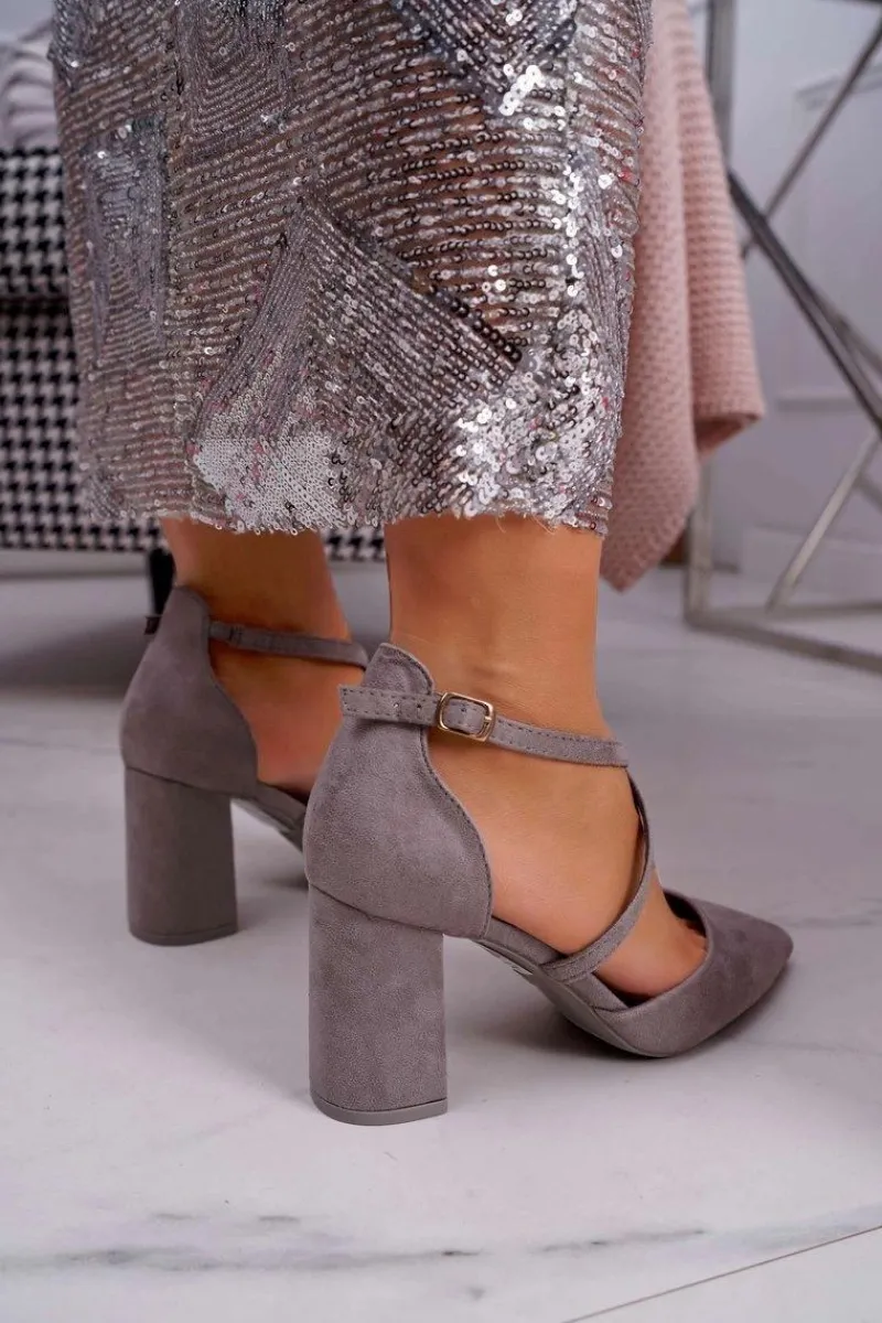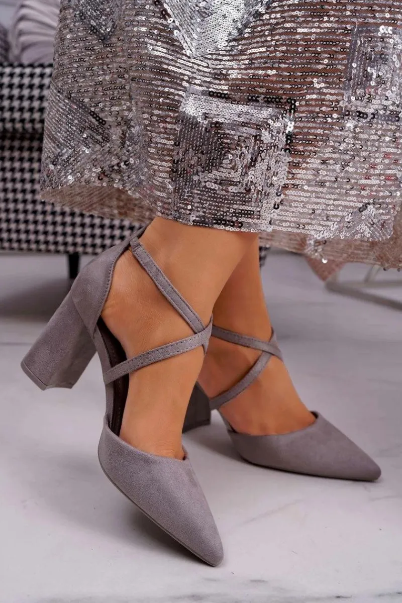 Online Boto Czółenka Damskie Na Słupku W Szpic Szare Future