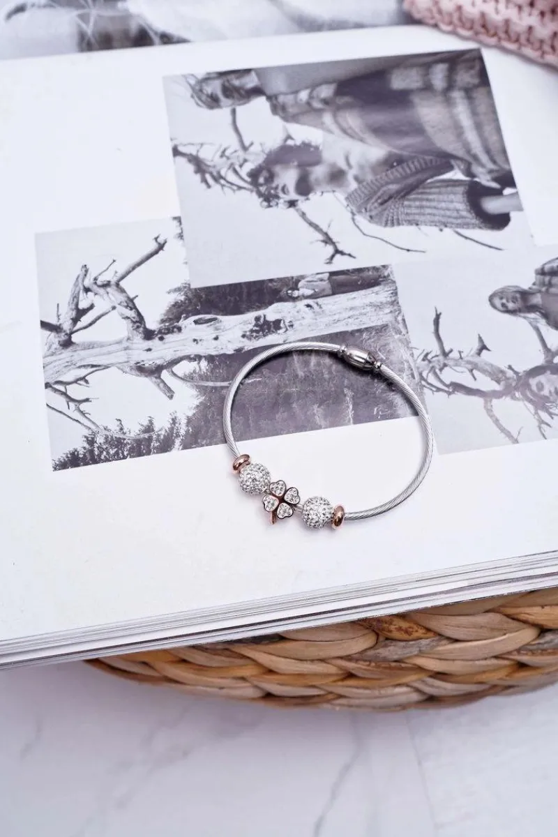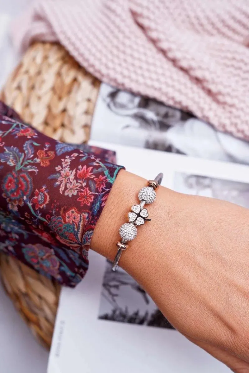 My kobiety kochamy błyskotki. Każda stylizacja potrzebuje dodatków, a nawet te najmniejsze są bardzo ważne. Mowa tu o pięknej biżuterii, która podkreśli to co najlepsze. Wspaniała bransoletka wykonana ze stali nierdzewnej z pięknym wzorem oraz małymi, mieniącymi się cyrkoniami. Bransoletka rozpina się, przez co jej zakładanie będzie jeszcze łatwiejsze. Sprawdź całą naszą kolekcję biżuterii i wybierz swój ulubiony dodatek. Oferta dotyczy samej bransoletki.
