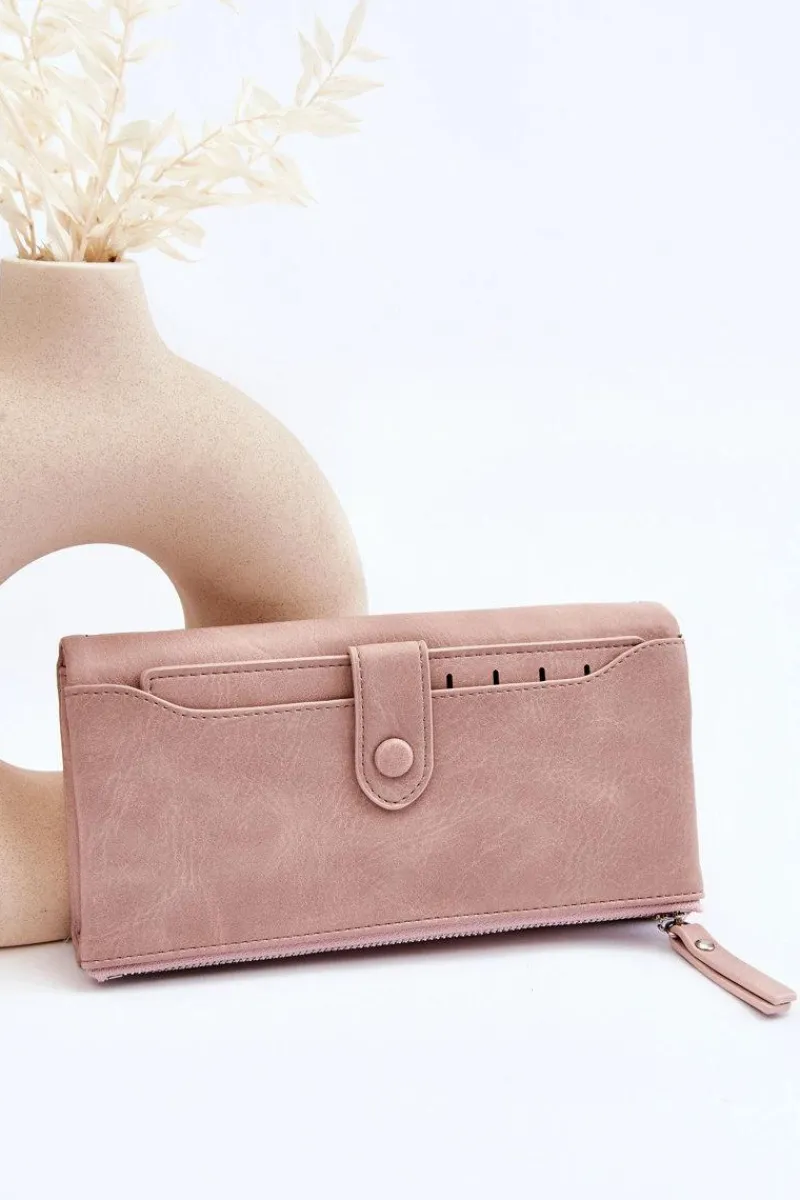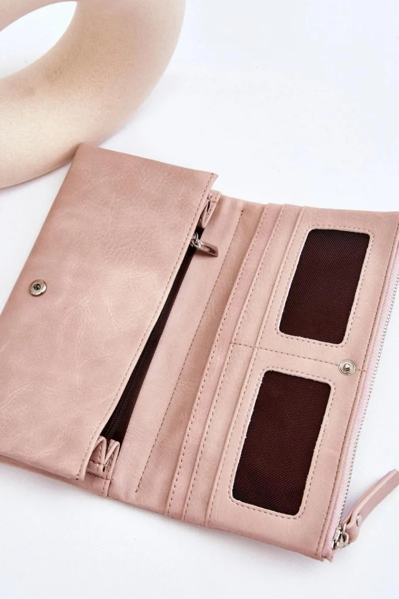 Duży, damski portfel zapinany na napy oraz zamek błyskawiczny. Został wykonany z eko skóry. W środku znajdują się otwarte komory oraz jedna zamykana na suwak. Dodatkowo także portfel zawiera wiele miejsc na wizytówki czy karty kredytowe. Na zewnątrz także znajduje się dodatkowa kieszonka zamykana na zamek błyskawiczny oraz kolejna komora zapinana na napę. Ten portfel pomieści najpotrzebniejsze rzeczy, takie jak: dokumenty czy pieniądze.