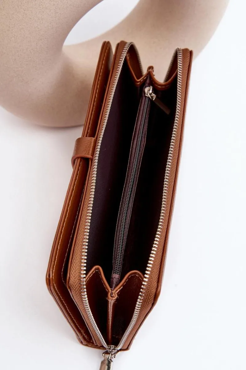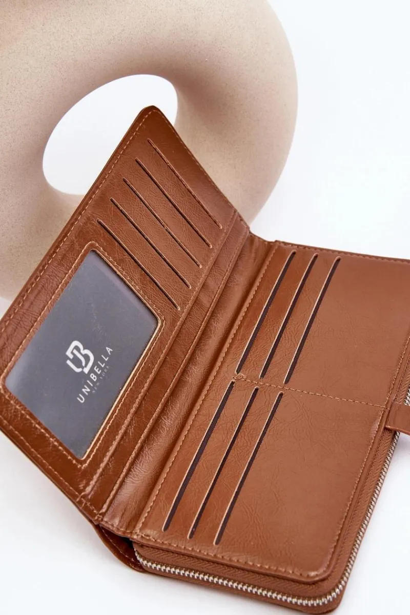 Bardzo funkcjonalny portfel wykonany został z eko skóry. Posiada komorę zamykaną na suwak oraz klapę zapinaną na magnes. W środku znajdują się otwarte kieszonki na wizytówki oraz miejsce na fotografię. Koniecznie musisz go mieć, nie czekaj i kup !