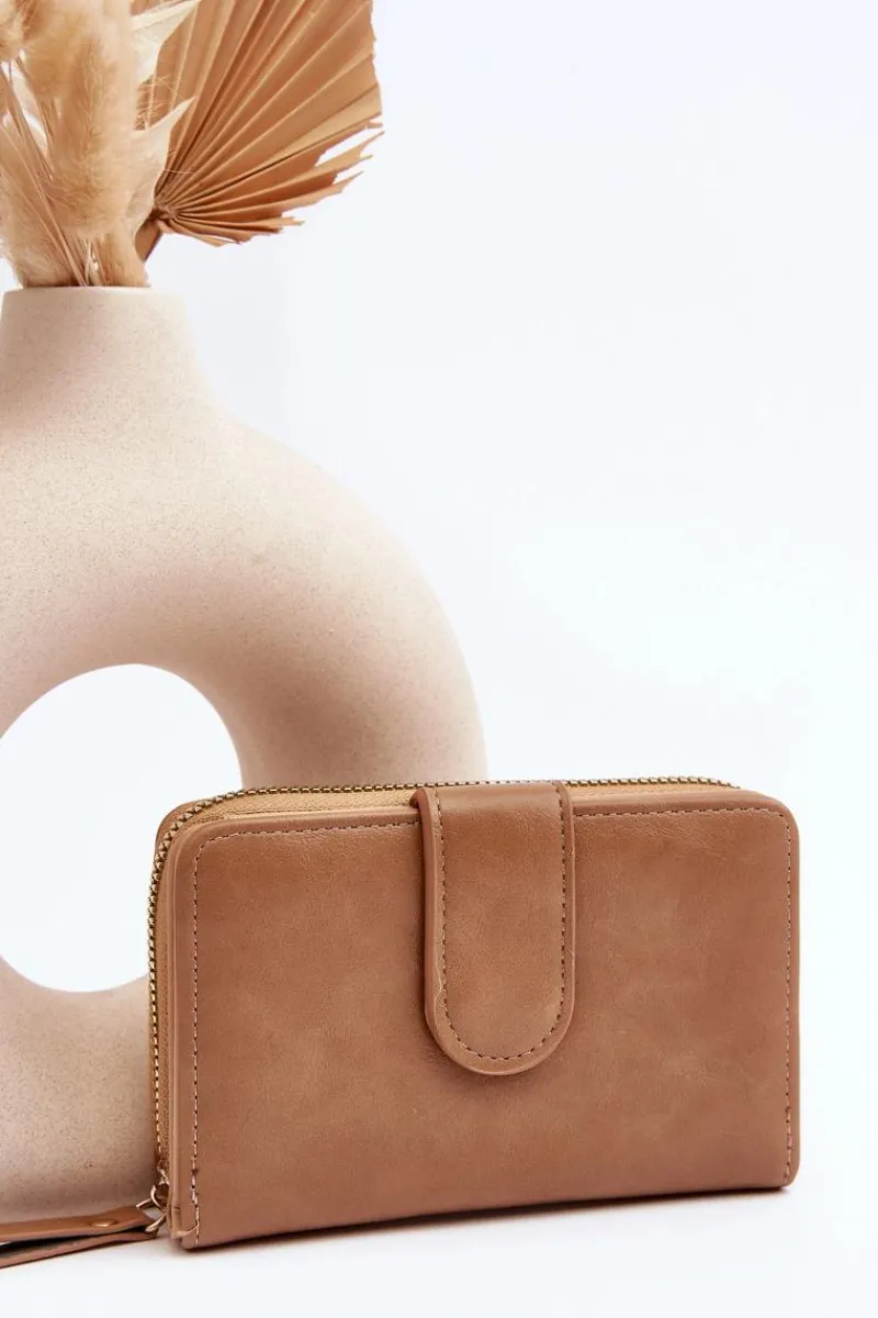 Klasyczny portfel damski wykonany z eko skóry. Model ten posiada kieszeń na monety zamykaną suwakiem. Wewnątrz znajduje się sekcja na banknoty oraz karty. Portfel zapinany jest na magnes. Klasyczny fason z pewnością przypadnie do gustu każdej kobiecie!