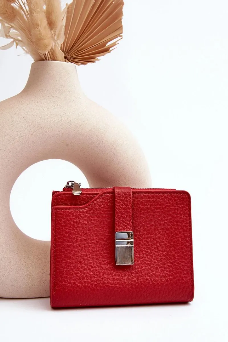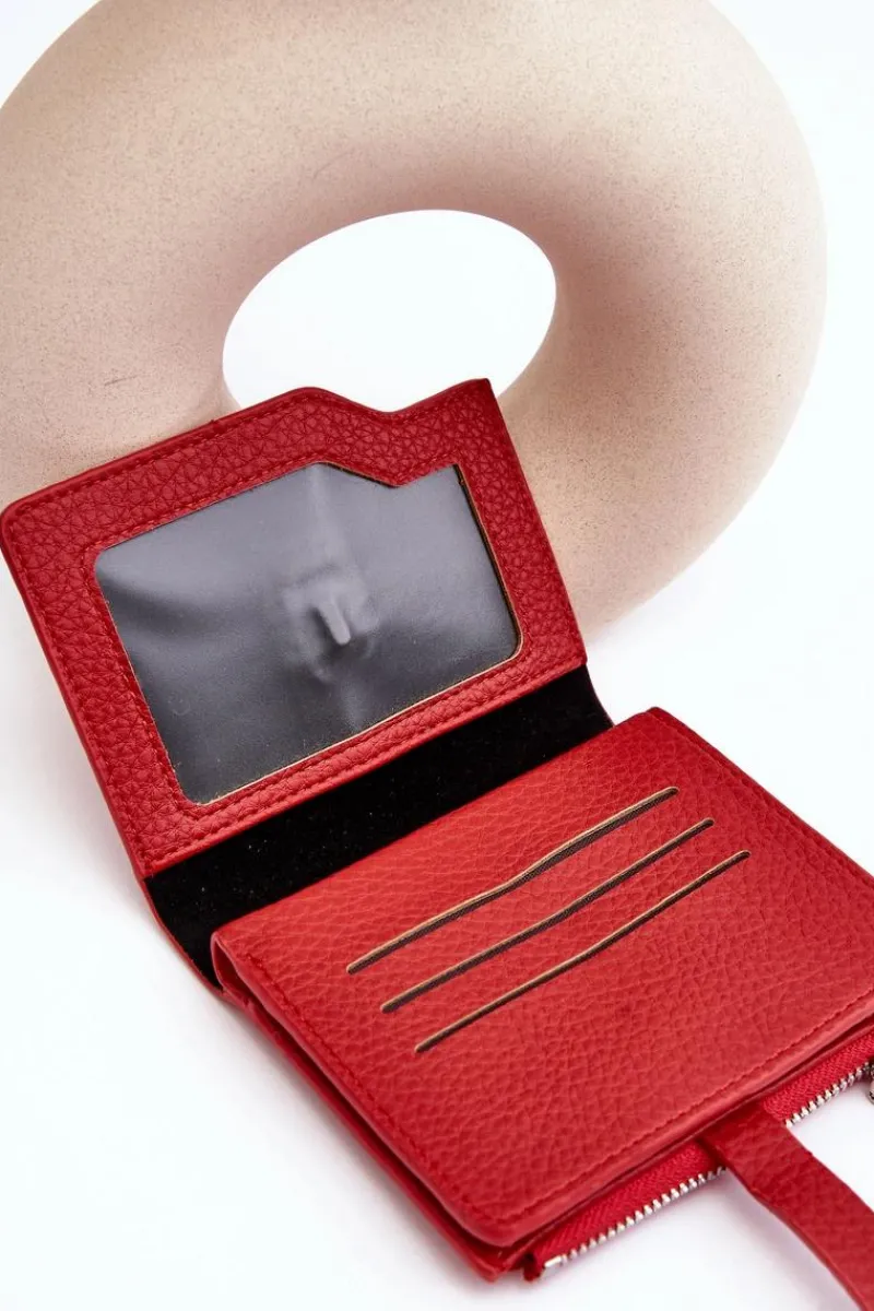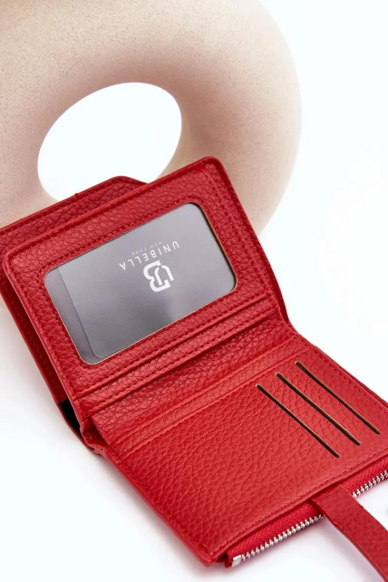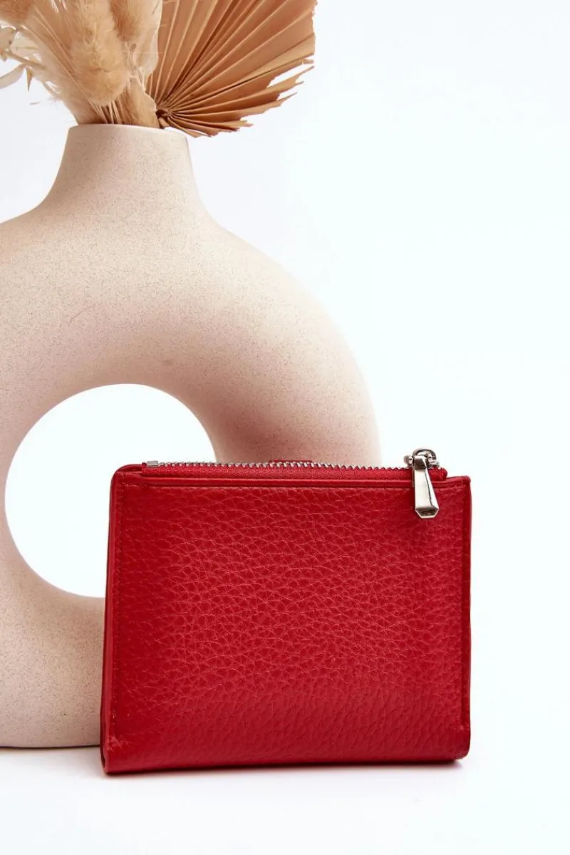 Portfel damski wykonany z eko skóry. Zapinany na klips magnetyczny. W środku miejsce na banknoty, karty i fotografię. Dodatkowa kieszeń zapinana jest suwakiem. Model ten jest niewielki, ale z pewnością pomieści najpotrzebniejsze rzeczy.