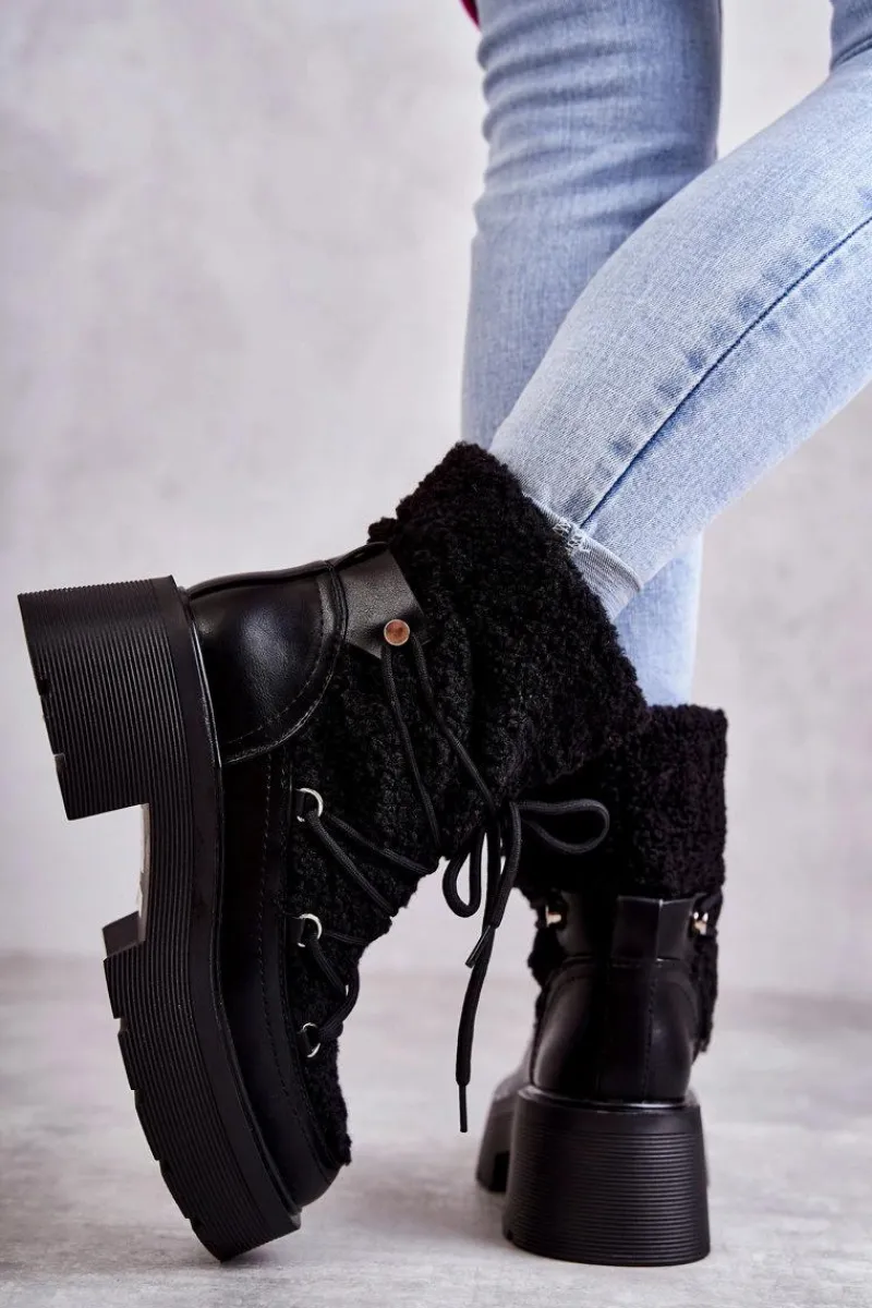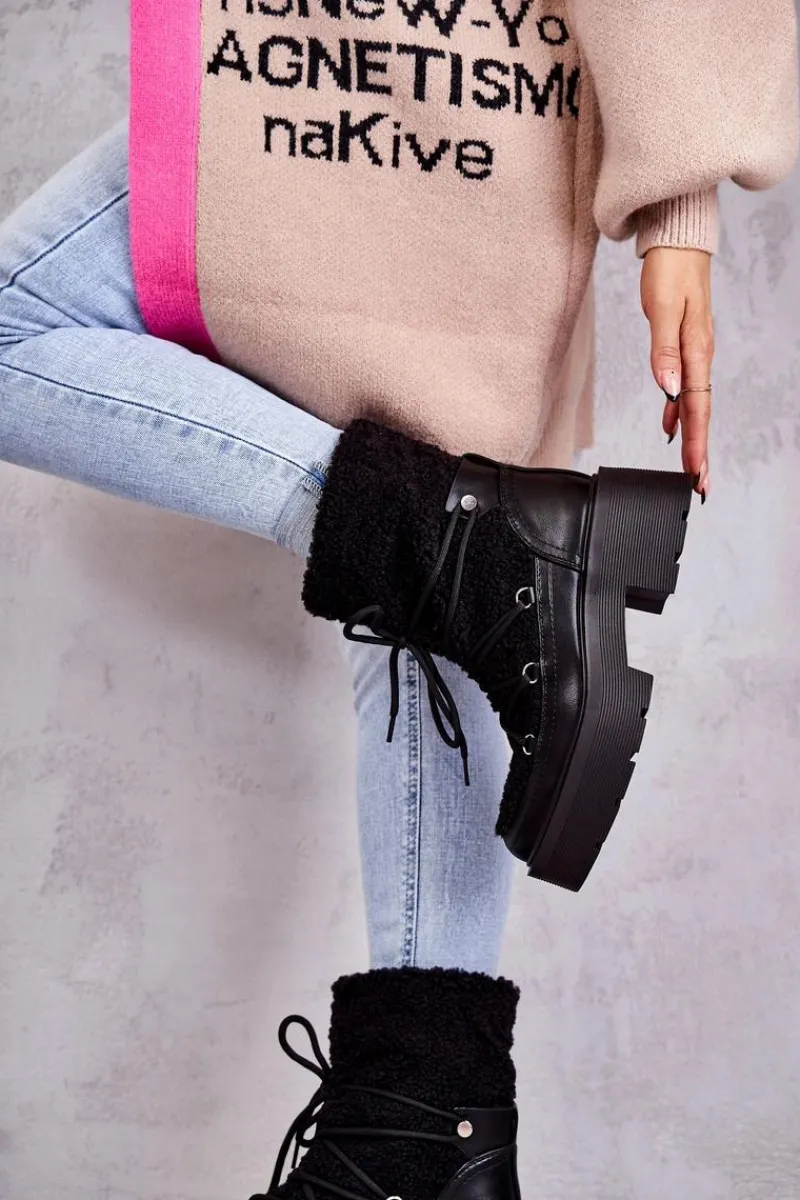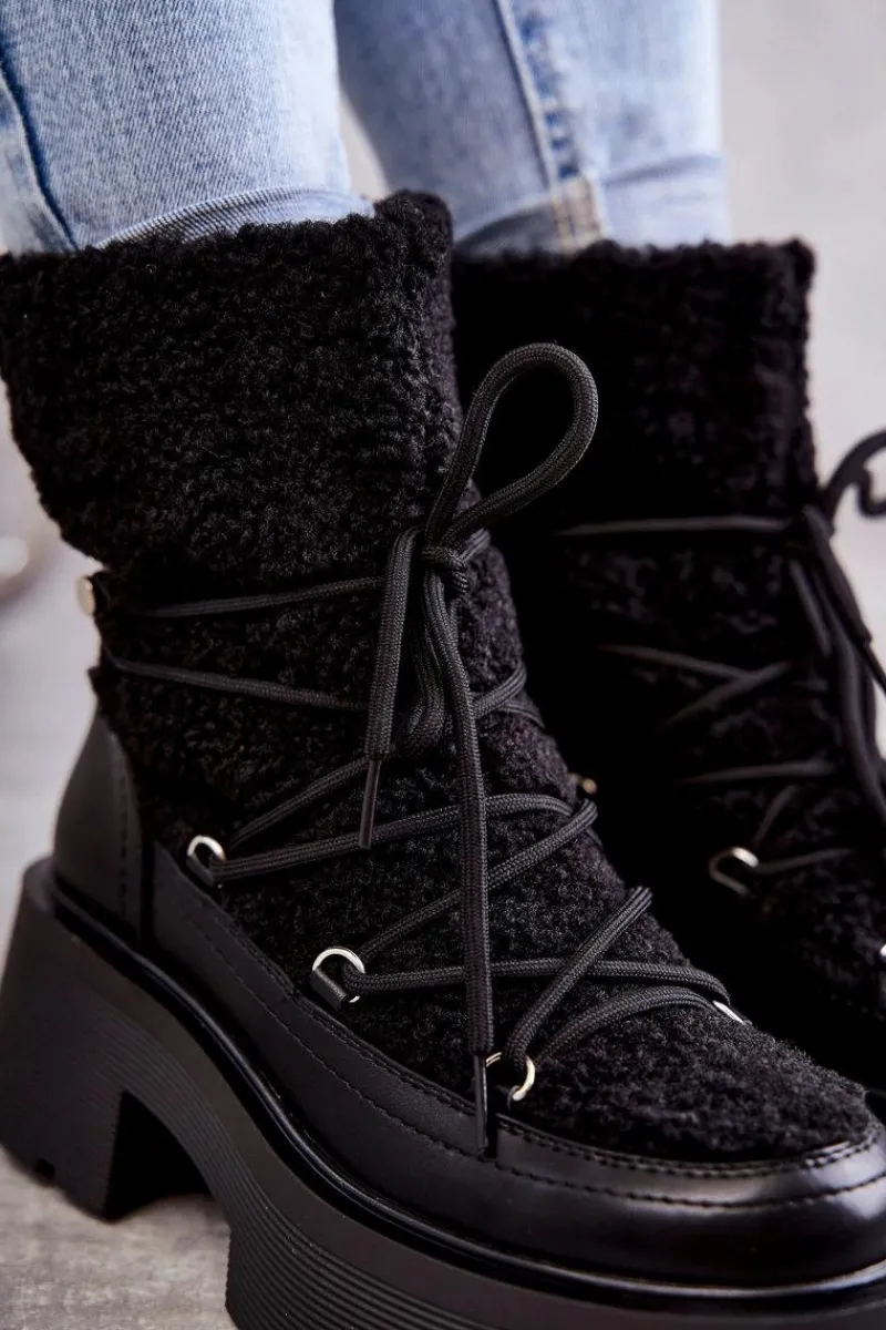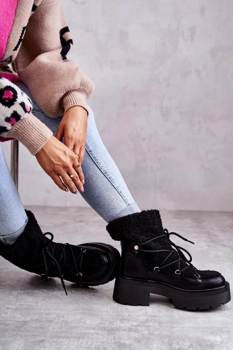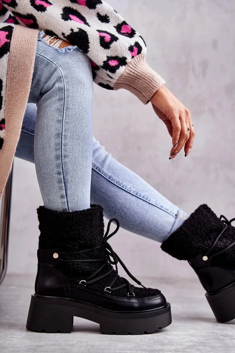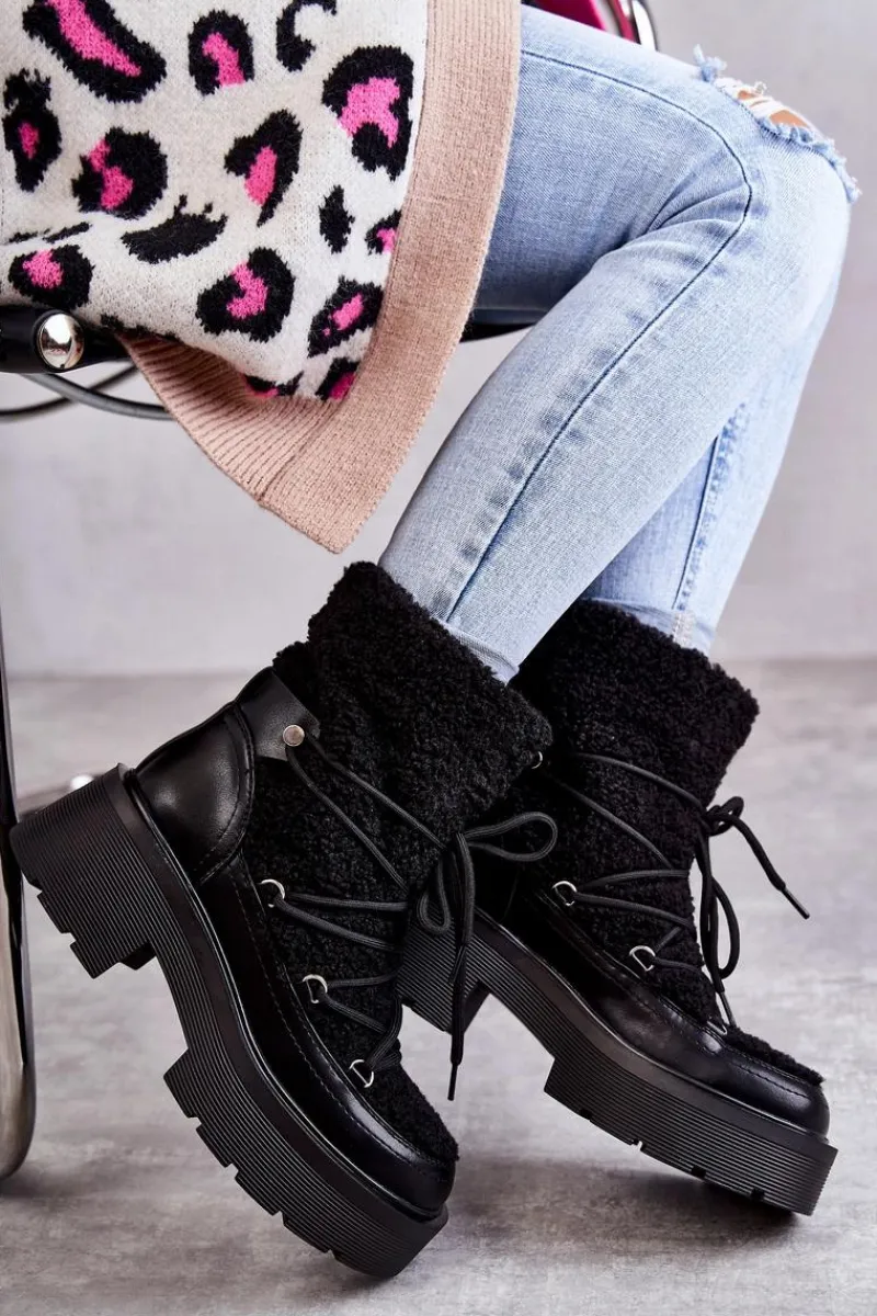 Online Boto Damskie Botki Śniegowce Z Kożuszkiem Czarne Sanna