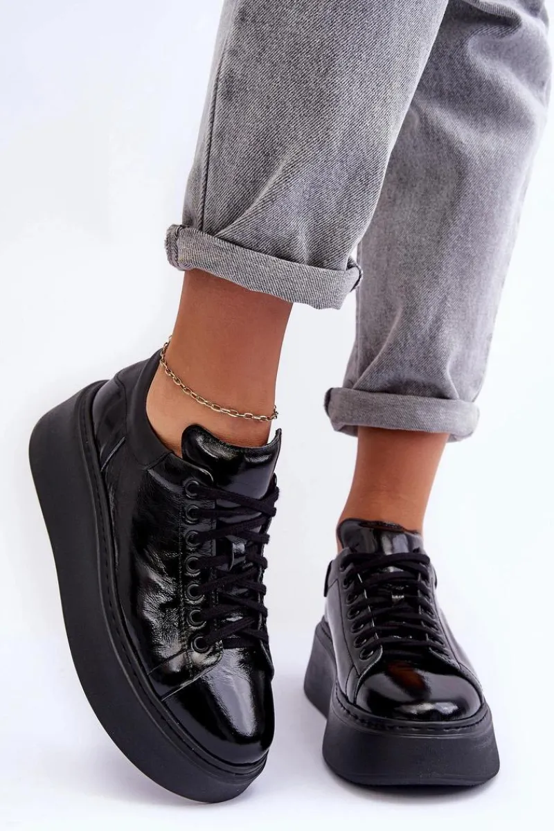 Buty sportowe wykonane z wysokiej jakości skóry naturalnej. Osadzone na masywnej platformie. Model klasycznie sznurowany. Miękka skórzana wkładka gwarantuje komfort przez cały dzień. Koniecznie powinnaś mieć w swojej szafie ten model! Przy wyborze rozmiaru prosimy sugerować się tabelą rozmiarów.