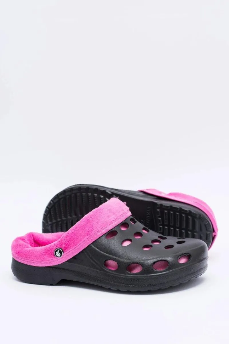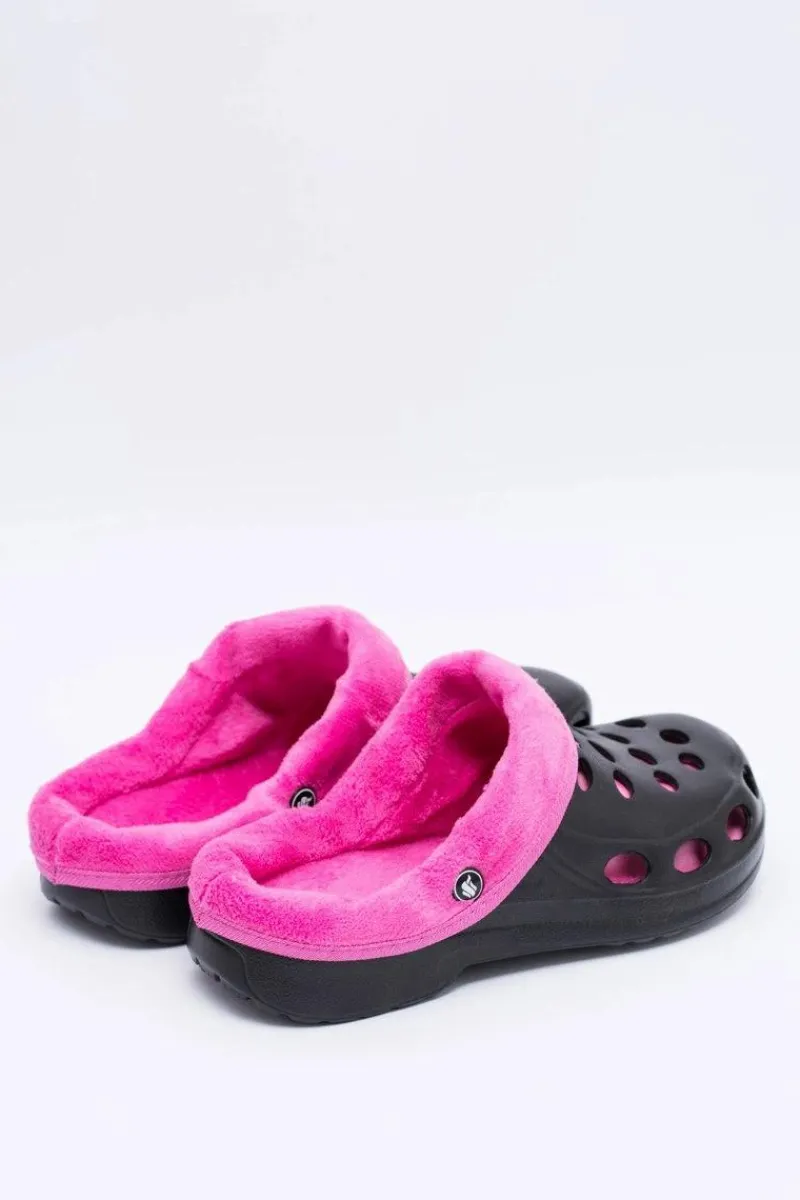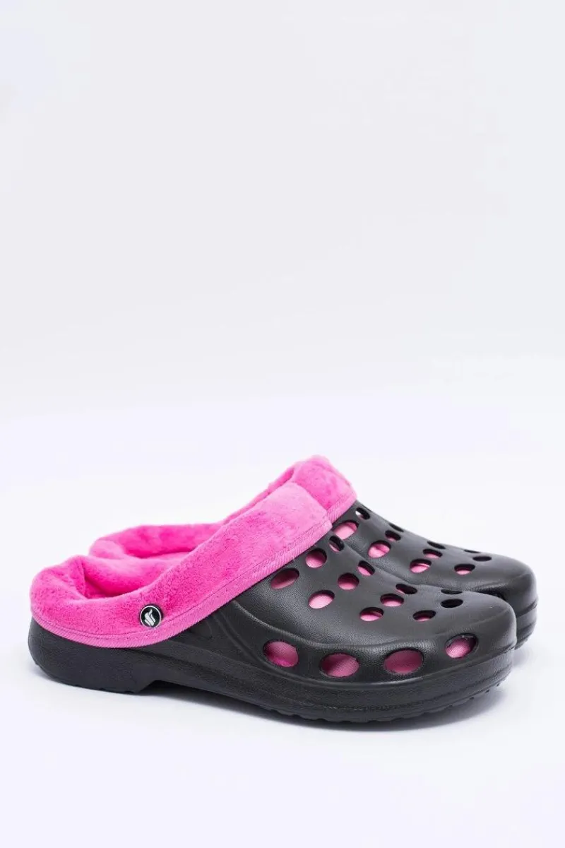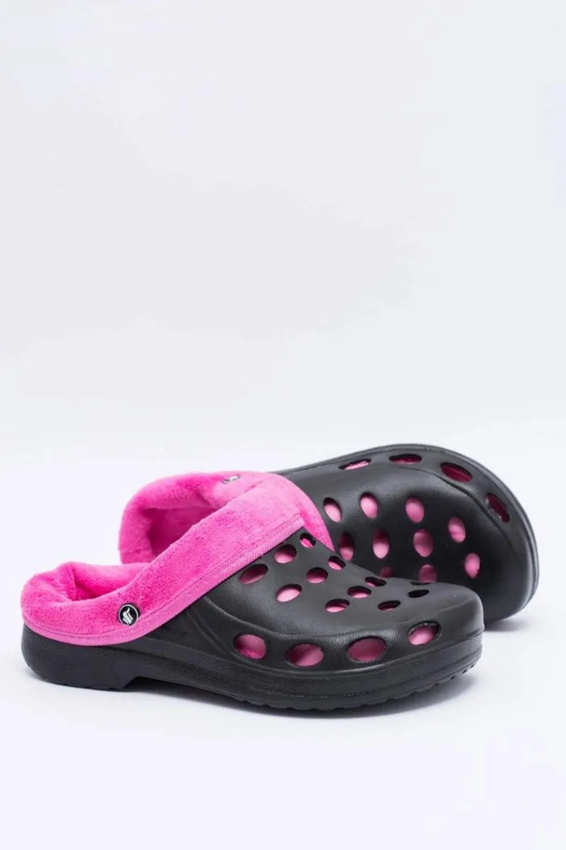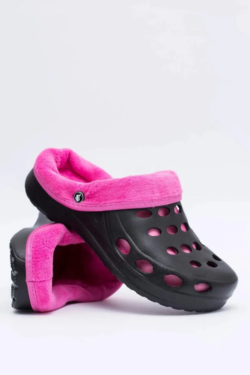 Online Boto Damskie Klapki Ocieplane Czarno Różowe Kroksy EVA