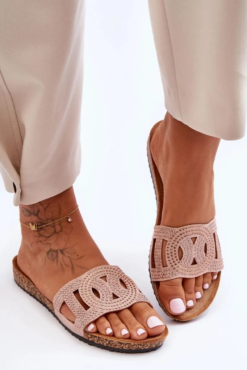 Online Boto Damskie Klapki Zdobione Ćwiekami Różowe Evelins