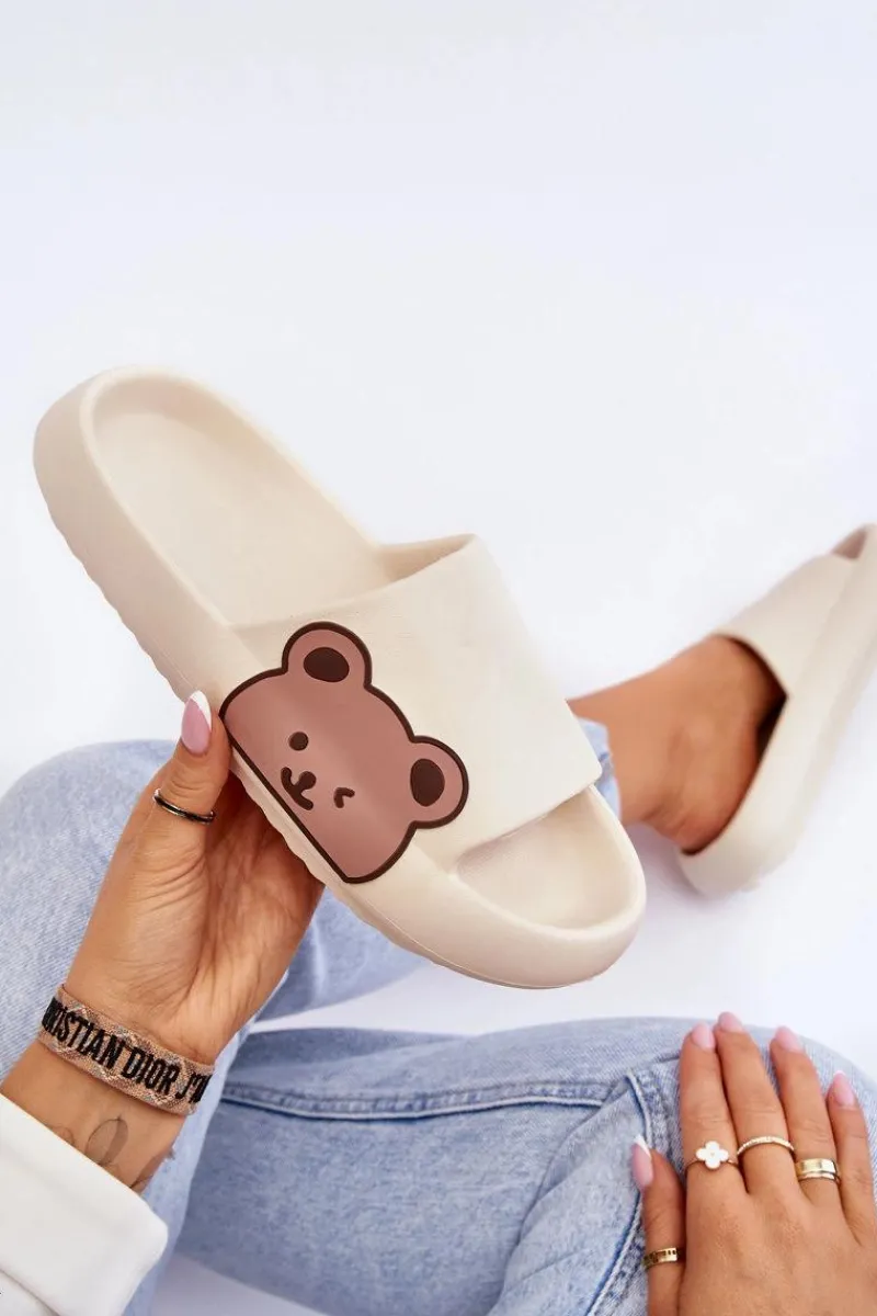 Urocze, damskie klapki zostały wykonane z piankowego tworzywa. Na boku cholewki znajduje się uroczy motyw misia. Model ten został osadzony na masywnej platformie. Możesz ich także używać jako obuwie domowe zamiast papci. Ten lekki model jest niezwykle wygodny podczas użytkowania. Koniecznie powinnaś je mieć! Przy wyborze rozmiaru prosimy sugerować się tabelą rozmiarów.