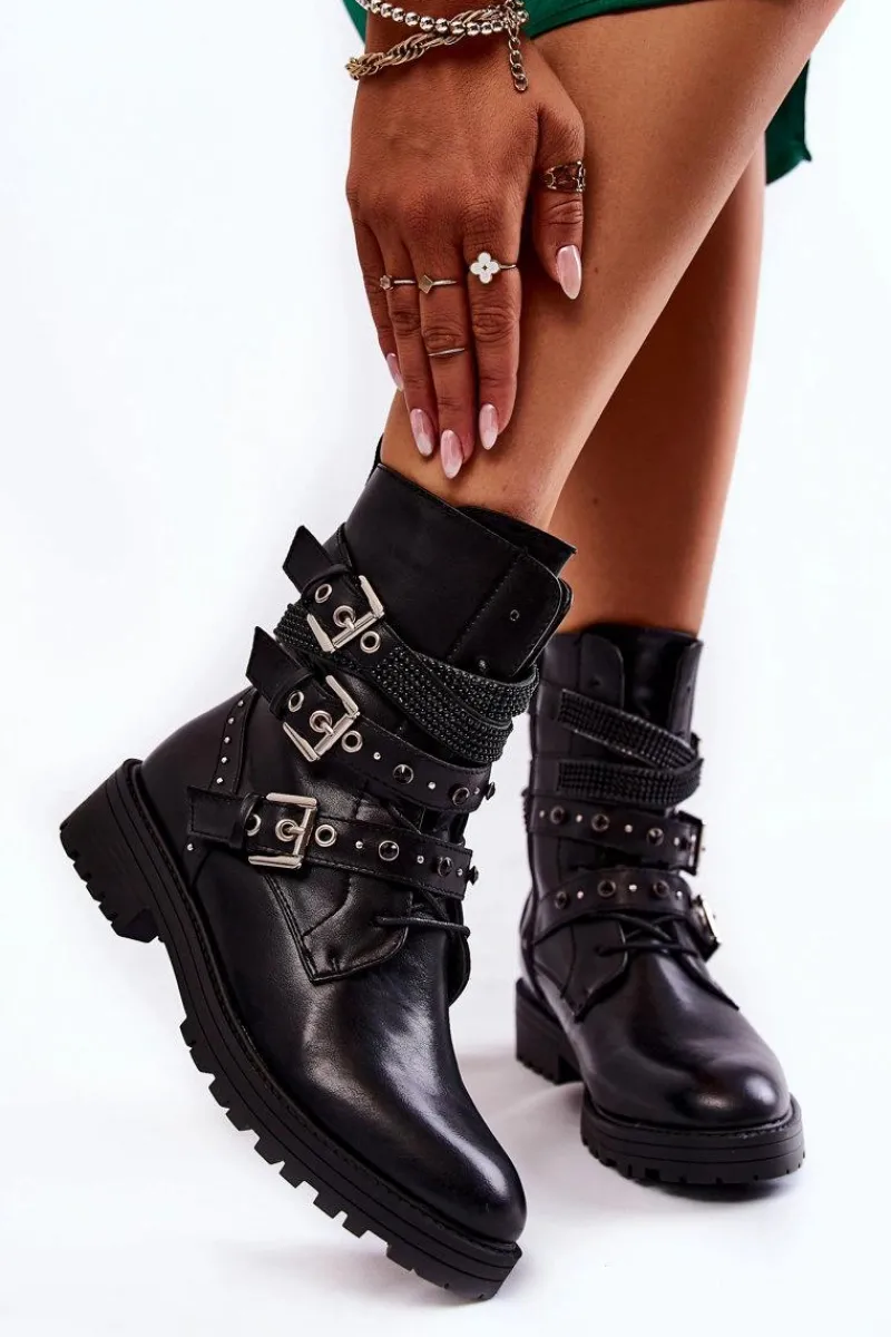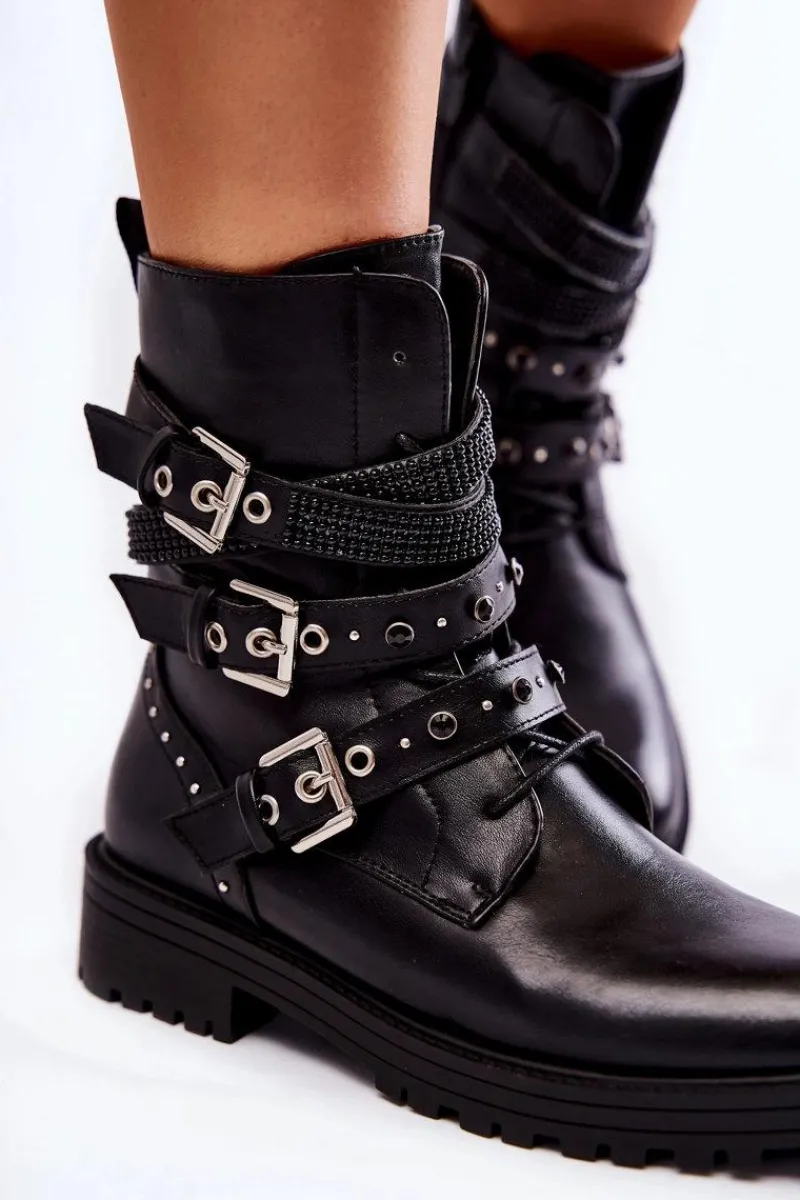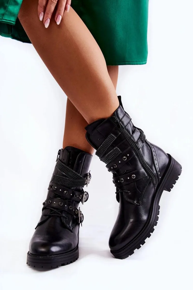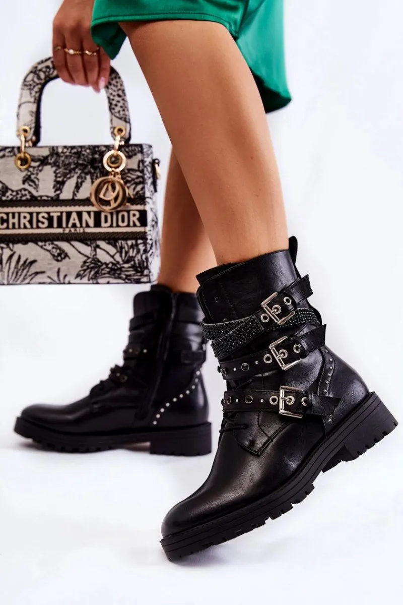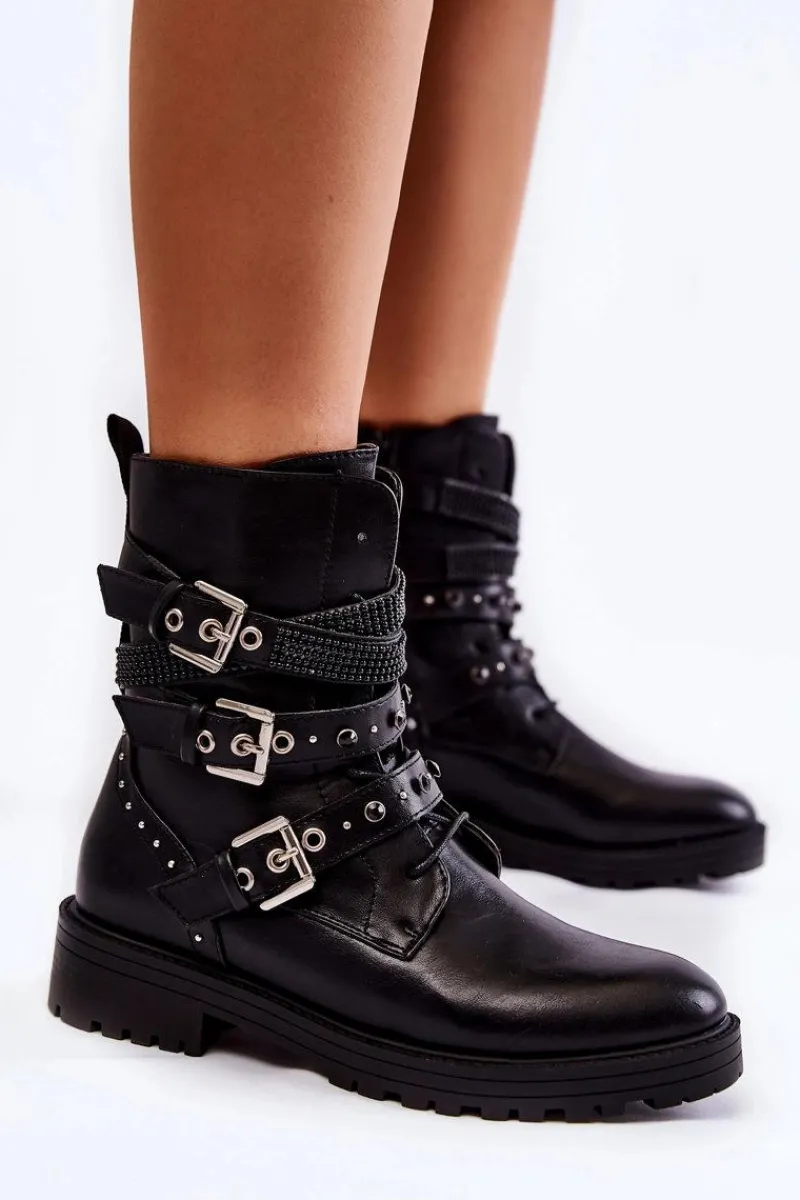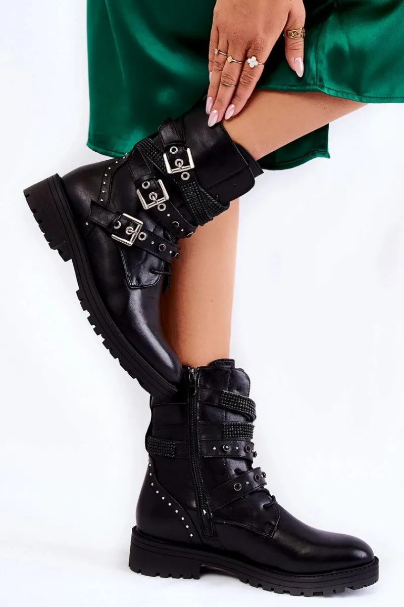 Online Boto Damskie Ocieplane Botki Z Paskami Gładkie Czarne Lamberta