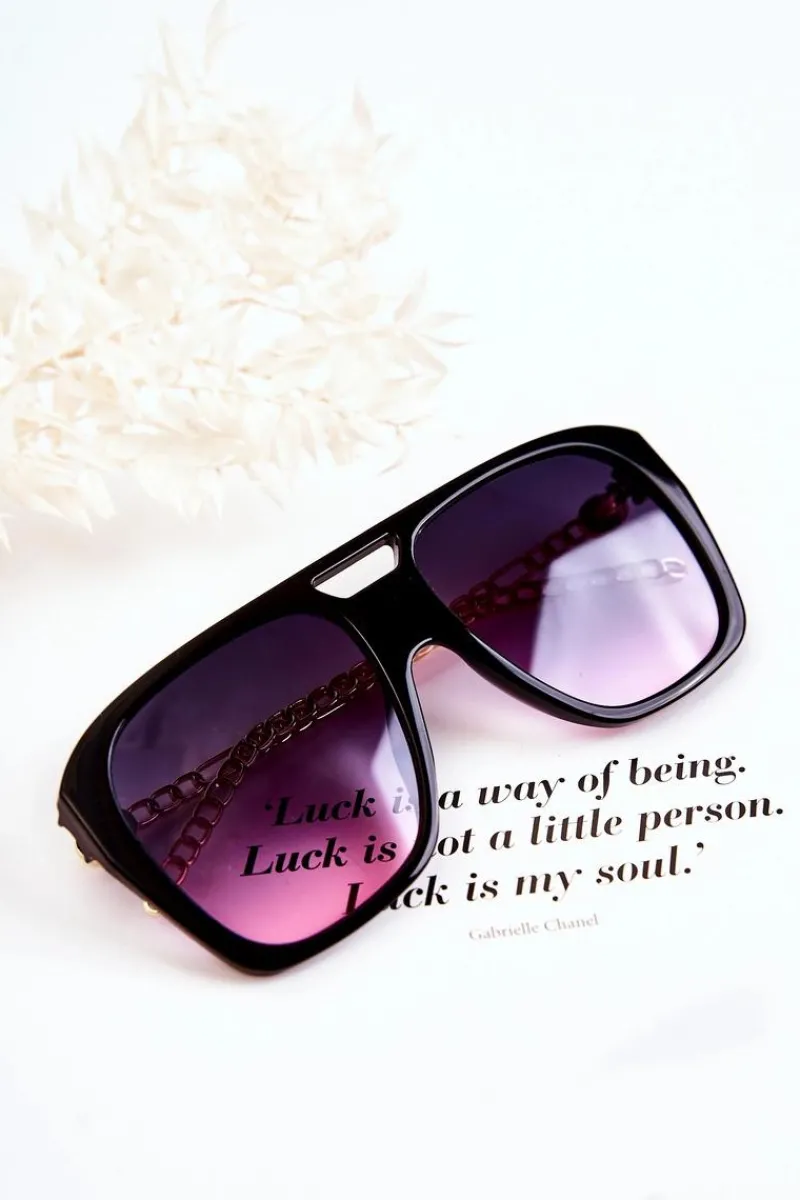 Modne okulary przeciwsłoneczne świetnie sprawdzą się w wielu sytuacjach! Nie tylko podczas letniego sezonu, ale także zimowego, kiedy promienie słoneczne odbijają się od śniegu. Wykonane z tworzywa sztucznego. Zauszniki wykonane na styl eleganckiego łańcuszka. Soczewki z oprawkami. Modne i idealne do wielu stylizacji. Informacja od producenta: okulary chronią przed szkodliwym promieniowaniem UV.