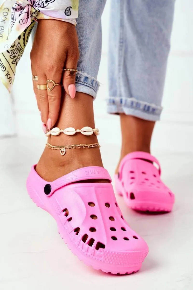Damskie klapki wykonane z wysokojakościowego, piankowego tworzywa EVA. Profilowana wkładka oraz ruchomy zapiętek zapewnią komfort użytkowania. Przy wyborze rozmiaru prosimy sugerować się tabelą rozmiarów. W zależności od dostawcy klapki posiadają różne guziki – całe czarne lub czarne z logo producenta.