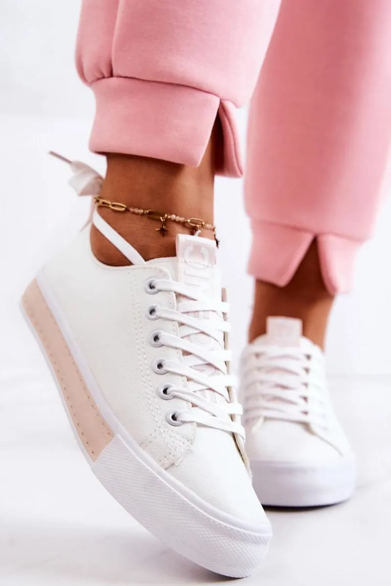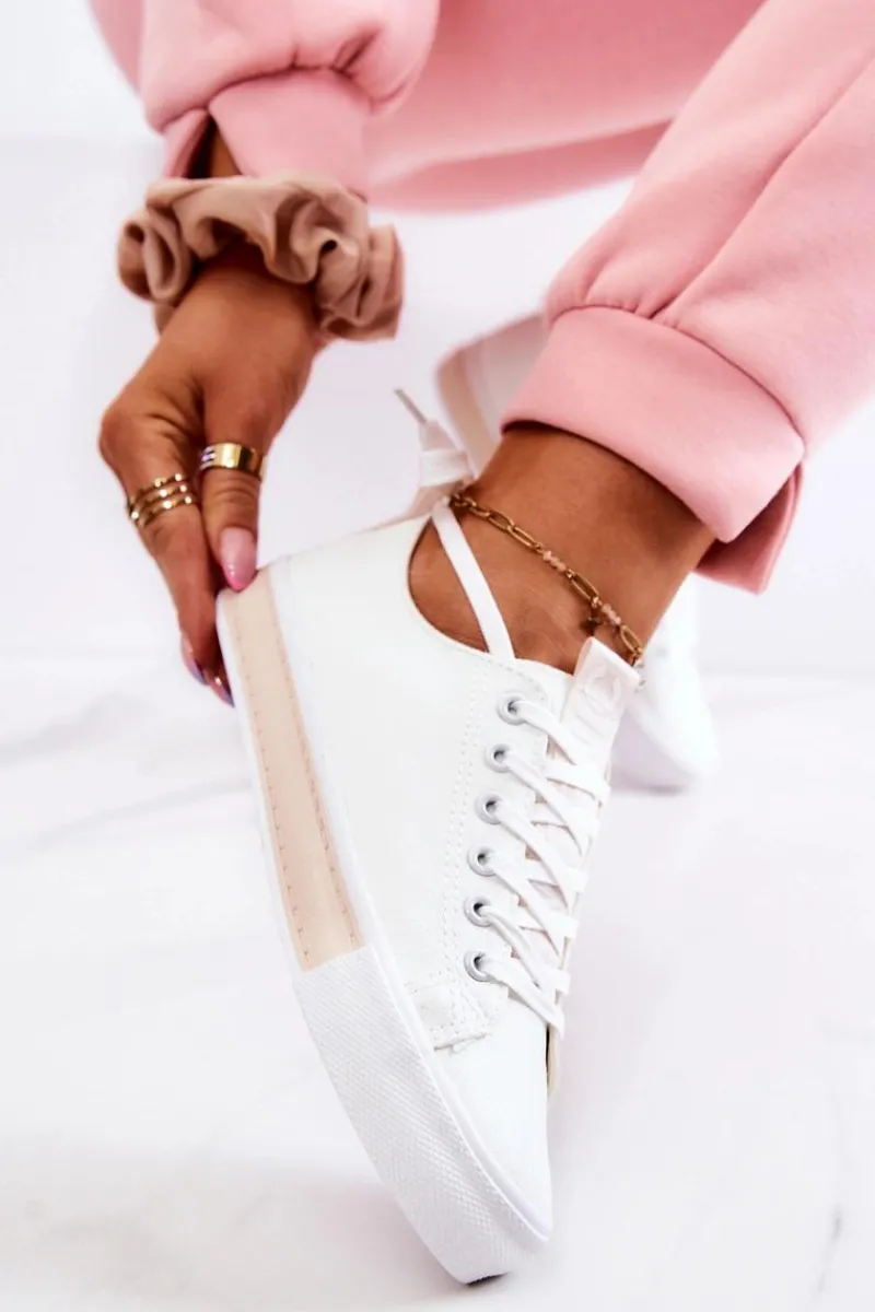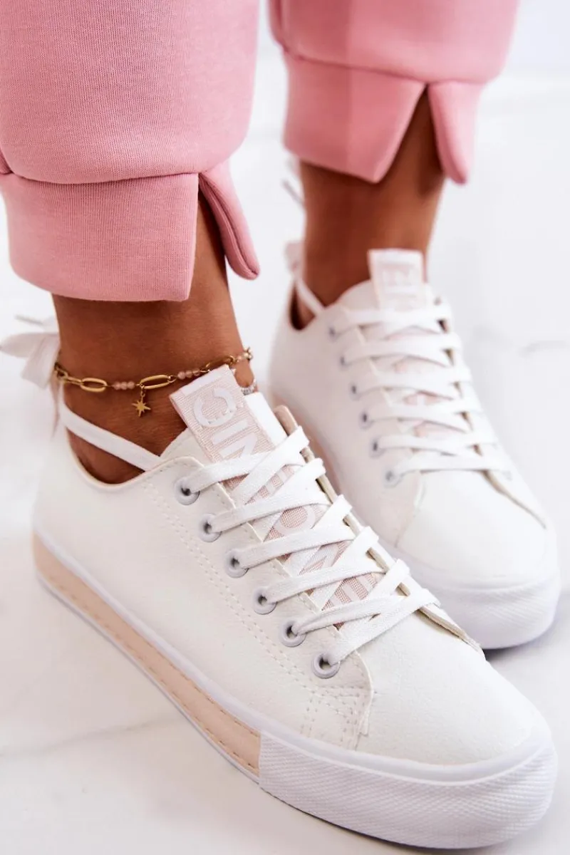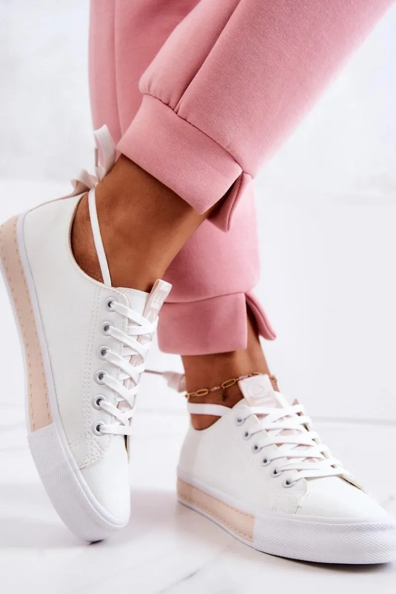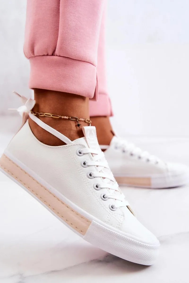 Online Boto Damskie Skórzane Tenisówki Biało-Beżowe Mikayla